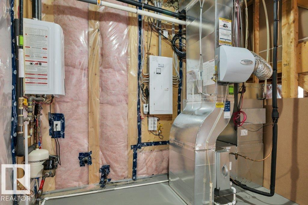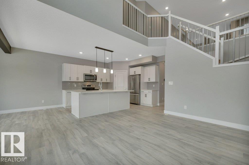 Wake up to SERENE WATER VIEWS and the soothing sound of a fountain this summer! Welcome home to the rare lifestyle that only a POND-BACKING WALKOUT can offer. Nestled in Desrochers, this FORMER SHOW HOME (2018) blends luxury and comfort across 2,161 SF of beautiful living space. The dramatic OPEN-TO-BELOW Great Room is the heart of the home, featuring SOARING 18’ CEILINGS and a cozy GAS FIREPLACE. The BRIGHT, SPACIOUS kitchen offers QUARTZ countertops, SS appliances, silgranite sink, OVERSIZED ISLAND, and WALK-THROUGH PANTRY. Spacious main floor FELX ROOM is ideal for a home office, studio, or future business space. Upstairs features a LARGE BONUS ROOM with built-in DESK NOOK, elegant PRIMAY RETREAT with WALK-IN CLOSET and LUXURIOUS 5-PIECE ENSUITE. Two additional LARGE SOUTH-FACING BEDROOMS, full bath, and laundry. CENTRAL A/C, too! The WALKOUT BASEMENT w/large windows is ready for your vision or FUTURE SUITE POTENTIAL. Immaculate, MOVE-IN-READY, and close to schools, parks, shopping, transit, and more. (id:63190)