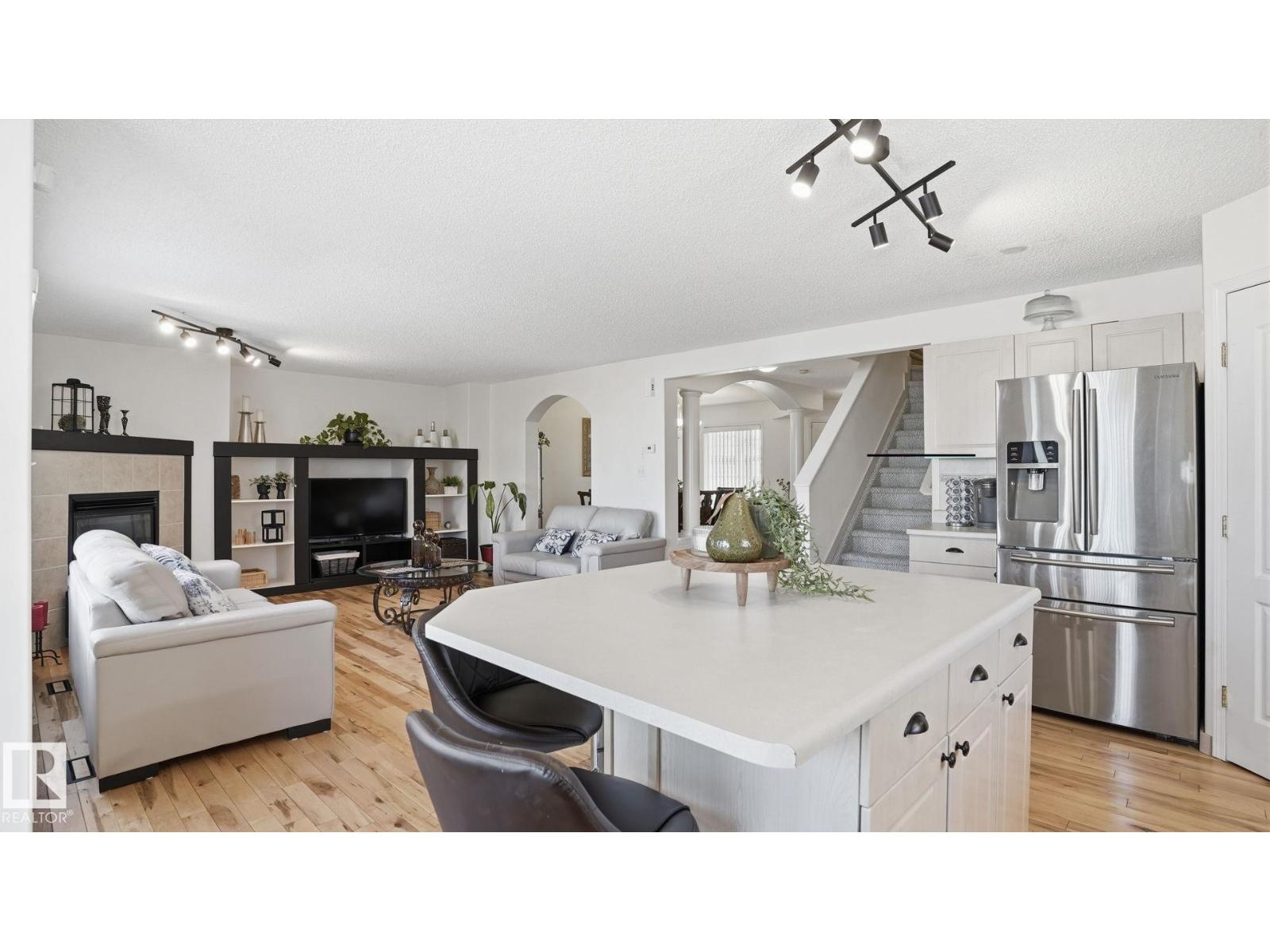 Nearly 2,000 sq ft plus a fully finished basement on a quiet cul-de-sac in Blackmud Creek, offering 6 bedrooms and plenty of space for a growing family. The main floor features an open kitchen and living room with corner gas fireplace, a breakfast nook, dining room and a den/office/ flex space off the garage that is perfect for extra storage, a home office, or busy family life. The living area looks out to the private backyard and large deck, with a hot tub added in 2023. Upstairs you will find 4 bedrooms, a full bathroom, and a spacious primary suite with a large walk-in closet and 5-piece ensuite. The finished basement adds 2 more bedrooms, another full bathroom, and a large family room ideal for movie nights, games, or teenagers wanting their own space. Recent updates include central A/C, hardwood, carpet, and kitchen light fixtures in 2022, new stove in 2024, dishwasher and bathroom flooring in 2025, plus new basement laminate and vanities. (id:63190)