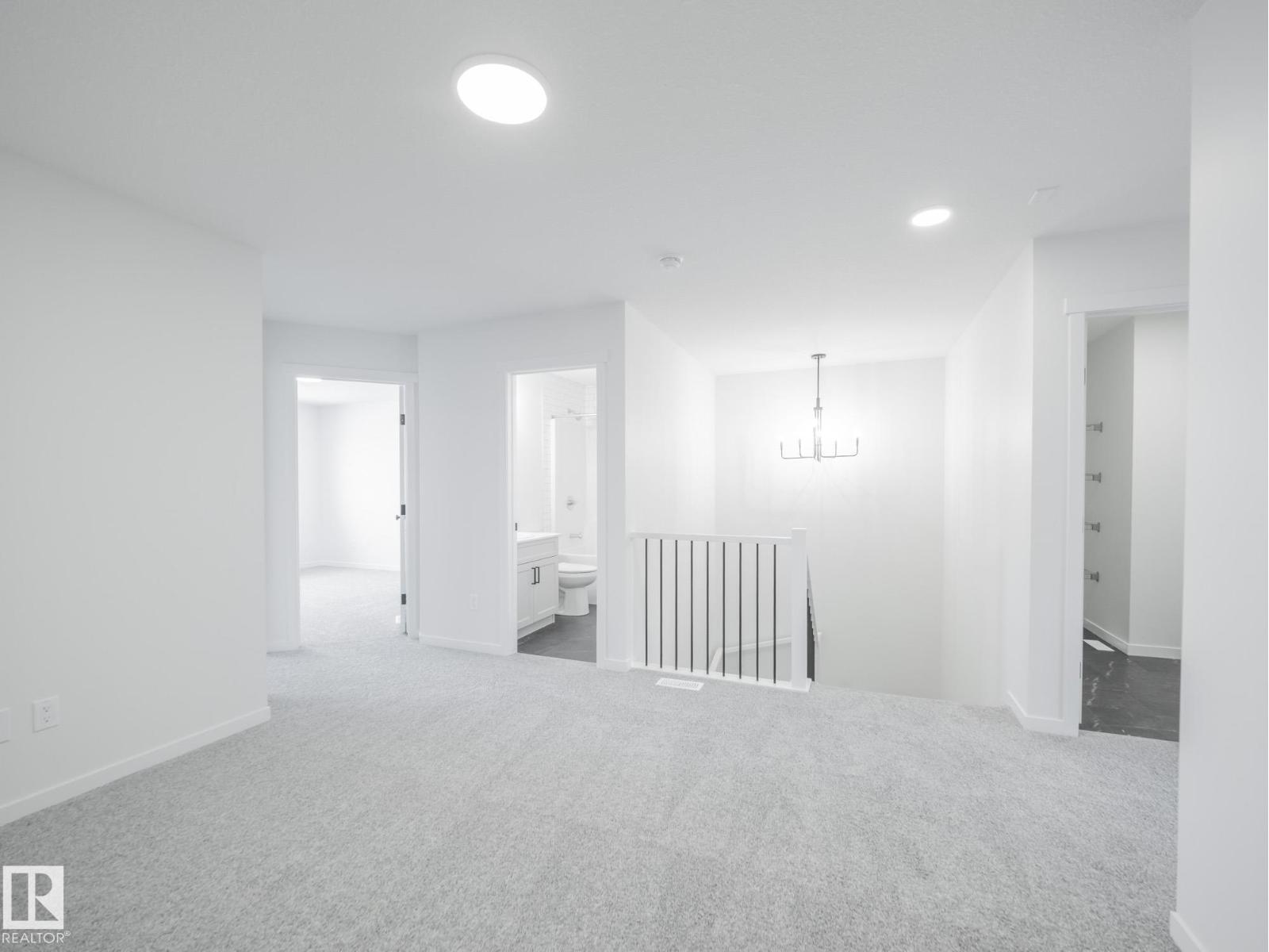 Discover elevated living in this stunning Coventry Home w/ SEPARATE ENTRANCE & 9' ceilings that create a bright, open feel. The kitchen blends style & function w/ quartz countertops, ceramic tile backsplash & elegant cabinetry, flowing into the dining nook & Great Room—perfect for everyday living & entertaining. A convenient half bath completes the main floor. Upstairs, the primary suite offers a spa-inspired 5 pc ensuite w/ dual sinks, soaker tub, stand-up shower & walk-in closet. Two additional bedrooms, a full bath, bonus room & upstairs laundry provide comfort & flexibility. Built w/ care & backed by the Alberta New Home Warranty Program. Home is under construction, photos are not of actual home, some finishings may vary, some photos virtually staged. (id:63190)