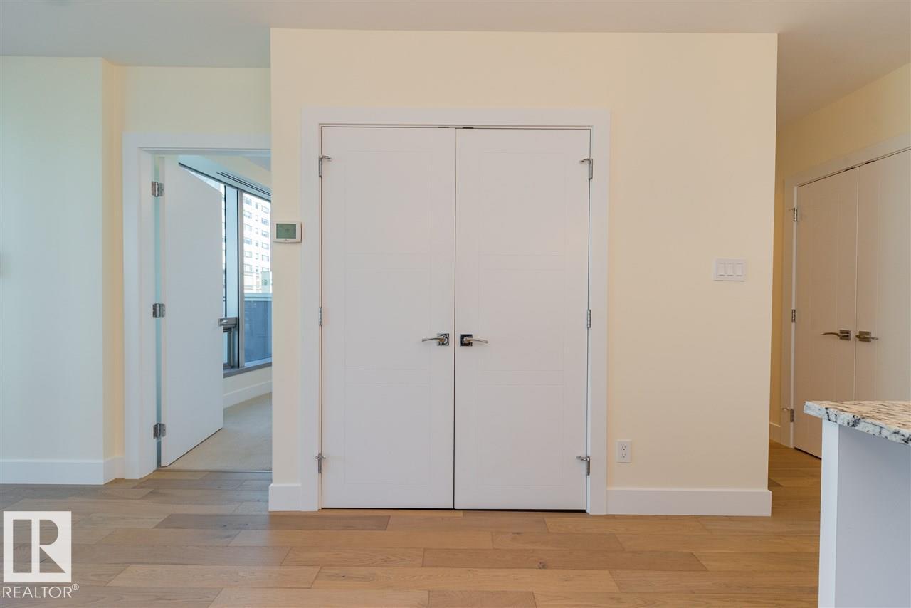 Immaculate 1 Bedroom Executive Condo in the Magnificent Pearl Tower. Features Floor to Ceiling Windows, New White Oak Engineered Flooring, Open Floor Plan, Lovely Kitchen with Granite Counters and Stainless Steel Appliances, Spacious Living Room with Glass Door Access to the Balcony, Four Piece Bathroom with Soaker Tub/Shower Surround and Cheater Door to the Master Bedroom. Insuite Laundry, Hidden Roller Blinds, In-Ceiling Speakers, Heat Pump Heating/Central Air Conditioning, Programable Thermostat. Also, Includes a Titled Underground Parking Stall (#352) with Storage Cage. Complex Amenities Include On Site Concierge Service, Fitness Room, Social Rooms with Kitchen and Patio Area. Exceptional Location Near Restaurants, Shopping, Transportation, the River Valley and All Amenities. (id:63190)