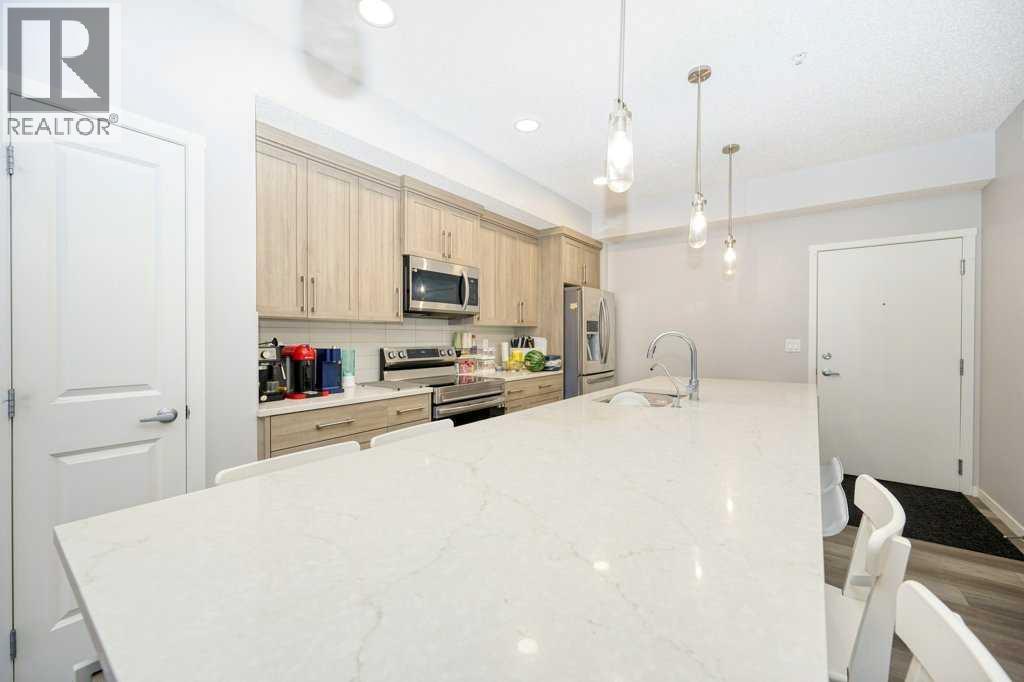 This exceptional top-floor unit condo is a true gem, offering a perfect blend of luxury and convenience. Upon entering, the unit is welcomed by a spacious open-concept design that connects the kitchen, dining, and living areas. The primary bedroom offers a spacious retreat for relaxation. It features a stylish 4-piece ensuite bathroom, along with a generous closet that provides ample storage for all your personal items. The second bedroom is versatile and roomy, perfect for guests, a home office, or even a personal gym. The kitchen is equipped with Stainless steel appliances and ample storage space, making it the perfect space to cook and dine with loved ones. Located in a vibrant and growing community, this home is within walking distance to parks, schools, and shopping (including a No Frills grocery store, pharmacy, McDonalds, gym and numerous others) right across the street, making it an excellent choice for families or young professionals. (id:63190)
