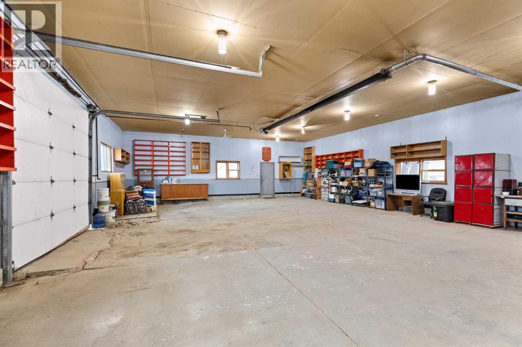 Situated on a beautifully sized 0.8-acre lot, this spacious 2049 sq ft home offers the perfect blend of comfort, functionality, and rural charm.Inside, you’ll find 2 bedrooms, 2 bathrooms, a dedicated office, and a cozy den featuring a custom-built wood-burning stove with a custom mantle—ideal for relaxing evenings. The home offers a practical layout with a large front entry, making it both welcoming and functional for busy households.The primary suite includes an ensuite, a jet tub for added relaxation. while the living room has in-floor heating for added comfort.A true highlight of this property is the exceptional shop and garage space. The impressive 38’ x 88’ shop provides outstanding versatility—perfect for equipment storage, a workshop, or running a home-based operation—while the double attached garage offers everyday convenience and seamless access to the home. Additional features include a walk-in gun vault located just off the garage.Zoned for country living, this property allows for up to 15 hens with development permit approval, offering an excellent opportunity for hobby farming or a more self-sufficient lifestyle.A rare combination of space, utility, and potential—this property is ready for its next owner to make it their own. (id:63190)