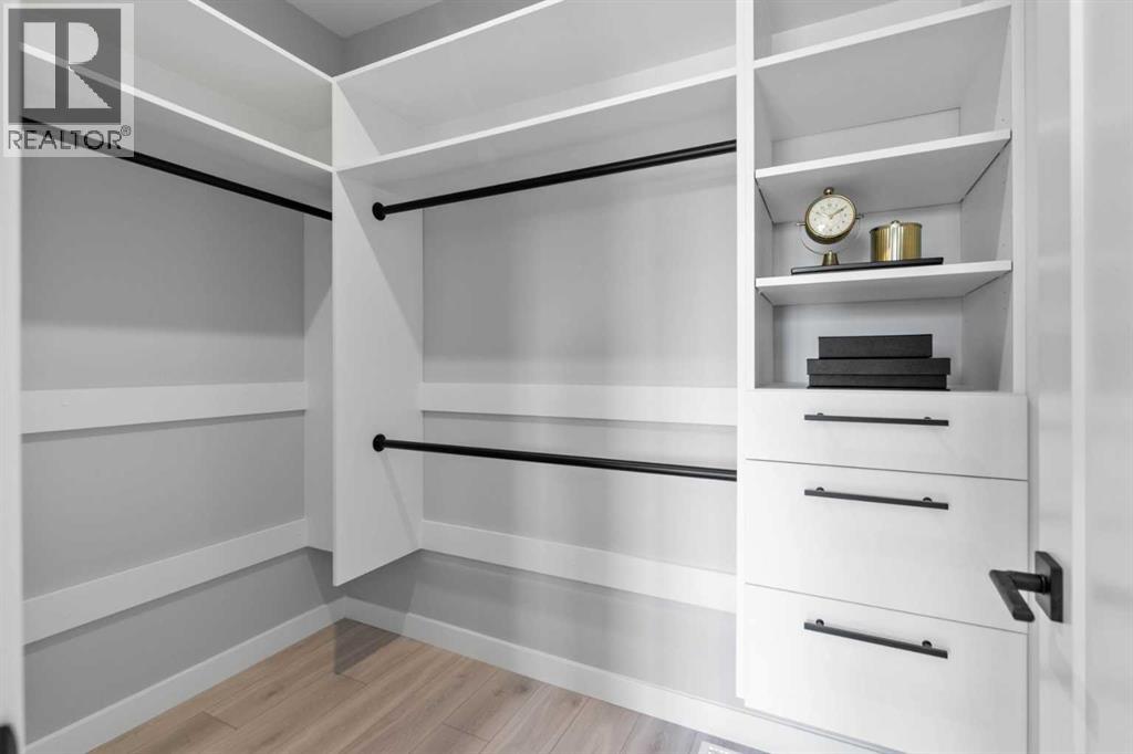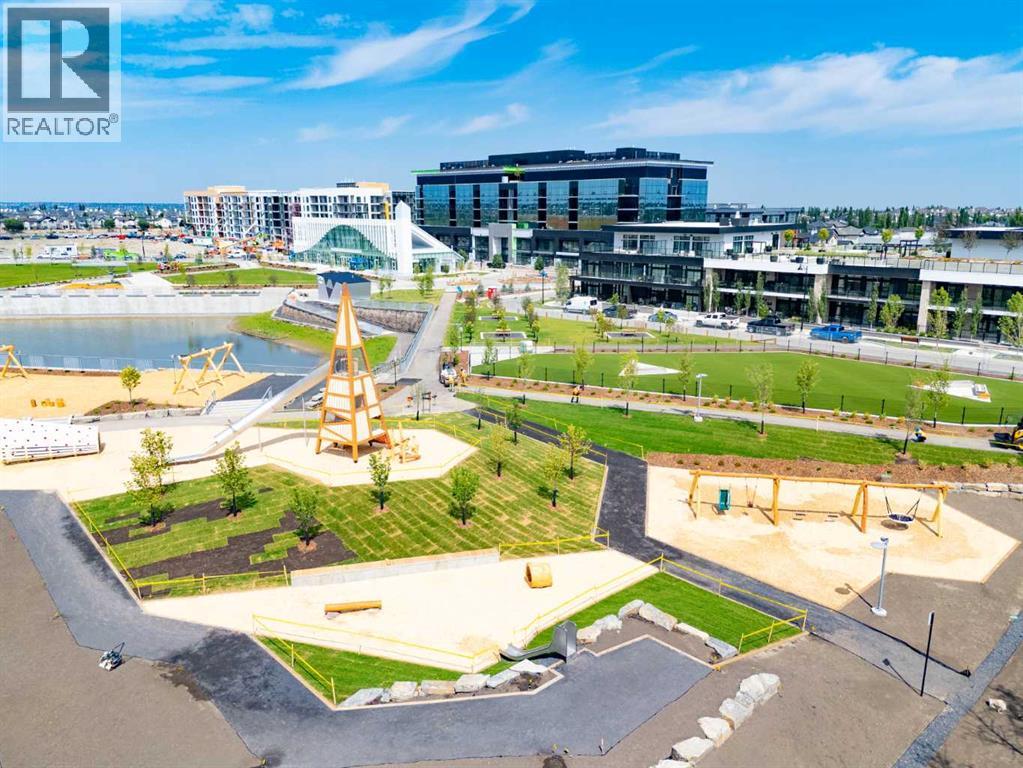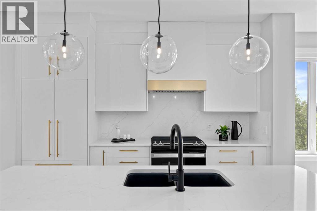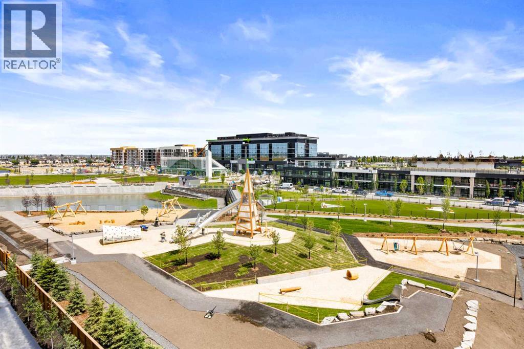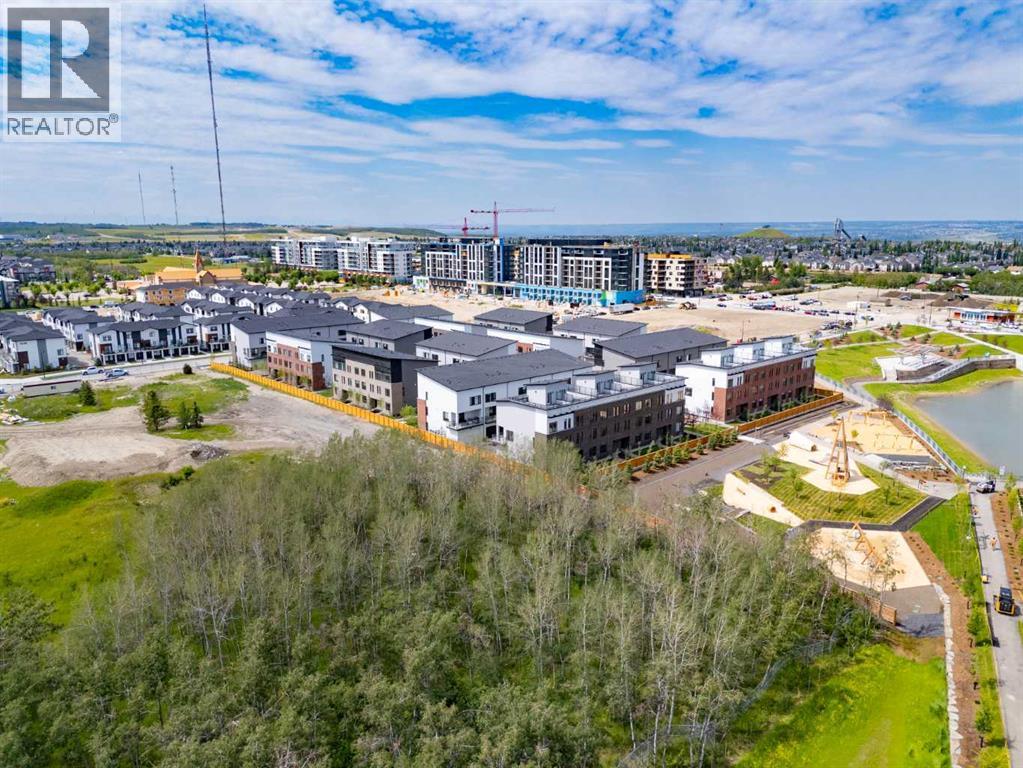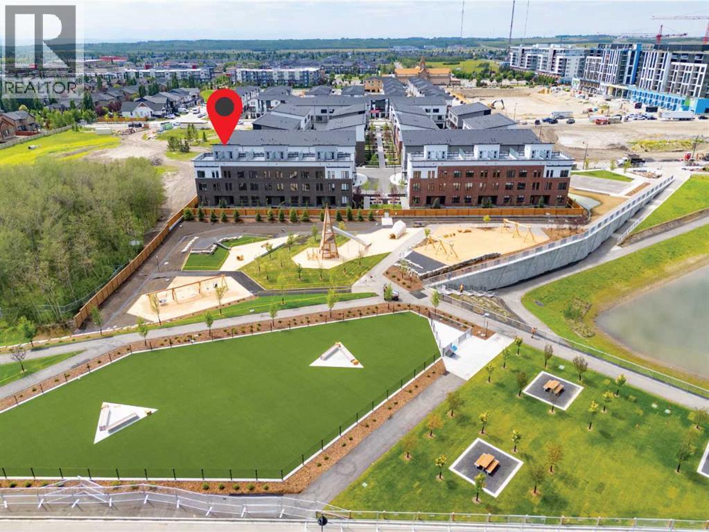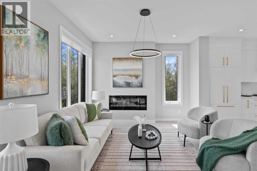 Welcome to #501 in the District Townhomes complex in West Springs, Calgary. This executive end-unit townhome. offers upscale living with premium finishes and exceptional outdoor space. The open-concept main floor is filled with natural light from the southwest-facing balcony and features wide-plank flooring, lofty ceilings, and a chef-style kitchen with full-height cabinetry, quartz countertops, gas range, built-in microwave, refrigerator, and a large island with breakfast bar. The spacious dining area opens to the balcony, while the living room is anchored by a sleek 50" electric fireplace. Upstairs, you'll find two large bedrooms, each with walk-in closets and private ensuite baths, plus convenient upper-floor laundry. The entry-level flex room—perfect for a home office or guest bedroom—is accessible from both the front entrance and the heated double garage. One of the few units in the development to include a private rooftop patio, offering 270° views, including the mountains ...ideal for entertaining or enjoying sunset evenings. Located in a quiet, private setting, this townhome combines modern design with low-maintenance luxury living. Roughed-in for security, vacuflo, air conditioning and home networking. West District is a dynamic and trendy neighbourhood that offers a rich shopping and dining experience. Enjoy local shops, restaurants, grocery, fitness, and medical services. Featuring a focus on pedestrians, the main streets highlight twenty foot wide sidewalks complete with integrated walkway and bike paths. In the heart of West District is the central Radio Park featuring a recreation area with a basketball court, skatepark, amazing new playground, ice skating in the winter, summertime farmer’s marekts and events, live concerts and festivals at the outdoor amphitheatre and much more. Located just 15 minutes from downtown Calgary, 5 minutes from top public and private schools, and 45 minutes to Canmore, (id:63190)