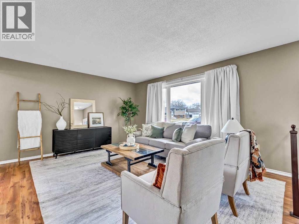 Wonderful family home in great court location in the Connaught area near paths, parks and central to many other amenities! This great 4 level split offers 3 bedrooms up, a bright 4 piece bathrooms and a master bedrooms with a 2 piece ensuite. The main floor has bright natural light and boasts a functional kitchen space with ample counter space including seating off the peninsula, and open flow to your dining that circulates into your large front living room area. Off the back of the home there is a small boot room space and access out to your private backyard. The third level offers a bright, spacious family room with a great flex nook perfect for a kids play area, desk station, yoga and workout space to name a few great uses and is finished off with an updated 3 piece bathroom. The 4th level is home to a 4th bedroom, a den, great storage space and the laundry/utility room. Out back enjoy the multiple patio spaces each offering different vibes, ample space to make your own or let the kids run free. The front and back yard are equipped with manual underground sprinklers, while the lengthy front drive duals as RV parking and access to your 22x24 detached garage. Brand new roof, just completed. (id:63190)