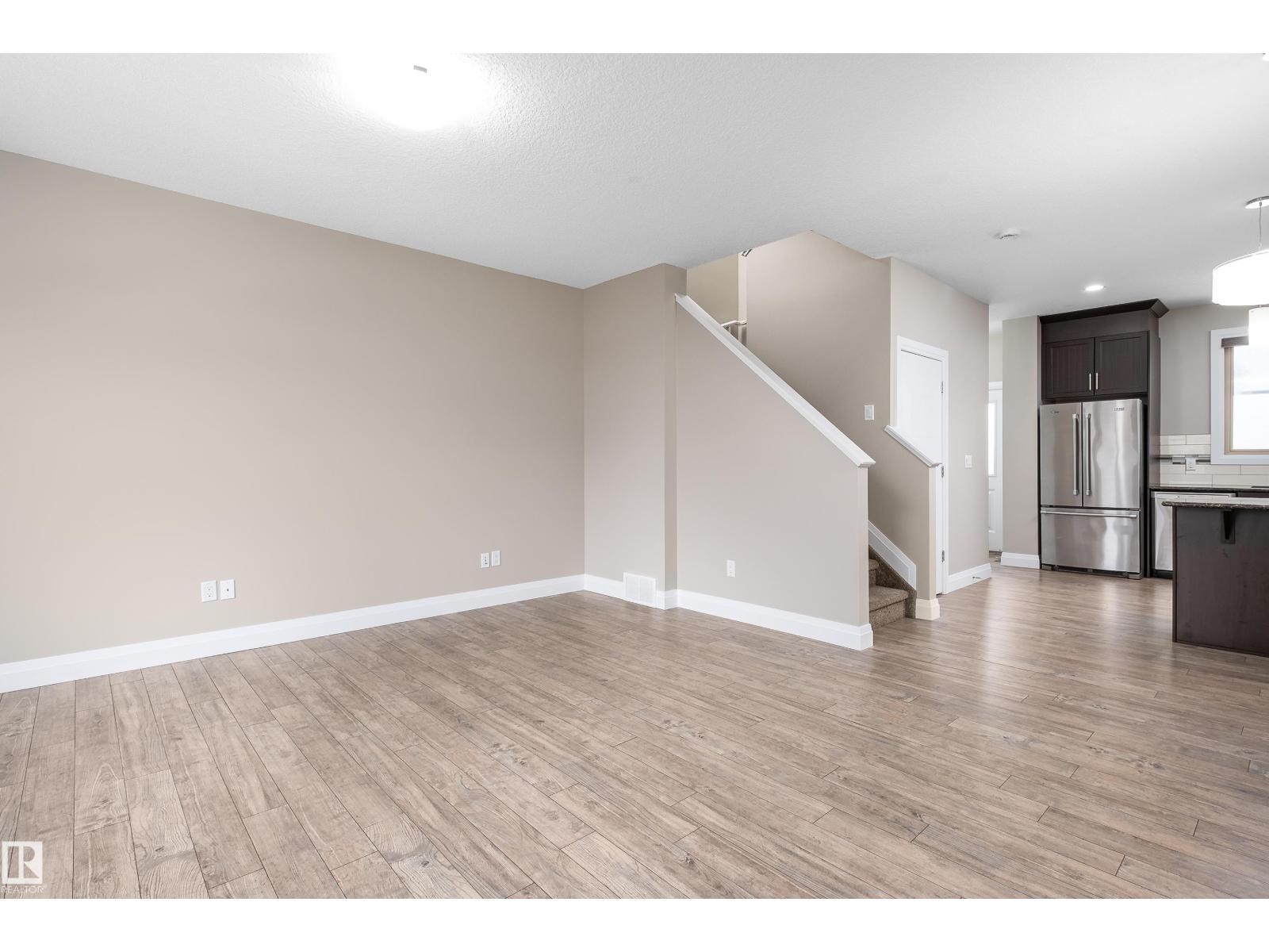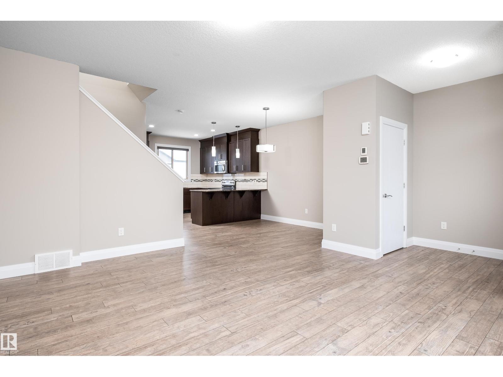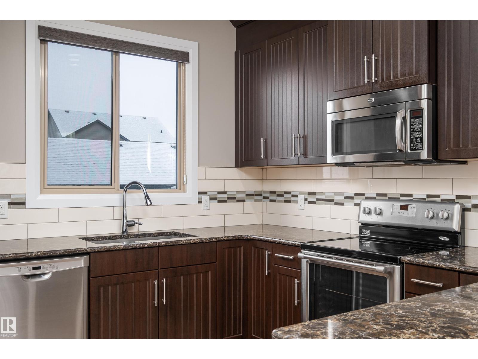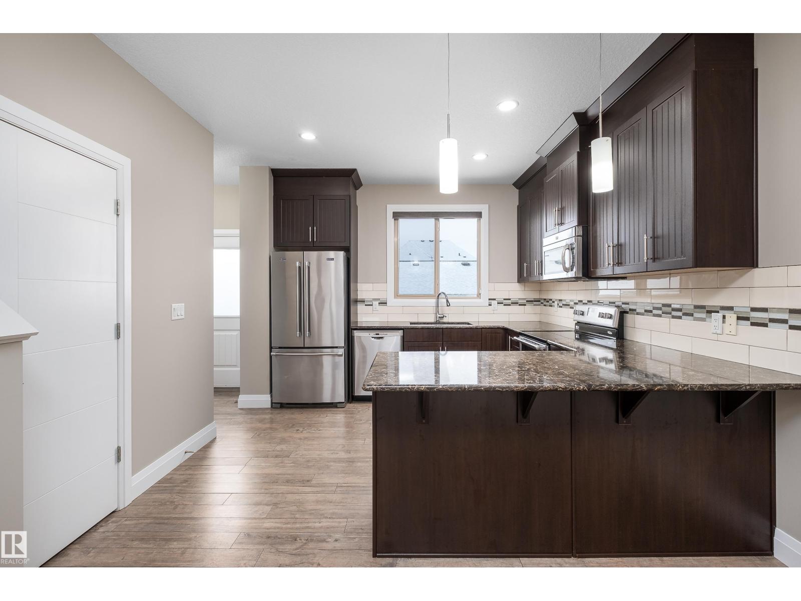 Located in the sought after community of Greenbury, this turn key townhome is sure to please! With over 1,350sqft of living space plus future development potential in the basement, there is more than enough room as a first time homebuyer, young family or investor. Featuring an open and airy open concept design w/ 9ft main floor ceilings, laminate & ceramic tile flooring, s/s appliances, rich full height cabinetry & upgraded quartz countertops in the kitchen, this home is full of upgrades. Upstairs hosts 3 generous bedrooms including the primary w/ walk in closet and 4 pce ensuite. The backyard is ready for your creative touch with low maintenance landscaping, rear deck w/ nat. gas line and a double detached garage. The location is ideal as youre steps away from Jubilee Park, walking trails, the Splash Park, Prescott Learning Centre, the new ball diamond and quick access to commuter roads leading you right into the west end of Edmonton. (id:63190)
