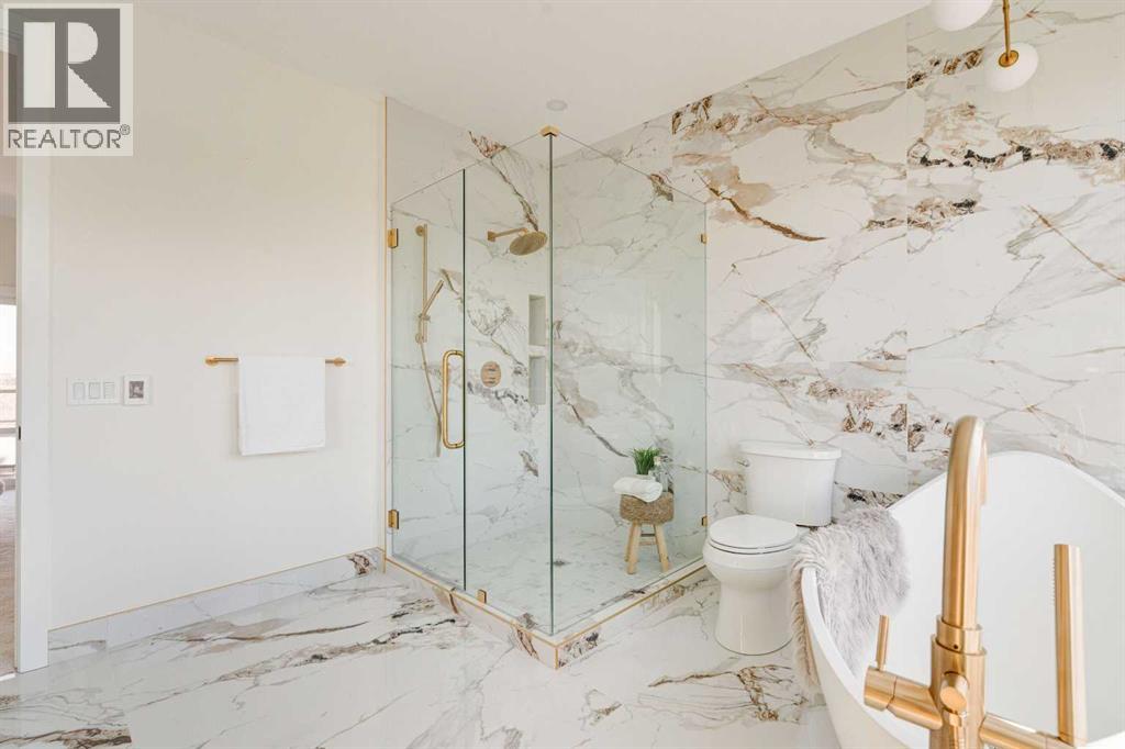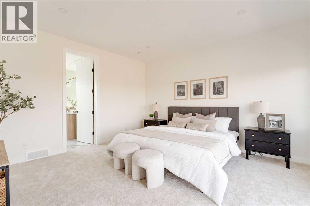 Discover the perfect blend of sophisticated living and everyday comfort in this exceptional home in the heart of Winston Heights. Spanning over 2,900 square feet of thoughtfully developed space, this residence offers stunning views and a layout that truly works for how you live.The main floor welcomes you with an open, light-filled living room anchored by a cozy gas fireplace — the kind of space where memories are made over long dinners and great conversations. Just steps away, the gourmet kitchen shines with premium finishes and thoughtful design, making it a joy to cook, entertain, or simply enjoy your morning coffee.Upstairs, the second floor delivers flexibility with a peaceful primary suite featuring a luxurious 5-piece ensuite, plus an additional bedroom that adapt beautifully for family, a home office, or a quiet reading nook. The third floor is a true standout — a private master retreat with its own generous 5-piece ensuite and a private patio that captures breathtaking views, ideal for unwinding with a glass of wine on warm summer evenings.Throughout the home, you’ll notice the quality touches: rich hardwood floors, sleek quartz countertops, and impeccable craftsmanship in every detail.The fully finished basement adds even more living options with a spacious recreation room complete with a wet bar, two additional bedrooms, and a full bathroom — perfect for guests, teens, or extended family.Located in vibrant Winston Heights, you’re surrounded by parks, golf courses, and just minutes from downtown Calgary — giving you the rare combination of peaceful neighbourhood living with effortless city access. (id:63190)