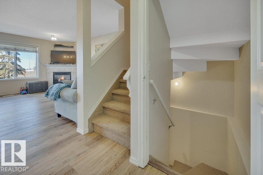 Fantastic Layout & Location—with some fresh paint, new carpet & a little TLC, this is an excellent opportunity to build equity! Incredible value in this bareland townhouse in Summerhill Glens, Larkspur. Offering 3 bedrooms, 1.5 baths, a finished basement, a single attached garage & low condo fees of just $151/month! Brand new hot water tank (2026), modern vinyl plank flooring on main (2025), and shingles (2025). Offering a fenced yard backing an expansive green space & just steps to parks, 2 schools (K-6, 7-9) & walking distance to shopping, groceries & restaurants. Bright, open-concept main floor with central island, built-in dishwasher & dining area that seats 6. Patio doors lead to a private West-facing deck & yard. Spacious living room with a gas fireplace. Main floor powder room with pedestal sink. Upstairs features 3 very generous bedrooms, including a king-sized primary with a sunny, walk-in closet, plus a full 4-pce bath. Finished basement with large rec room & separate laundry/mechanical area. (id:63190)