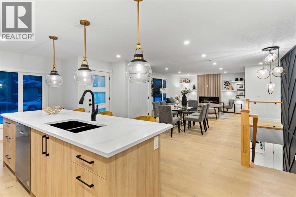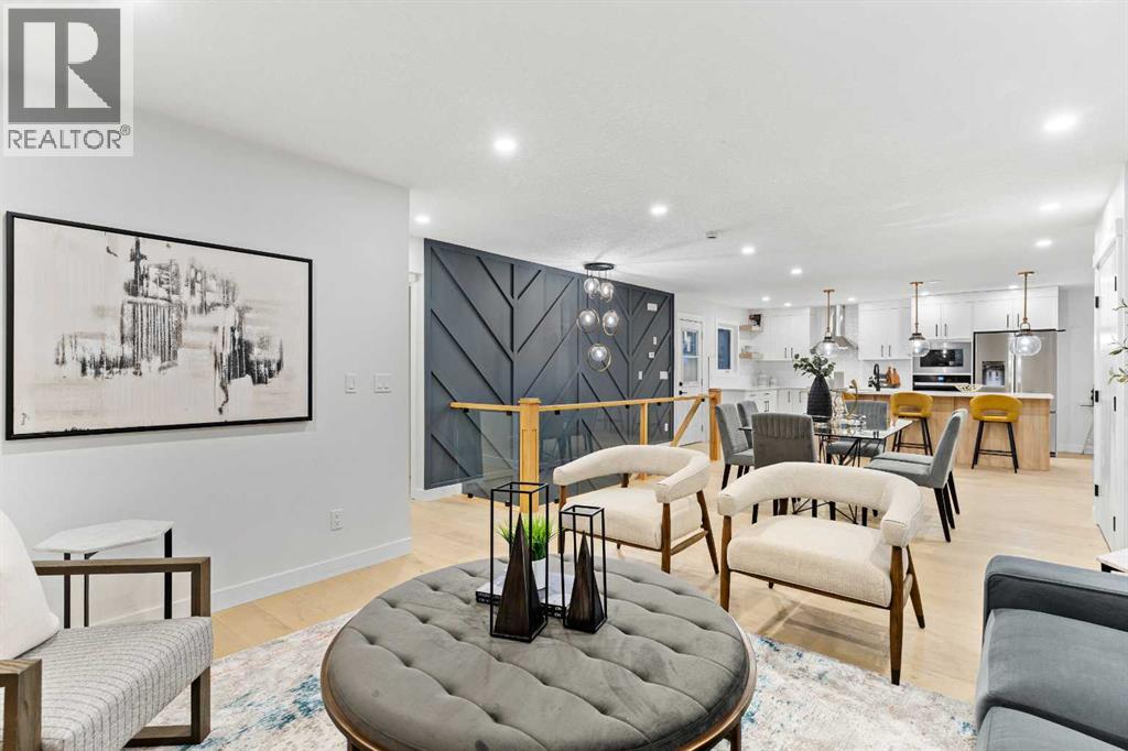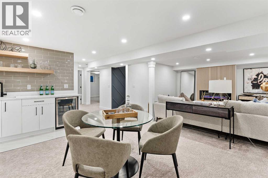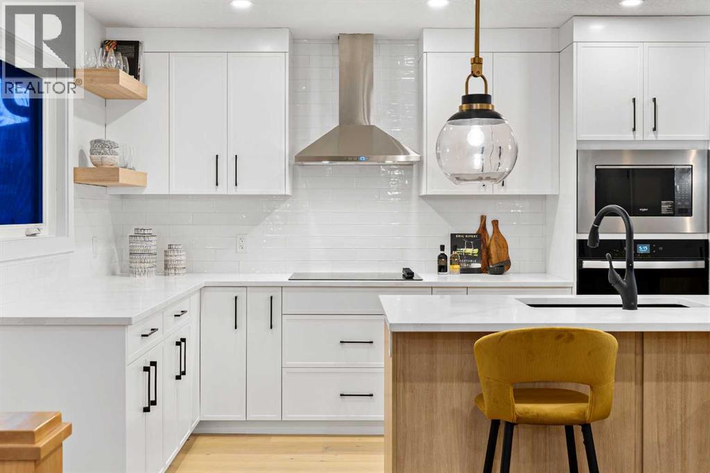 Open House Sunday 12:30-3:15 Welcome to this stunning, extensively renovated 1470 sqft bungalow in the sought-after SW community of Braeside. Completely transformed from the studs, this home boasts high-end renovations throughout, including a stucco exterior, new roof, fascia, eaves, concrete patio, and windows. As you enter, you'll immediately notice the quality craftsmanship, with beautiful engineered hardwood flooring flowing throughout the main floor and stylish tile in the bathrooms. The gourmet kitchen features dual-tone cabinetry, built-in stainless steel appliances, and floating shelves, while the living room offers a cozy electric fireplace and more floating shelves. The main floor includes three spacious bedrooms, with the master suite offering a luxurious 5-piece ensuite bath with a feature wall. A maple glass railing leads to the fully developed basement, which is perfect for entertaining with a family room, wet bar, two additional bedrooms, a full bath, and laundry. Other highlights include a new furnace and water tank, and the home sits on a 60-foot wide RCG lot. Ideally located near schools, playgrounds, and a hockey rink, this home offers the perfect blend of style, comfort, and convenience. (id:63190)