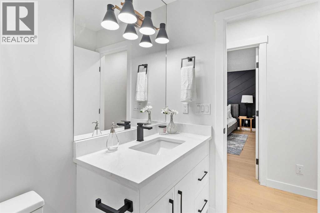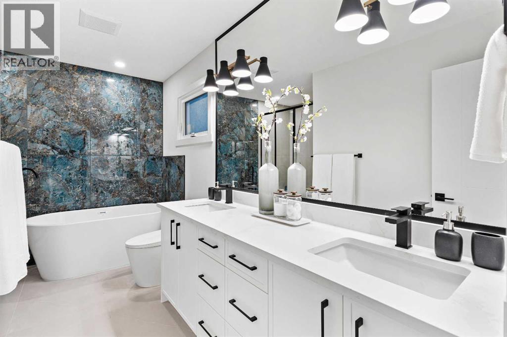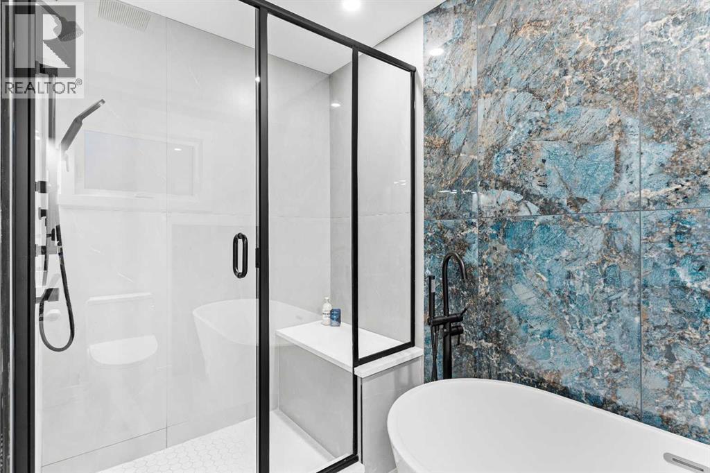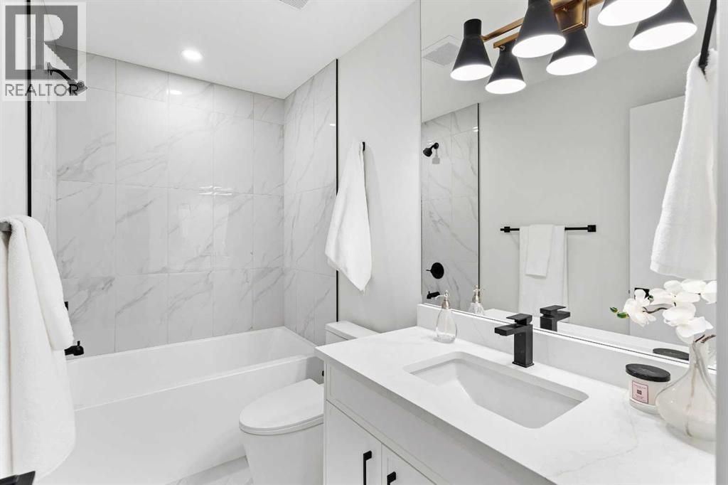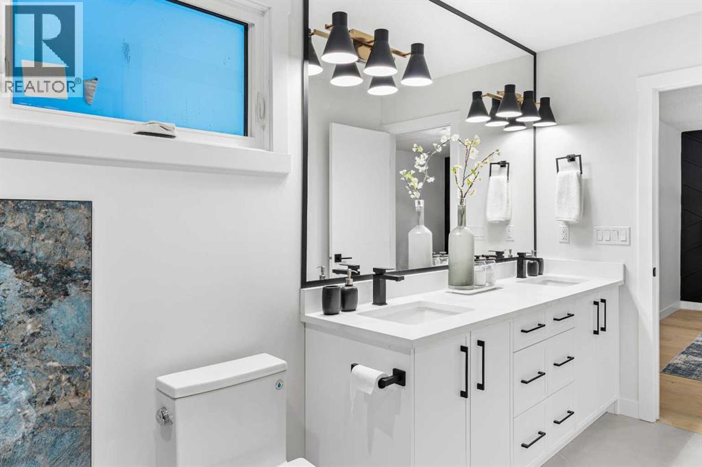 Open House Sunday 12:30-3:15 Welcome to this stunning, extensively renovated 1470 sqft bungalow in the sought-after SW community of Braeside. Completely transformed from the studs, this home boasts high-end renovations throughout, including a stucco exterior, new roof, fascia, eaves, concrete patio, and windows. As you enter, you'll immediately notice the quality craftsmanship, with beautiful engineered hardwood flooring flowing throughout the main floor and stylish tile in the bathrooms. The gourmet kitchen features dual-tone cabinetry, built-in stainless steel appliances, and floating shelves, while the living room offers a cozy electric fireplace and more floating shelves. The main floor includes three spacious bedrooms, with the master suite offering a luxurious 5-piece ensuite bath with a feature wall. A maple glass railing leads to the fully developed basement, which is perfect for entertaining with a family room, wet bar, two additional bedrooms, a full bath, and laundry. Other highlights include a new furnace and water tank, and the home sits on a 60-foot wide RCG lot. Ideally located near schools, playgrounds, and a hockey rink, this home offers the perfect blend of style, comfort, and convenience. (id:63190)