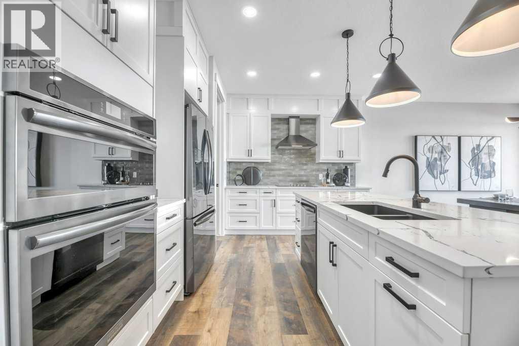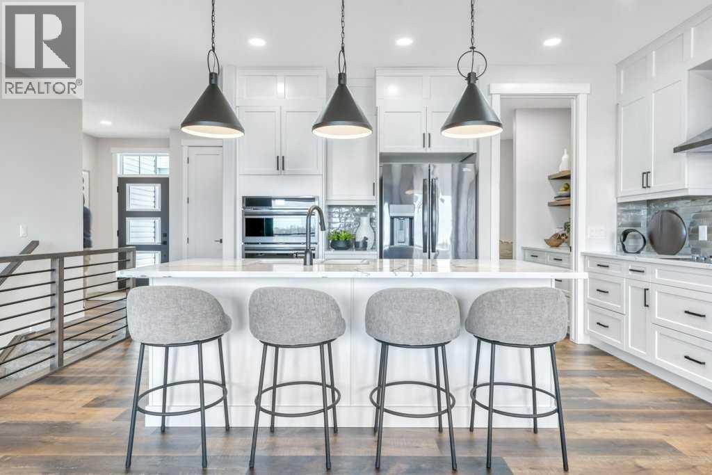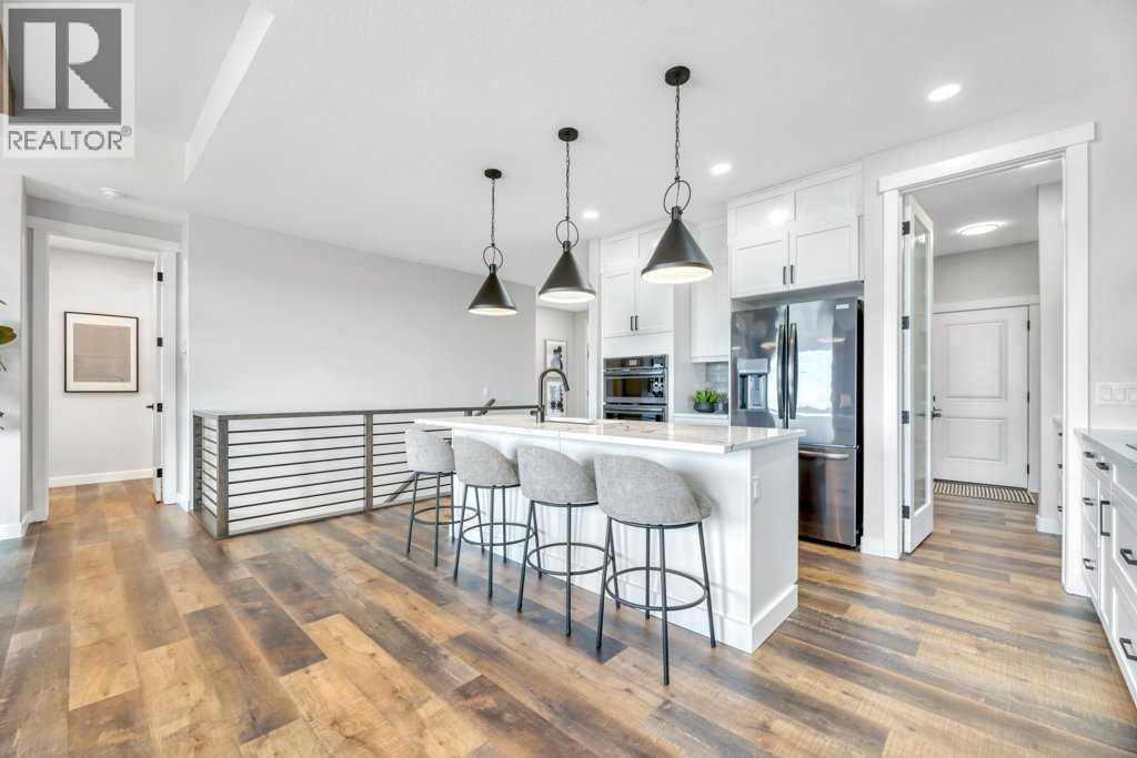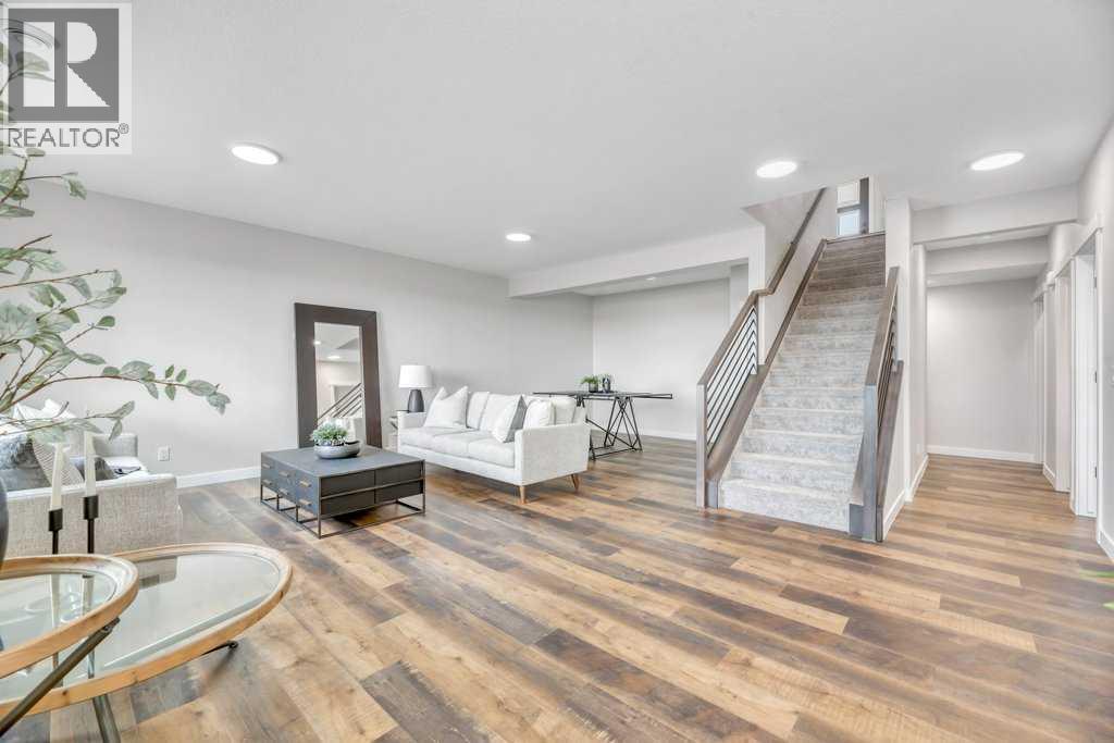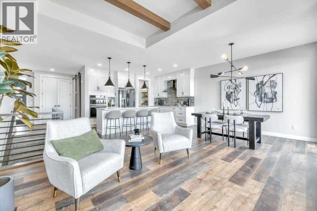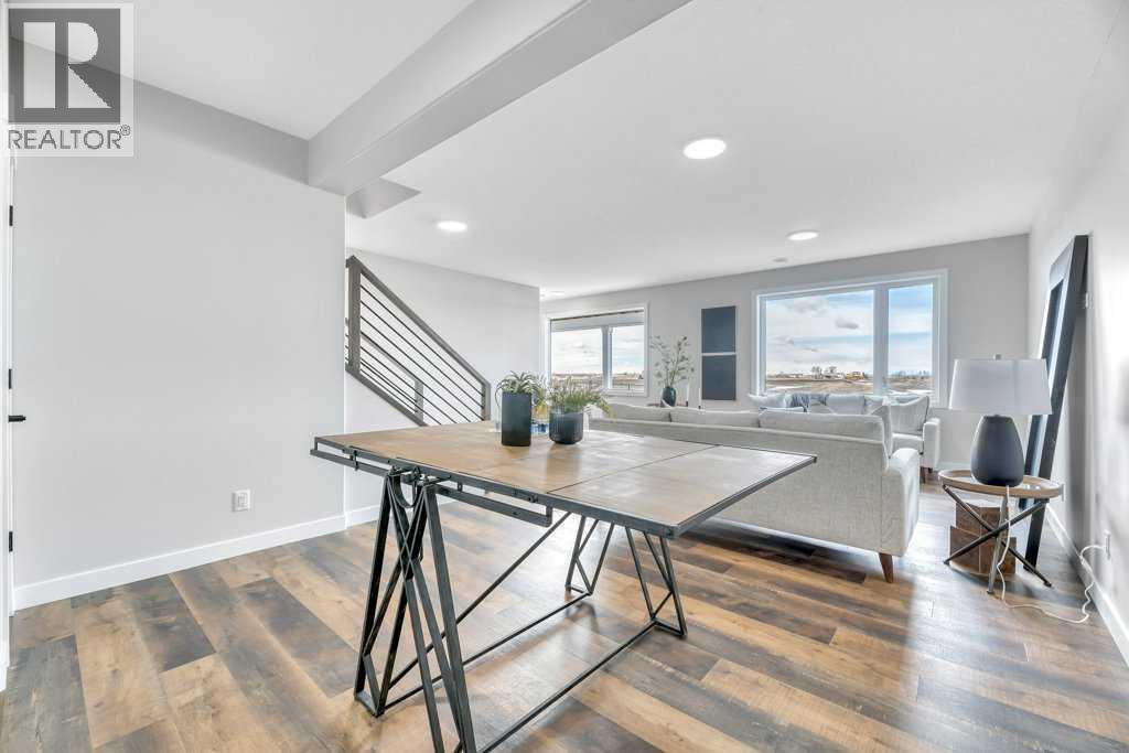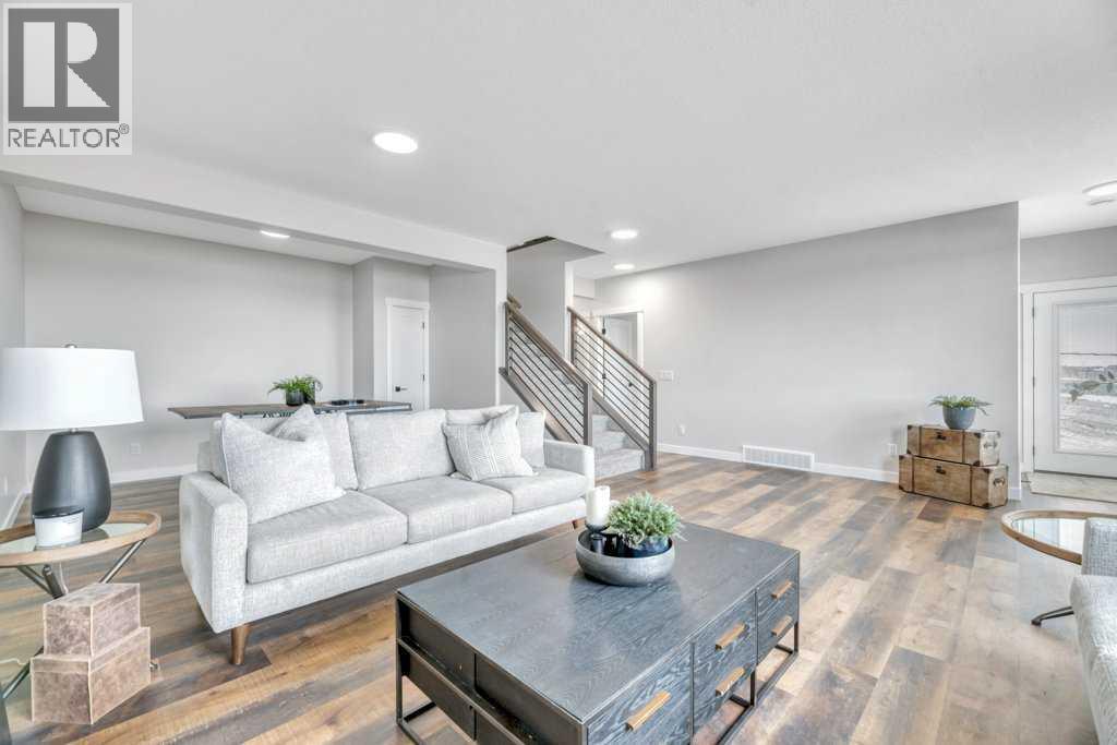 WELCOME HOME--- Thoughtfully designed & Timeless! Check out this CUSTOM BUILT FULLY FINISHED Bungalow Trilogy show home! This home is ready for a family to make it home! From the moment you walk in you are welcomed by all the natural light, and all the views that Lakewood has to offer! Open concept kitchen with tonnes of storage and massive island open to the living room and dining room. Perfect for entertaining! All the details are what take this home to the next level--> CUSTOM there was nothing missed in this curated design from top to bottom! Dining room walks onto the large maintenance free deck that will steal your heart with the views of the pond and the sunsets! The kitchen,dining and living room will capture your attention with the well thought out lighting, and the custom fireplace and the BEAMS!!!- the beams in the living room add extra character and thought! The main floor is complete with walk through pantry, main floor laundry, a huge back porch perfect for busy families! The front room can be used an office or another bedroom. The Primary suite is an oasis - big windows, and a spa like ensuite, and huge walk in closet! Downstairs will not disappoint, 2 huge bedrooms another full bath and a massive family room and games are that walk out to the concrete pad with access to the back yard! Home is complete with Ac! Vinyl plank flooring throughout- upgrades everywhere! Call you Realtor t book your private showing! (id:63190)