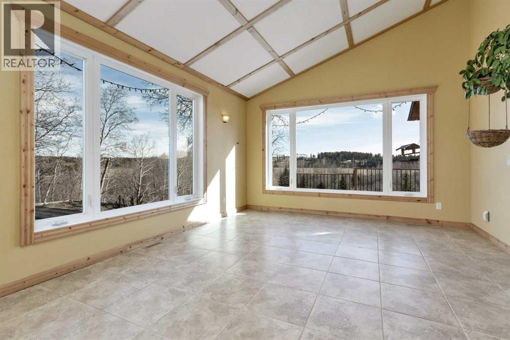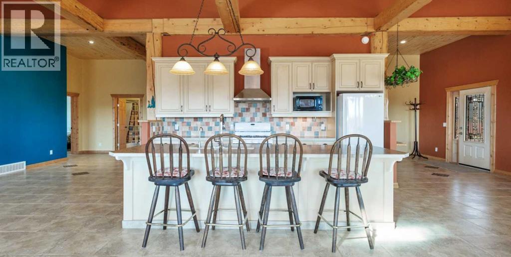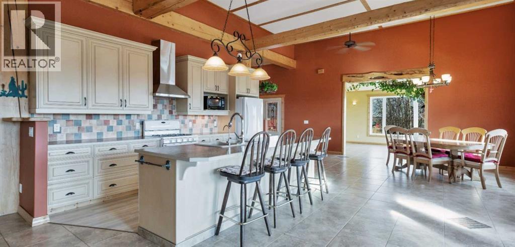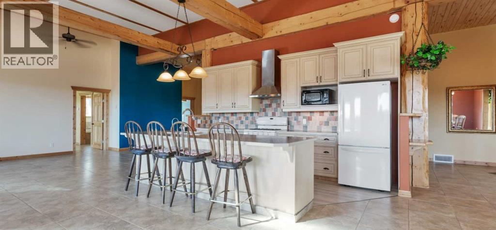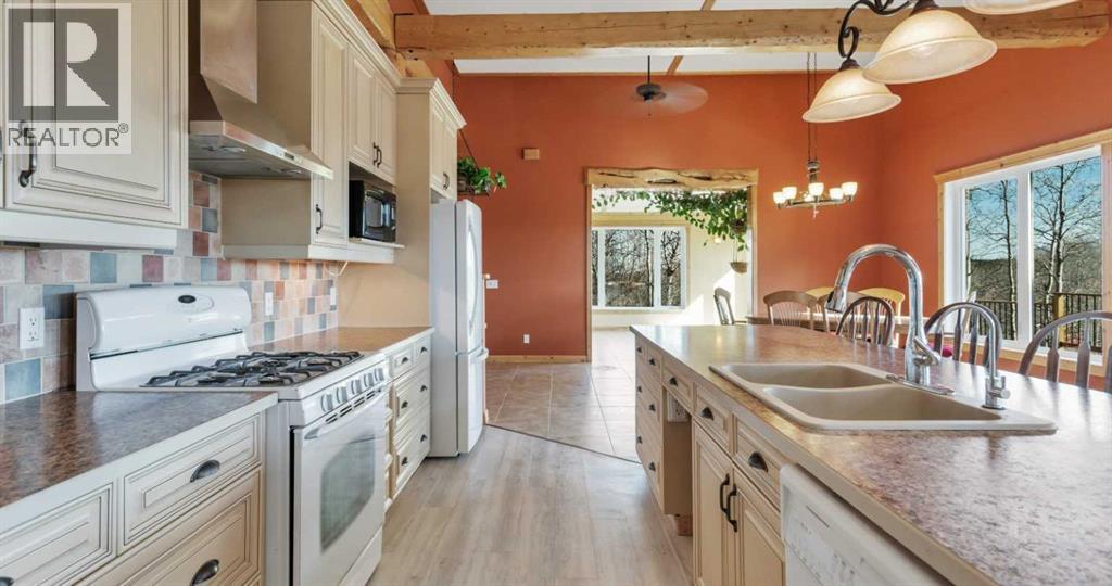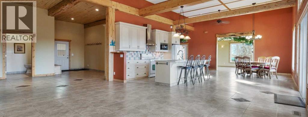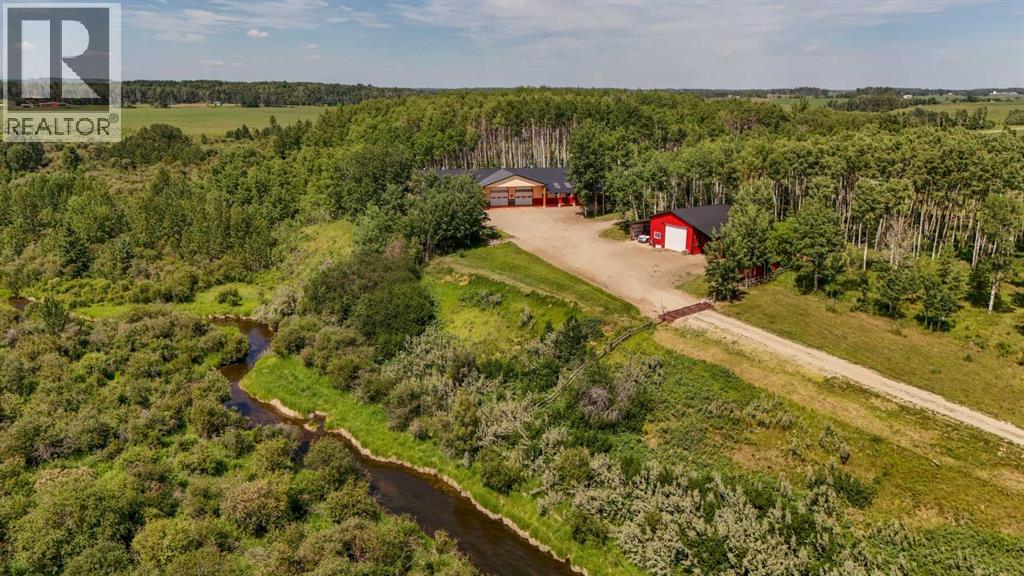 Set on an extraordinary 93 acres, this one-of-a-kind property is bordered along the entire south boundary by the North Raven River, offering unmatched privacy, breathtaking views, and direct access to some of the best brown trout fishing in the area. With over 2,300 sq ft of beautifully designed living space, this home features stunning log beam accents throughout and an expansive open-concept layout that seamlessly connects the kitchen, dining, and living areas, all positioned to capture the incredible river valley scenery and surrounding wildlife. A bright sunroom with a cozy wood-burning fireplace provides the perfect place to relax year-round, while travertine tile flows throughout the home, adding warmth and timeless style. The king-sized primary suite easily accommodates large furniture and includes a luxurious 4-piece ensuite with a soaker tub, complemented by two additional bedrooms and two more bathrooms. The thoughtfully designed laundry room offers extensive cabinetry and counter space for folding, along with an entire wall of additional storage and pantry space. Step outside to wraparound decks that showcase the natural beauty in every direction, creating a true outdoor sanctuary for nature lovers, hunters, and fishing enthusiasts. The property is exceptionally well-equipped with a 1,257 sq ft attached garage and an impressive 1,530 sq ft barn featuring a tack room and flexible space ideal for a business, workshop, or personal retreat. A separate guest cabin adds even more versatility and, with a little work, could be transformed into a charming Airbnb or private retreat for visitors. Equestrian-ready and business-friendly, the land also includes two livestock shelters with water, a hay shed, and a 24x38 shop with covered storage or parking on both sides. This rare offering combines natural beauty, functional infrastructure, and endless potential, making it a must-see property where opportunities like this simply do not come along often. (id:63190)