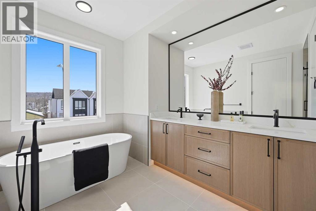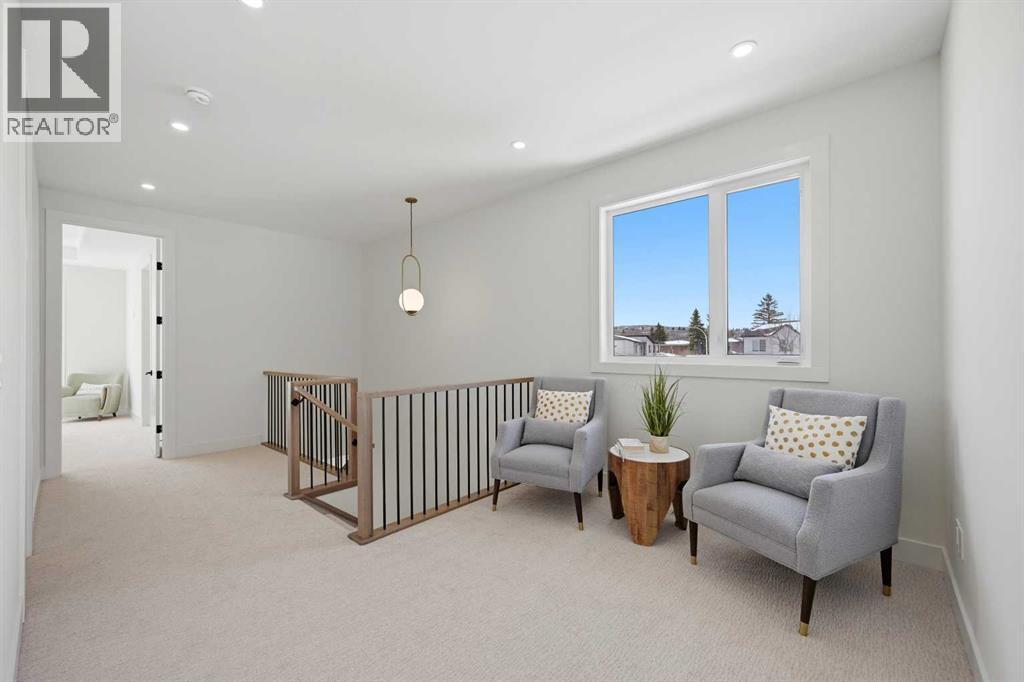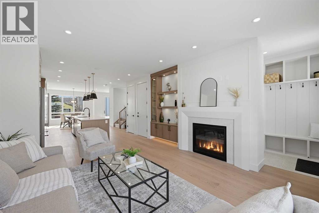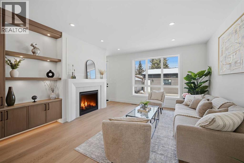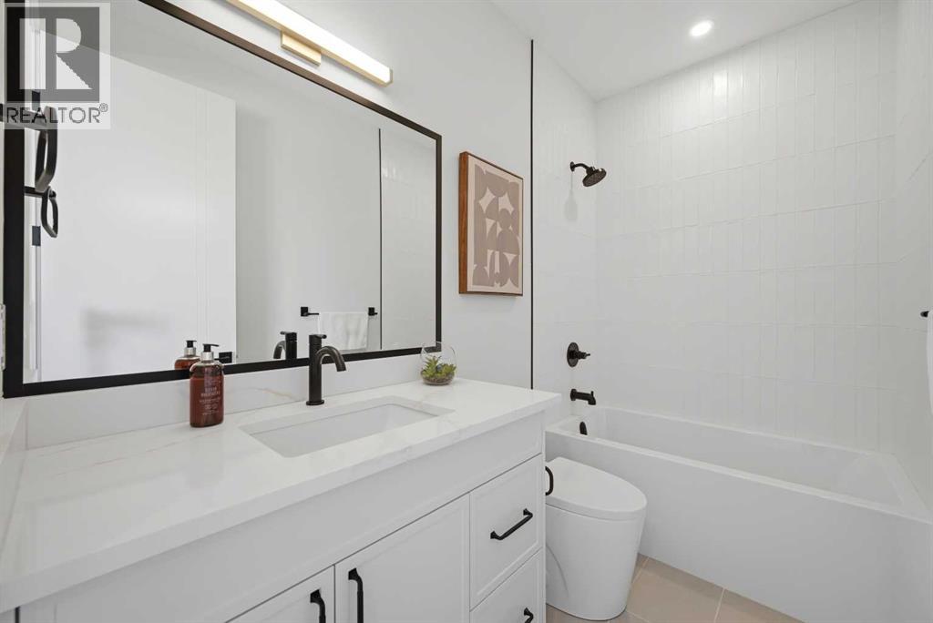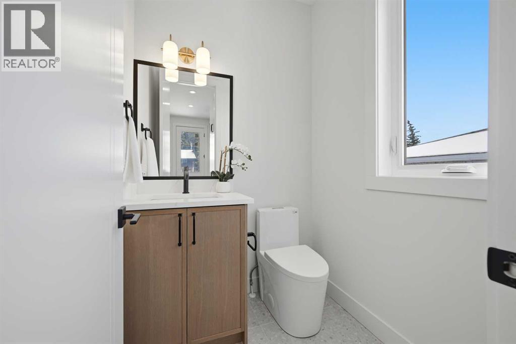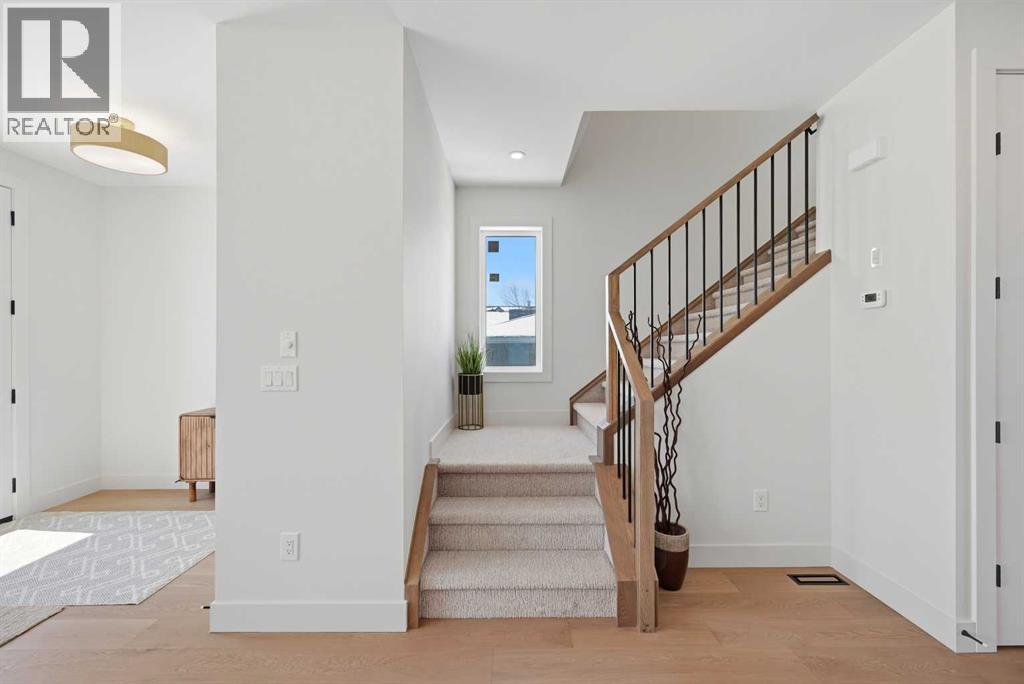 SOLID Built with Luxury in Mind on a quiet street - Another project from Sarai Custom Homes -A Builder you can trust. Located in the vibrant community of Bowness, this semi-detached home blends modern design with practical living and a prime inner-city lifestyle close to parks, schools, and everyday amenities. The main floor features a bright, open layout with a stylish OAK kitchen offering full-height cabinetry, a large island, and thoughtful storage, flowing into a warm living room anchored by a gas fireplace and large windows that fill the space with natural light. A functional mudroom, powder room, and a lot of storage for daily convenience. Upstairs, the spacious primary suite features a clean suspended ceiling design, a walk-in closet, and a spa-inspired ensuite with double vanity, soaker tub, and oversized shower. Two additional bedrooms, a full bath, a bonus room, and an upper laundry complete the level.The lower level offers flexible options — choose a legal 2-bedroom suite or a BAR or a rec room and gym layout — ideal for extended family or additional income potential.Located minutes from Bowness Park, Bow River pathways, schools, and quick routes to downtown and the mountains, this home delivers comfort, flexibility, and an exceptional northwest location. (id:63190)