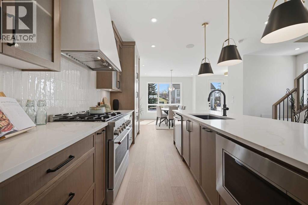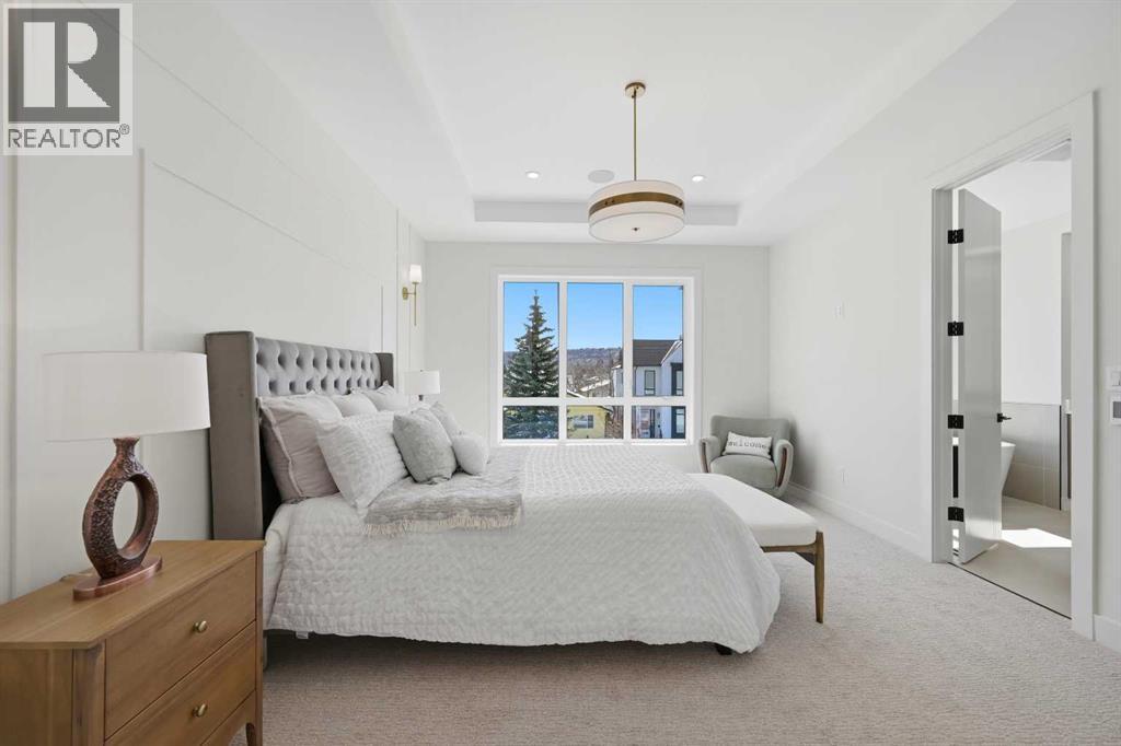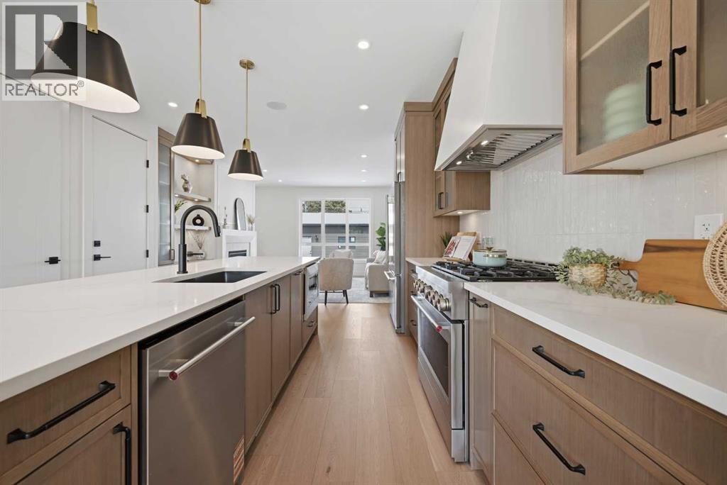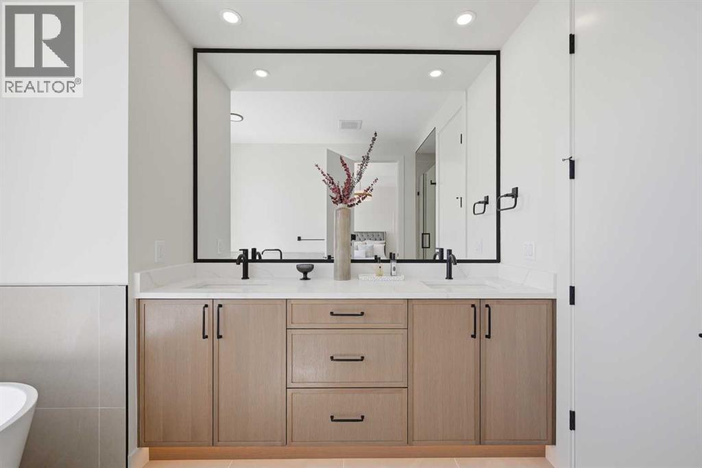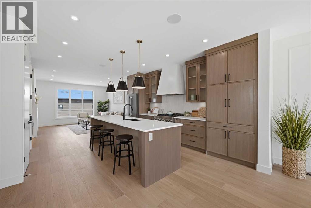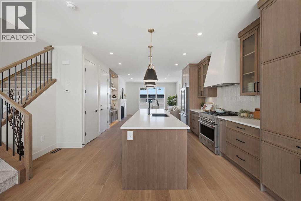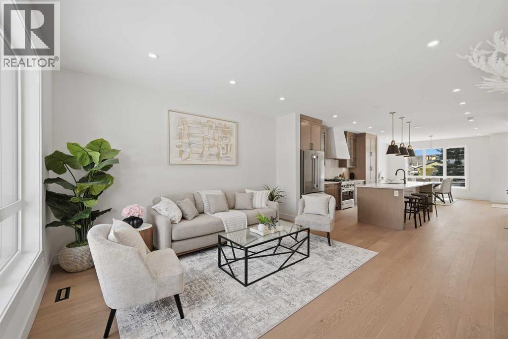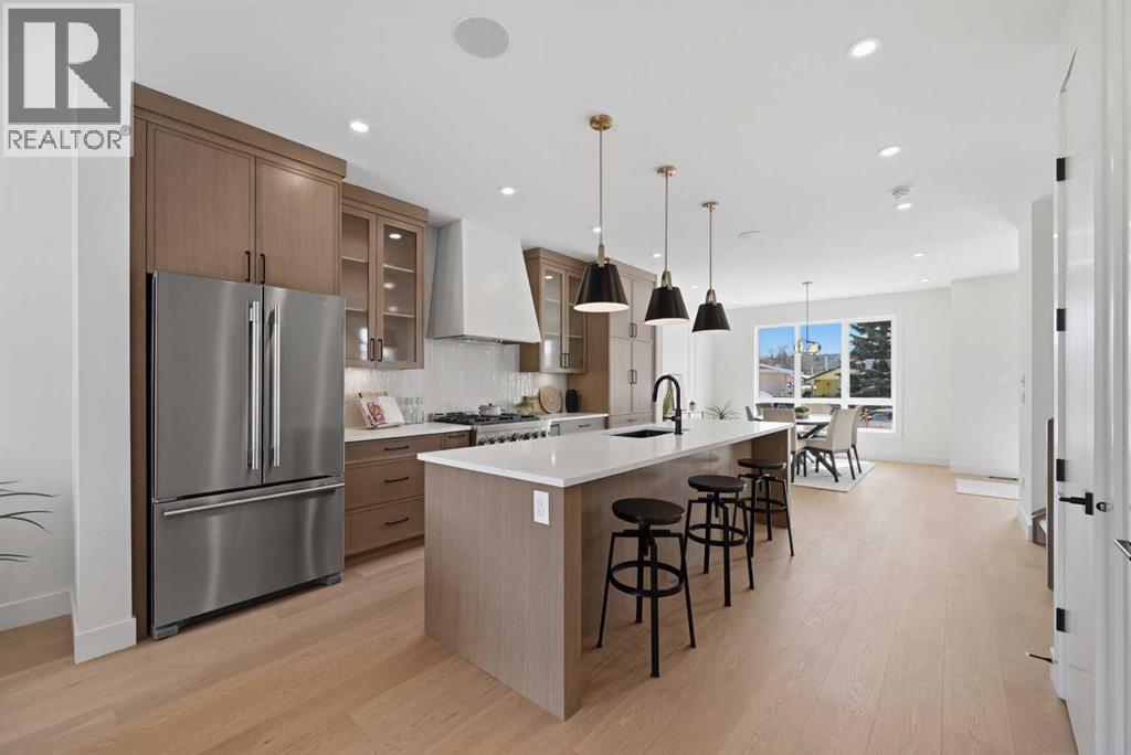 SOLID Built with Luxury in Mind on a quiet street - Another project from Sarai Custom Homes -A Builder you can trust. Located in the vibrant community of Bowness, this semi-detached home blends modern design with practical living and a prime inner-city lifestyle close to parks, schools, and everyday amenities. The main floor features a bright, open layout with a stylish OAK kitchen offering full-height cabinetry, a large island, and thoughtful storage, flowing into a warm living room anchored by a gas fireplace and large windows that fill the space with natural light. A functional mudroom, powder room, and a lot of storage for daily convenience. Upstairs, the spacious primary suite features a clean suspended ceiling design, a walk-in closet, and a spa-inspired ensuite with double vanity, soaker tub, and oversized shower. Two additional bedrooms, a full bath, a bonus room, and an upper laundry complete the level.The lower level offers flexible options — choose a legal 2-bedroom suite or a BAR or a rec room and gym layout — ideal for extended family or additional income potential.Located minutes from Bowness Park, Bow River pathways, schools, and quick routes to downtown and the mountains, this home delivers comfort, flexibility, and an exceptional northwest location. (id:63190)