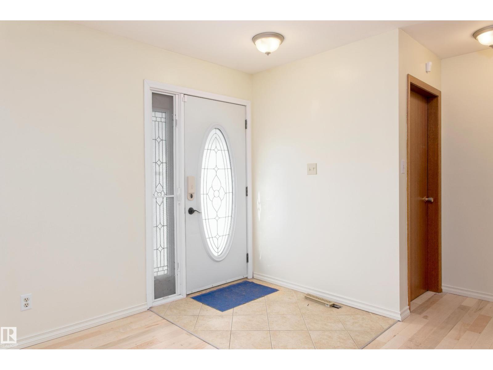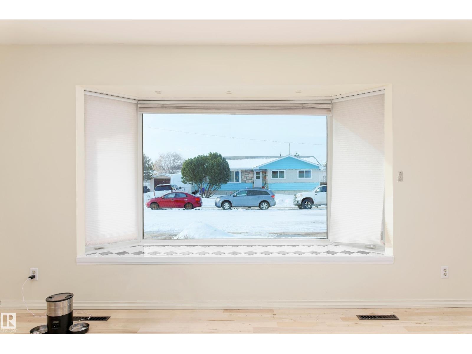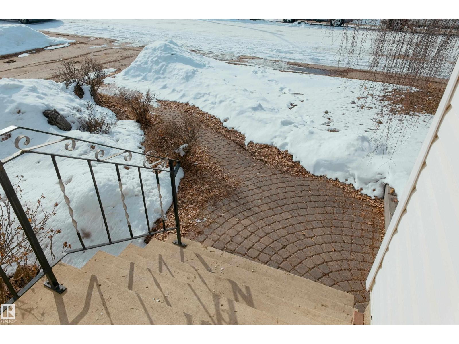 Excellent up-town Bungalow on nice street and private location backing up to the green space of Barrheads sports grounds. 4 bedrooms plus 2 updated bathrooms both w/ heated tile floors. Dynamic kitchen & maple cabinetry update featuring extensive drawer storage, counter top space & stainless appliances. Hardwood & tiled living/dining/kitchen floors. Important upgrades also include extra insulation, vinyl windows, front & back composite decks & more. Attached & heated garage/ workspace. Back yard space is fenced featuring a peaceful private atmosphere, raised garden beds, storage shed, lawn area, back lane access & overlooking views of sports grounds green space. A wonderful property w/ excellent square footage, open/ inviting main floor living space, plentiful storage, 2 large family areas, large lot, a very good location, easy access to down town shopping/schools & recreation. Ready & available w/ much more to see in person. (id:63190)