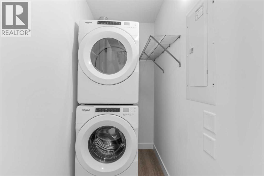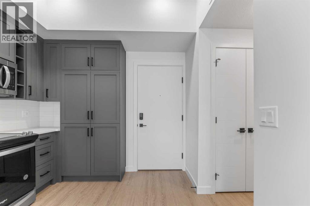 Welcome to the lively University District, where modern living meets an energetic, youthful atmosphere. This beautifully designed top-floor one-bedroom, one-bathroom condo offers a stylish retreat in one of the city’s most sought-after neighborhoods. The open-concept layout seamlessly connects the kitchen, dining, and living areas, creating a bright and inviting space. The contemporary kitchen features floor-to-ceiling cabinetry, stainless steel appliances, and smart storage solutions that balance form and function.Inside, you’ll find the convenience of in-suite laundry with added storage, a well-appointed three-piece bathroom, and warm, sophisticated flooring throughout. The generously sized bedroom boasts large windows and a walk-in closet, providing a calm and comfortable escape.Step out onto the spacious south-facing patio, thoughtfully designed with black wood privacy walls and frosted glass railings—ideal for relaxing or entertaining outdoors. With 10-foot ceilings and air conditioning, this top-floor unit delivers enhanced comfort and a sense of openness. Additional features include titled underground heated parking and a dedicated storage locker.Perfectly situated just steps from the University of Calgary, Alberta Children’s Hospital, Foothills Medical Centre, and Market Mall, this home is ideal for students, healthcare professionals, or anyone seeking a connected urban lifestyle. Enjoy unmatched convenience with nearby amenities such as a Cineplex, skating rink, popular restaurants, bars, and boutique shops—all within walking distance. Don’t miss this opportunity to own a thoughtfully crafted condo in one of Calgary’s most vibrant communities. (id:63190)