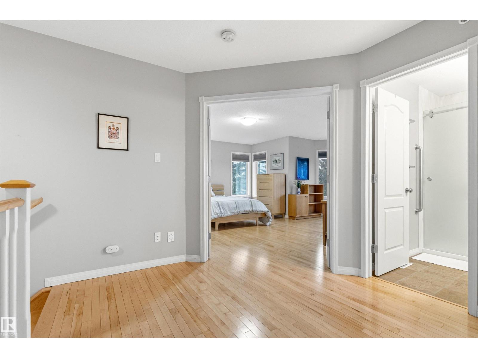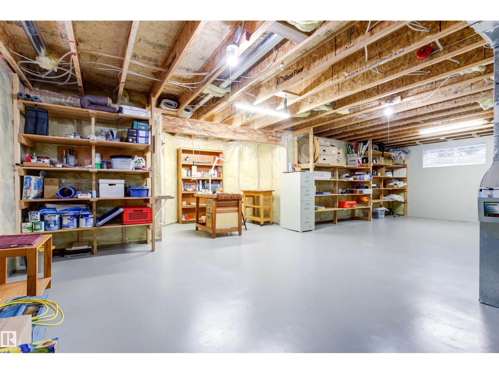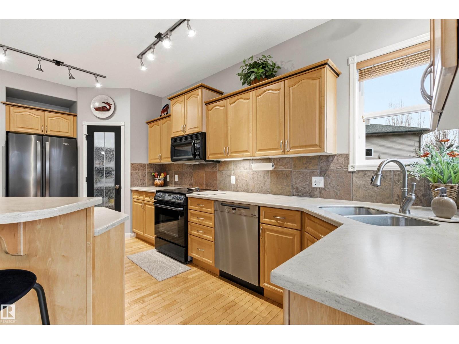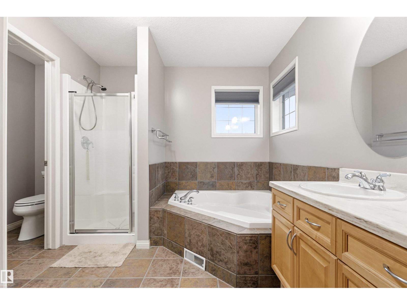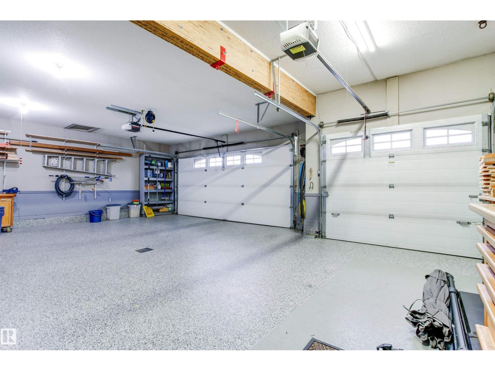 Prestige, privacy, and timeless quality meet in sought-after Lakeshore Estates, just minutes from Edmonton! Set on an impressive 1/2 acre lot, this exceptional 2-storey home offers refined acreage living with modern comforts throughout. Rich maple hardwood and custom cabinetry add warmth & elegance, while the chef-inspired kitchen features granite counters, large island with bar seating, and an open layout perfect for entertaining. Dining area offers beautiful views of rear yard and seats 6-8 + triple pane windows for natural light and efficiency. Enjoy year-round comfort with Central A/C, two gas fireplaces, and the added peace of mind of an interior sprinkler system. Upper level offers 3 spacious bedrooms plus a BONUS ROOM, including a stunning primary retreat with luxurious 5 pc ensuite. Outside, enjoy beautifully landscaped grounds with stamped concrete patio, fire pit, RV parking, storage shed, and room to roam. Triple attached heated garage with 240V wiring completes this rare offering. A MUST SEE! (id:63190)