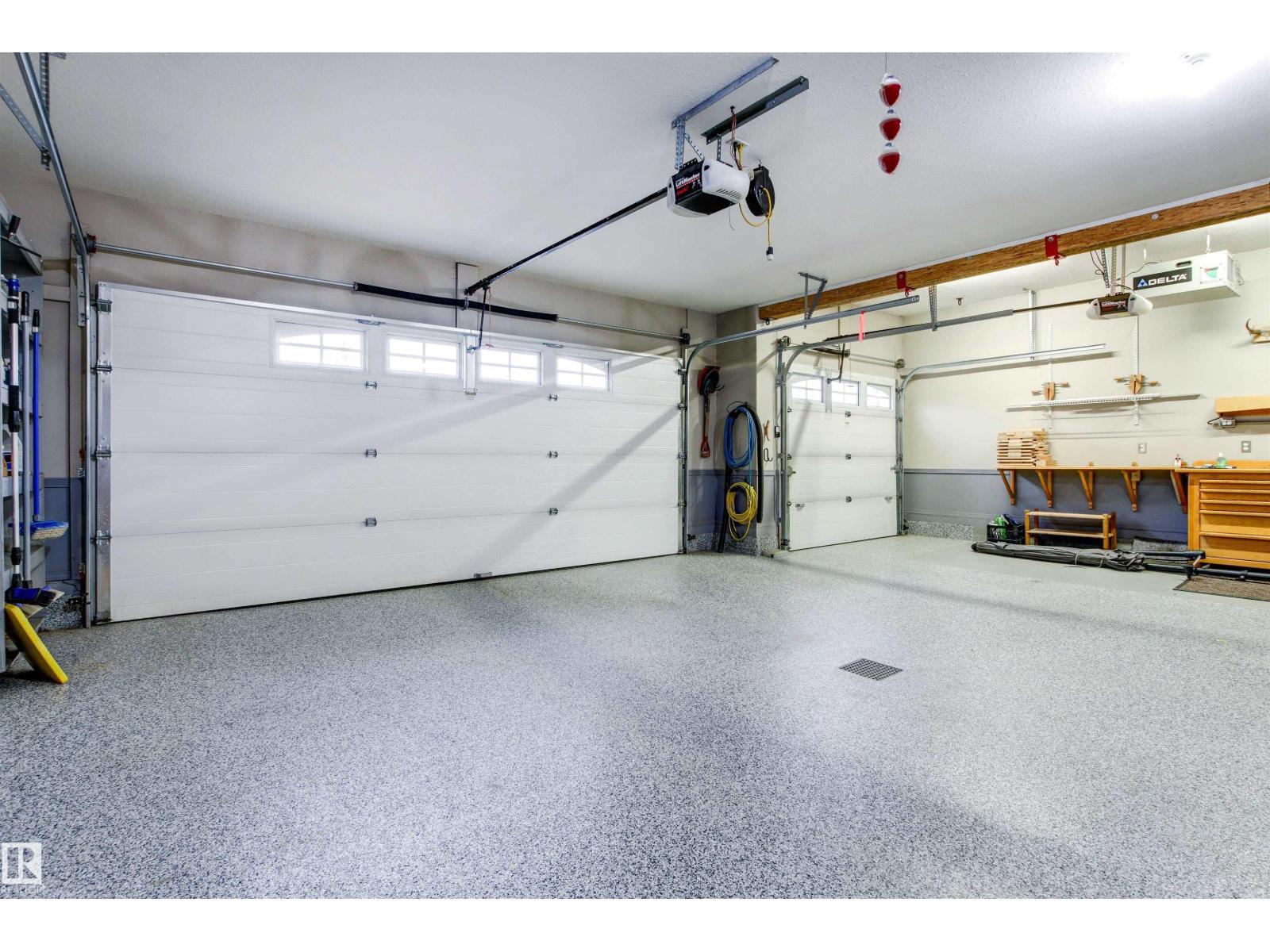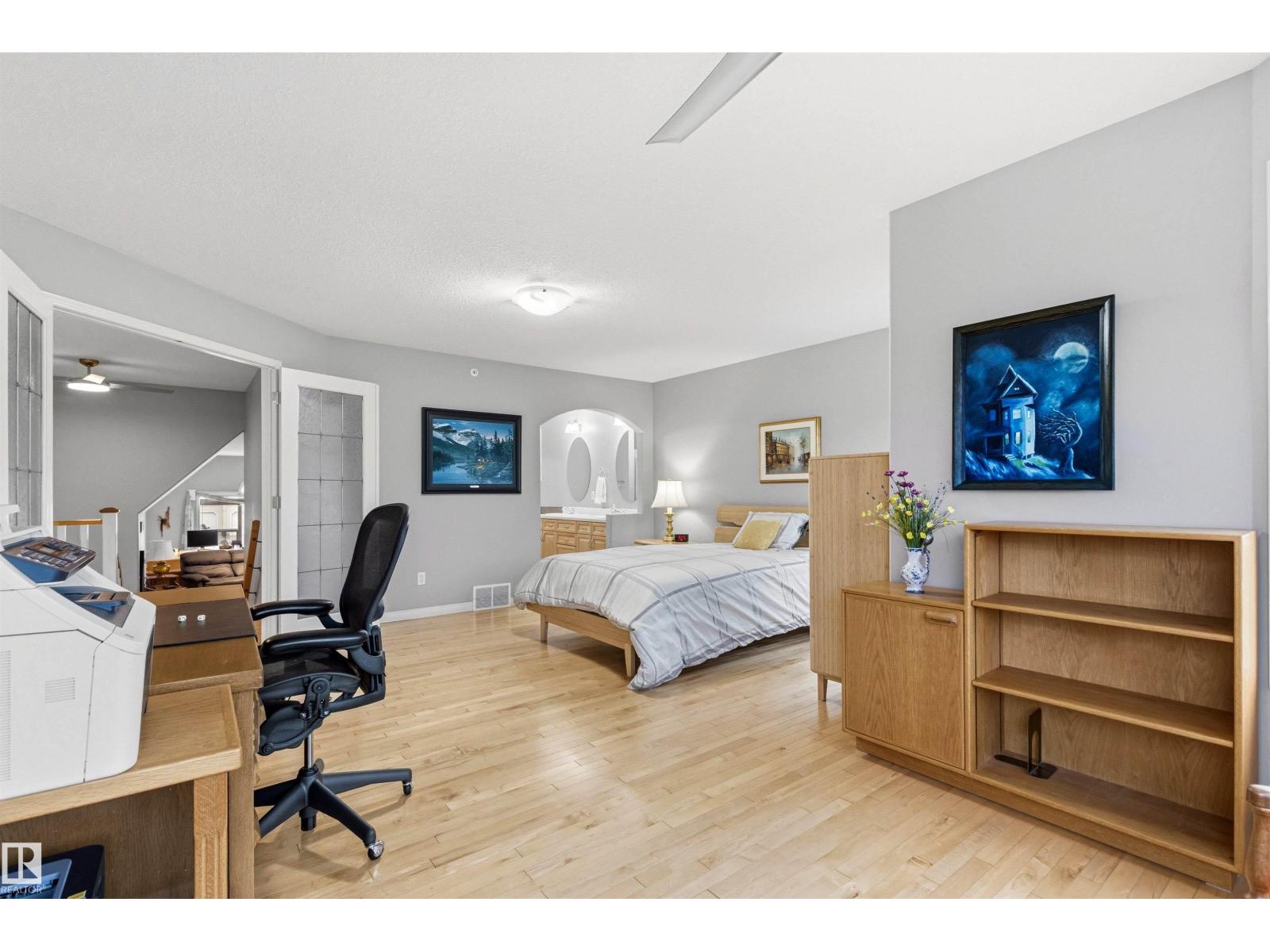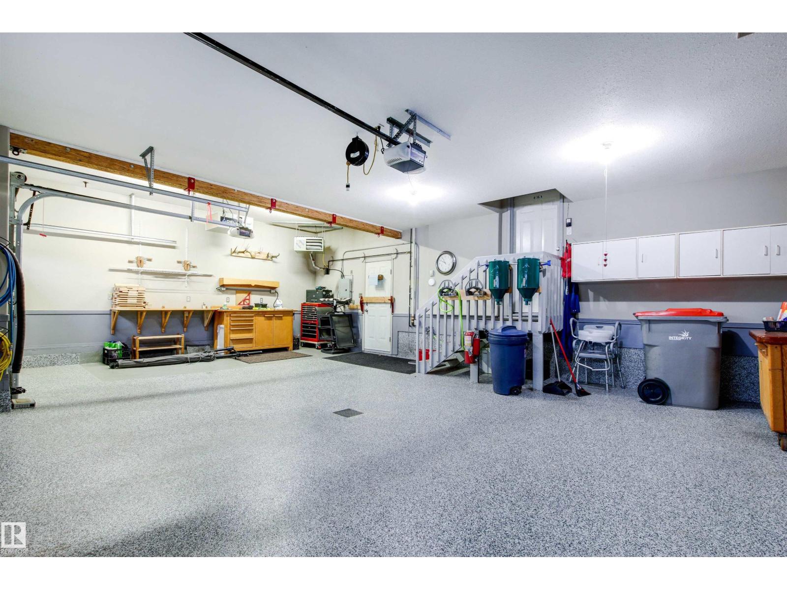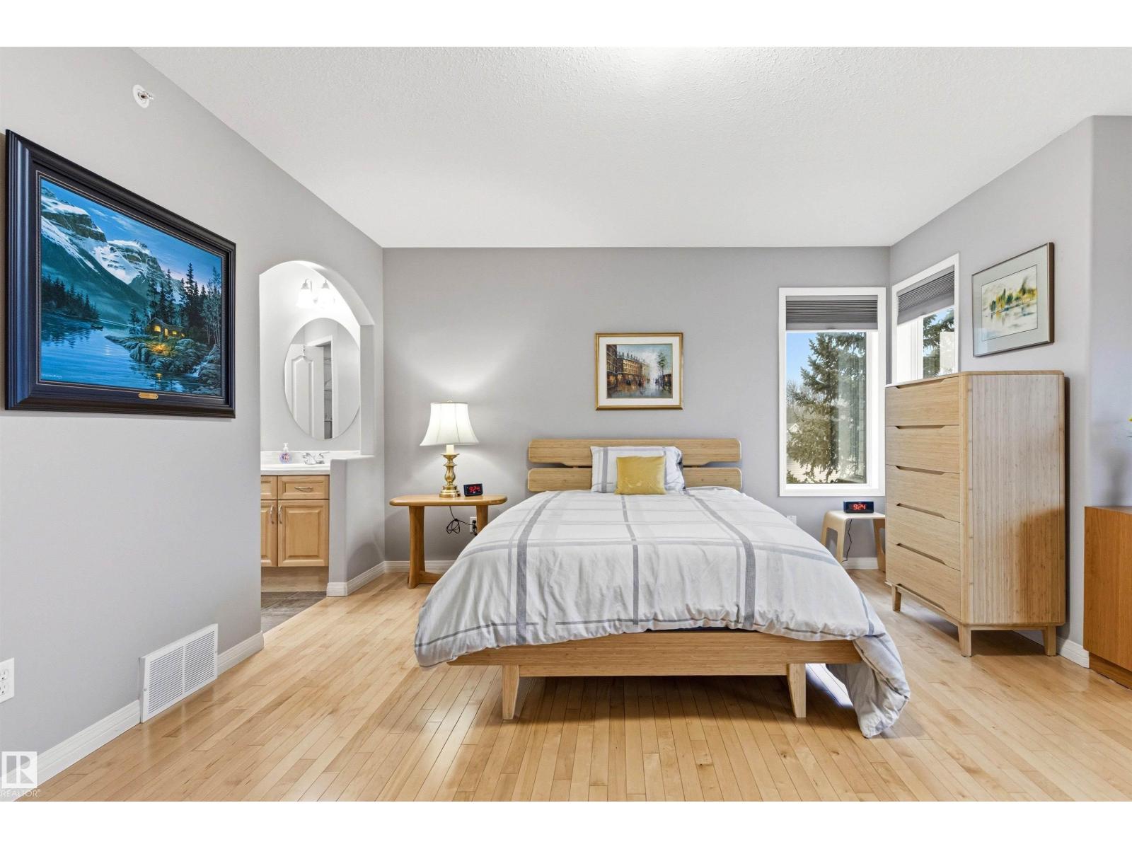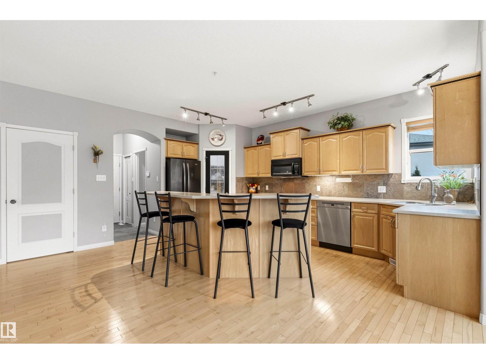 Prestige, privacy, and timeless quality meet in sought-after Lakeshore Estates, just minutes from Edmonton! Set on an impressive 1/2 acre lot, this exceptional 2-storey home offers refined acreage living with modern comforts throughout. Rich maple hardwood and custom cabinetry add warmth & elegance, while the chef-inspired kitchen features granite counters, large island with bar seating, and an open layout perfect for entertaining. Dining area offers beautiful views of rear yard and seats 6-8 + triple pane windows for natural light and efficiency. Enjoy year-round comfort with Central A/C, two gas fireplaces, and the added peace of mind of an interior sprinkler system. Upper level offers 3 spacious bedrooms plus a BONUS ROOM, including a stunning primary retreat with luxurious 5 pc ensuite. Outside, enjoy beautifully landscaped grounds with stamped concrete patio, fire pit, RV parking, storage shed, and room to roam. Triple attached heated garage with 240V wiring completes this rare offering. A MUST SEE! (id:63190)