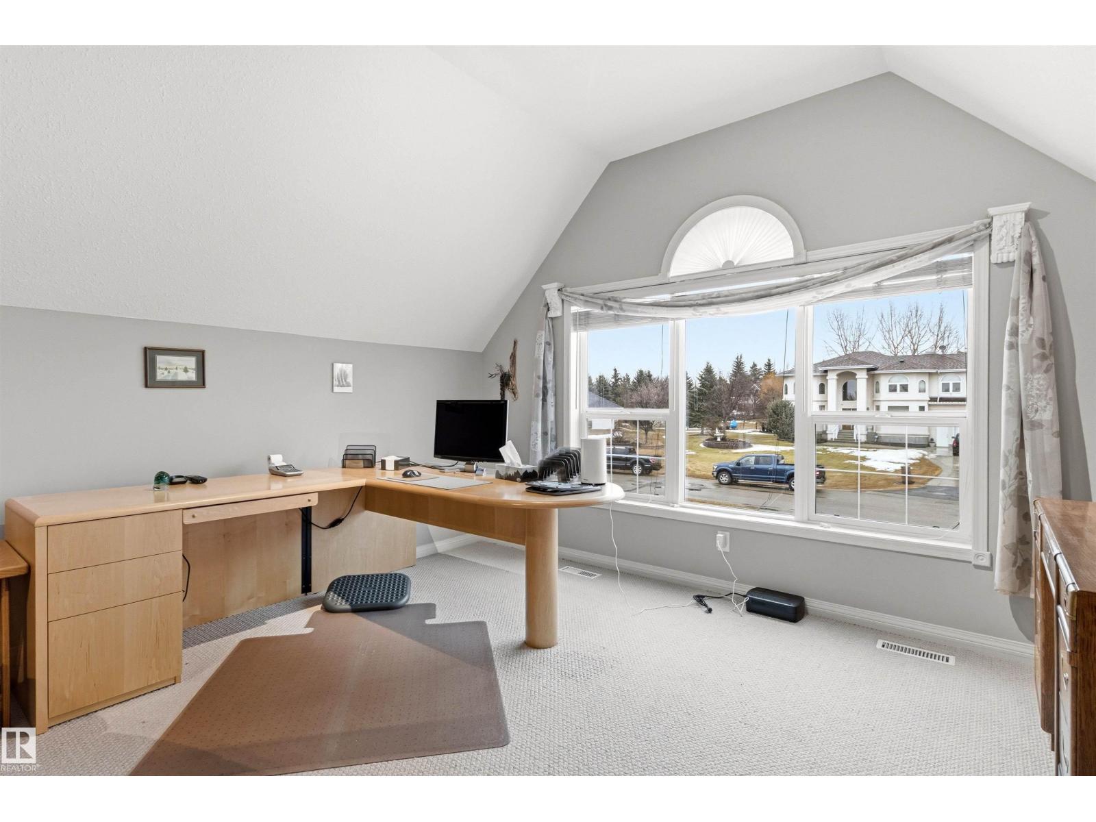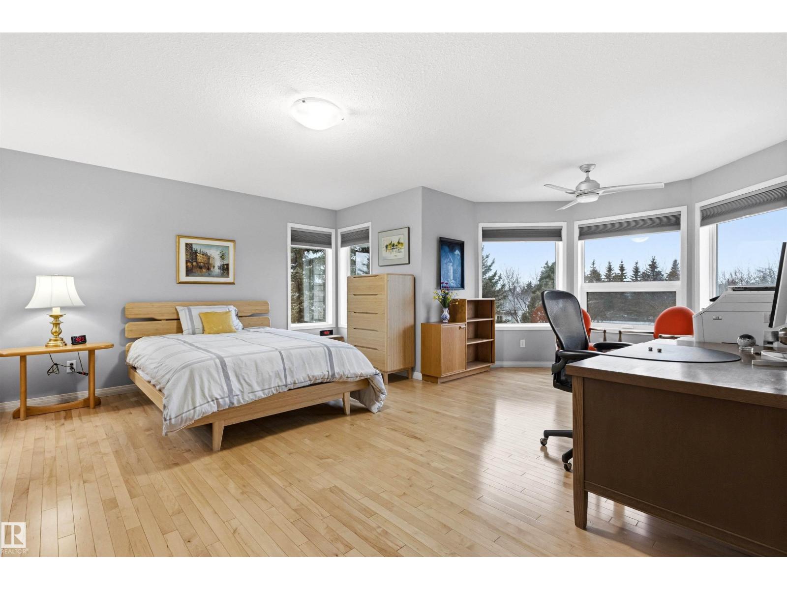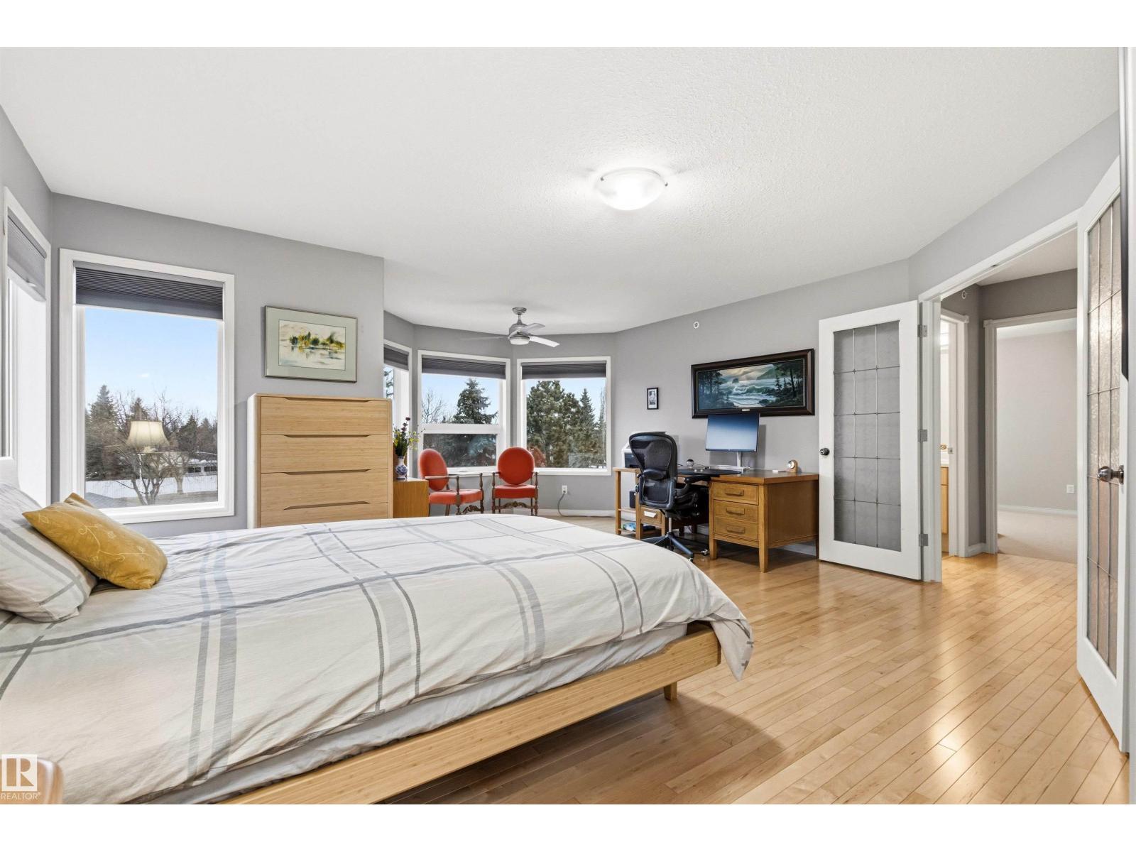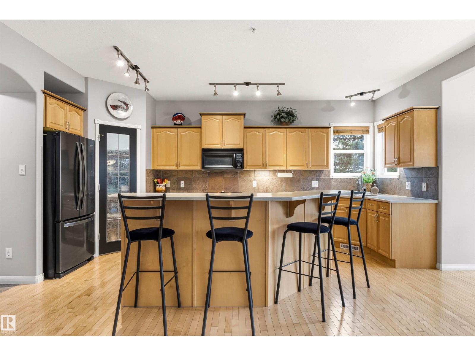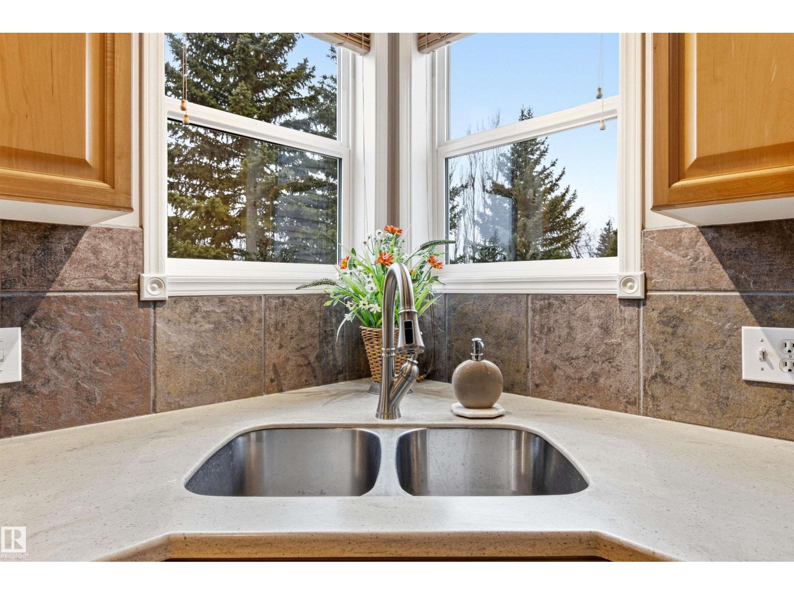 Prestige, privacy, and timeless quality meet in sought-after Lakeshore Estates, just minutes from Edmonton! Set on an impressive 1/2 acre lot, this exceptional 2-storey home offers refined acreage living with modern comforts throughout. Rich maple hardwood and custom cabinetry add warmth & elegance, while the chef-inspired kitchen features granite counters, large island with bar seating, and an open layout perfect for entertaining. Dining area offers beautiful views of rear yard and seats 6-8 + triple pane windows for natural light and efficiency. Enjoy year-round comfort with Central A/C, two gas fireplaces, and the added peace of mind of an interior sprinkler system. Upper level offers 3 spacious bedrooms plus a BONUS ROOM, including a stunning primary retreat with luxurious 5 pc ensuite. Outside, enjoy beautifully landscaped grounds with stamped concrete patio, fire pit, RV parking, storage shed, and room to roam. Triple attached heated garage with 240V wiring completes this rare offering. A MUST SEE! (id:63190)