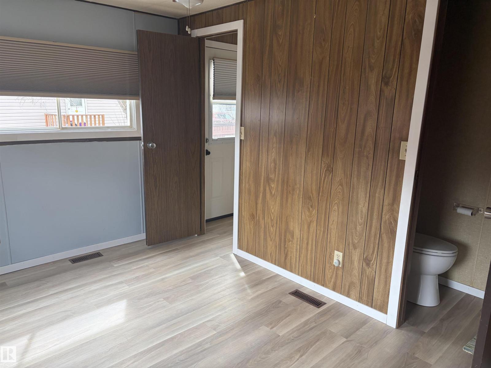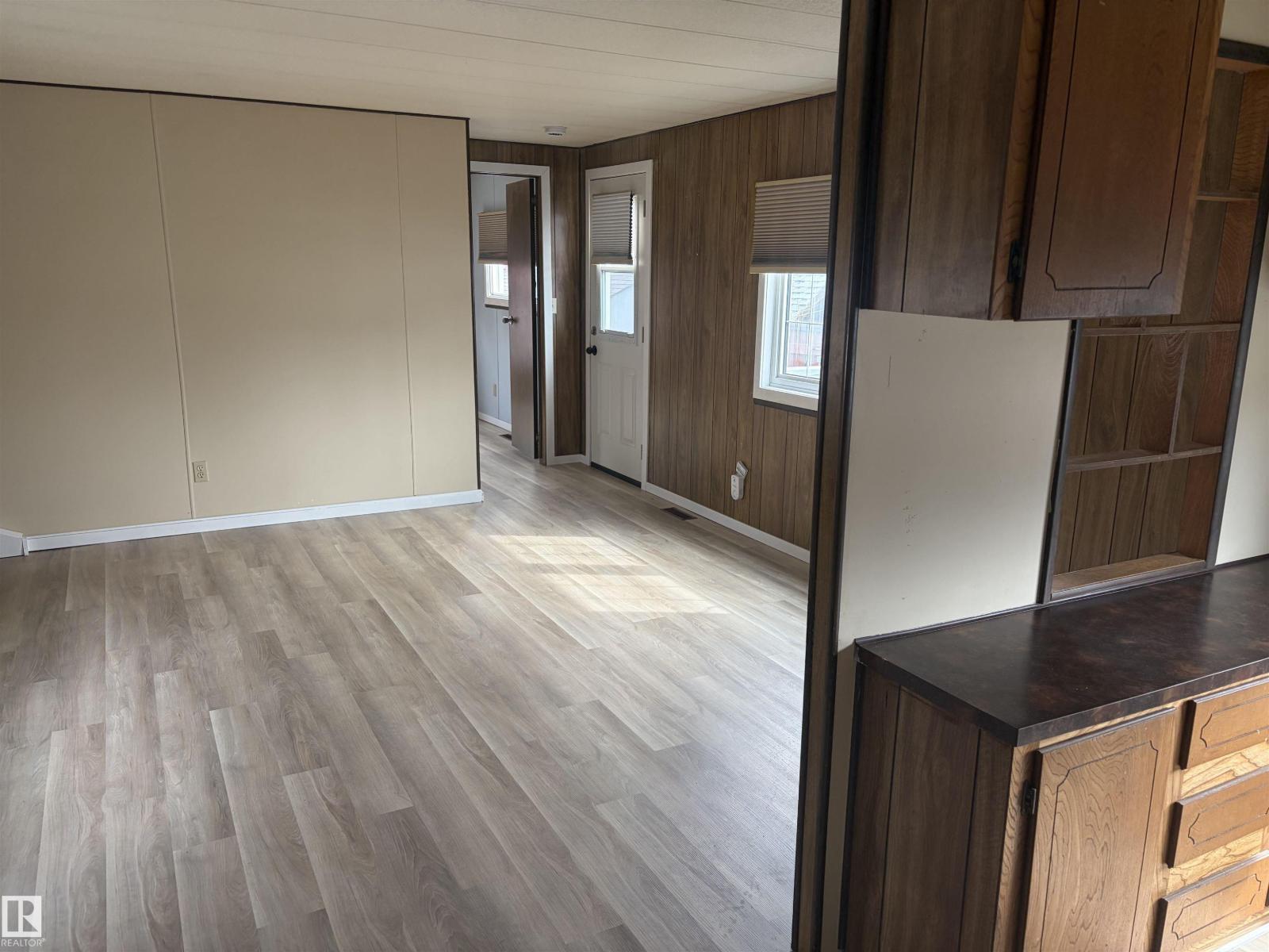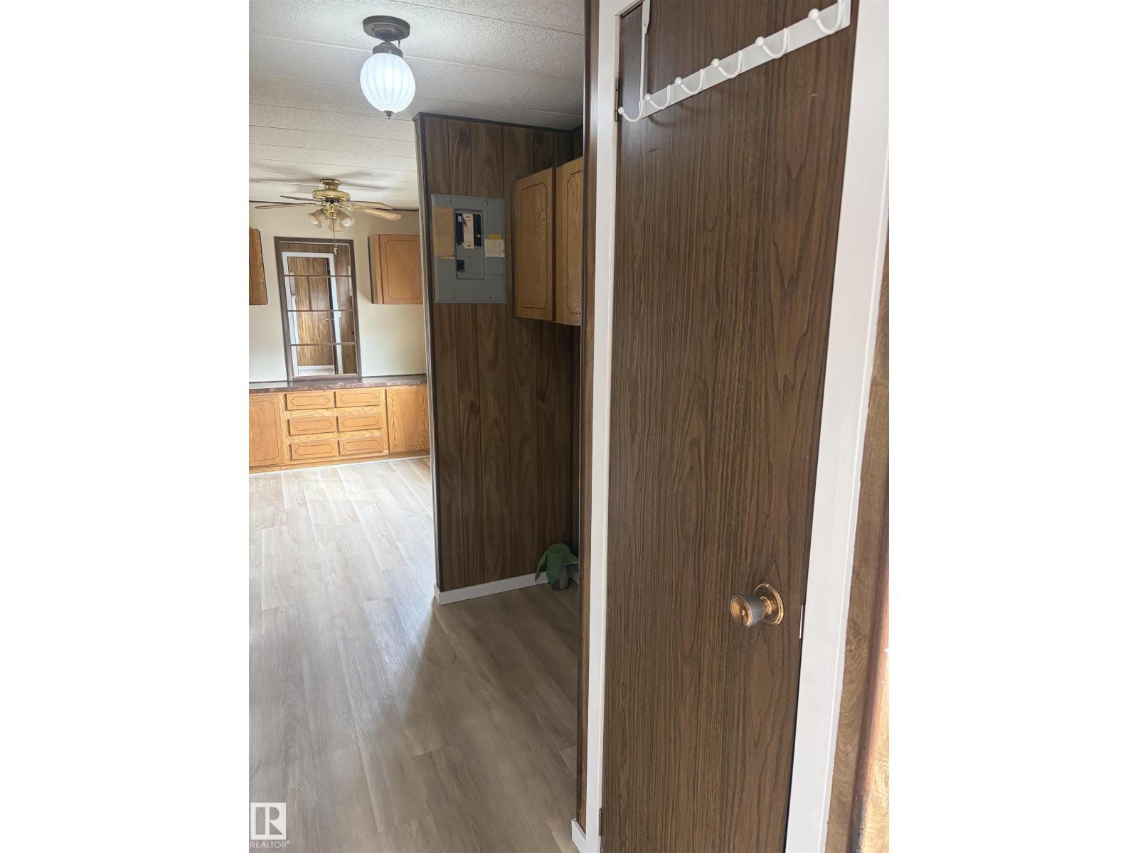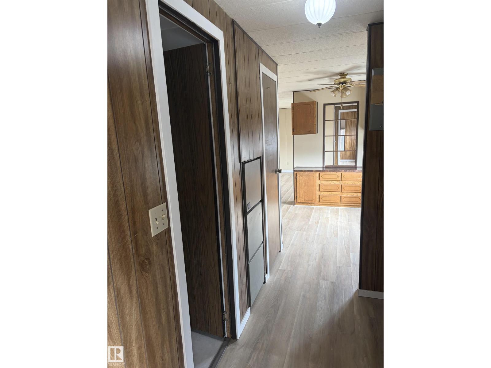 Affordable living in this mobile home in the Town of Bon Accord. Newer flooring & vinyl windows throughout, 2 bedrooms on opposite ends of the home. The primary bedroom has a 2 pc ensuite & the main bathroom has a walk-in shower. Original furnace with replaced motor-2026, new hot water on demand 2025, roof replaced 10 years ago. 2 entrances on the east side, one with a good sized deck for summer BBQ's & a parking spot & large storage shed on the lot as well. Lot fees $450/month include town water. Walking distance to main street grocery store & other local amenities. Good commuting distance to north Edmonton & the Anthony Henday Drive. (id:63190)