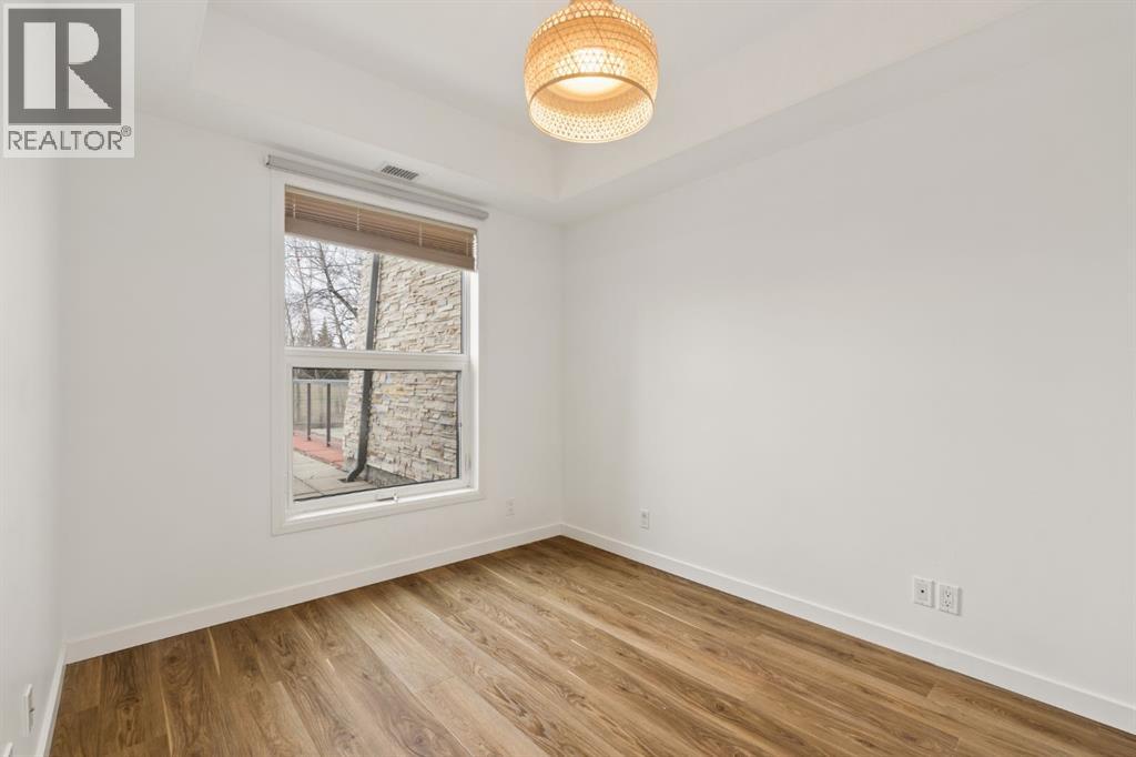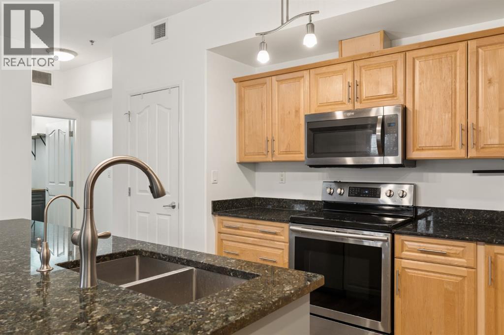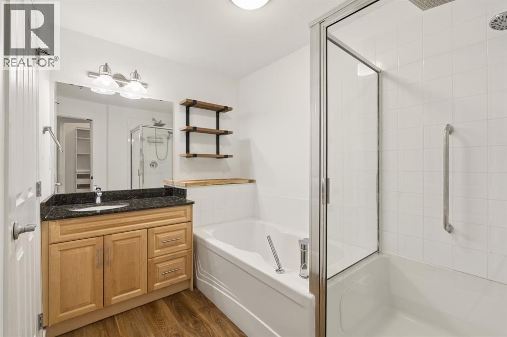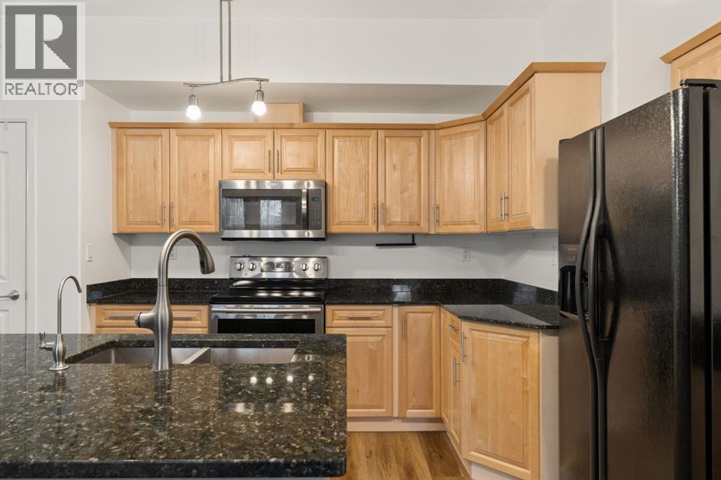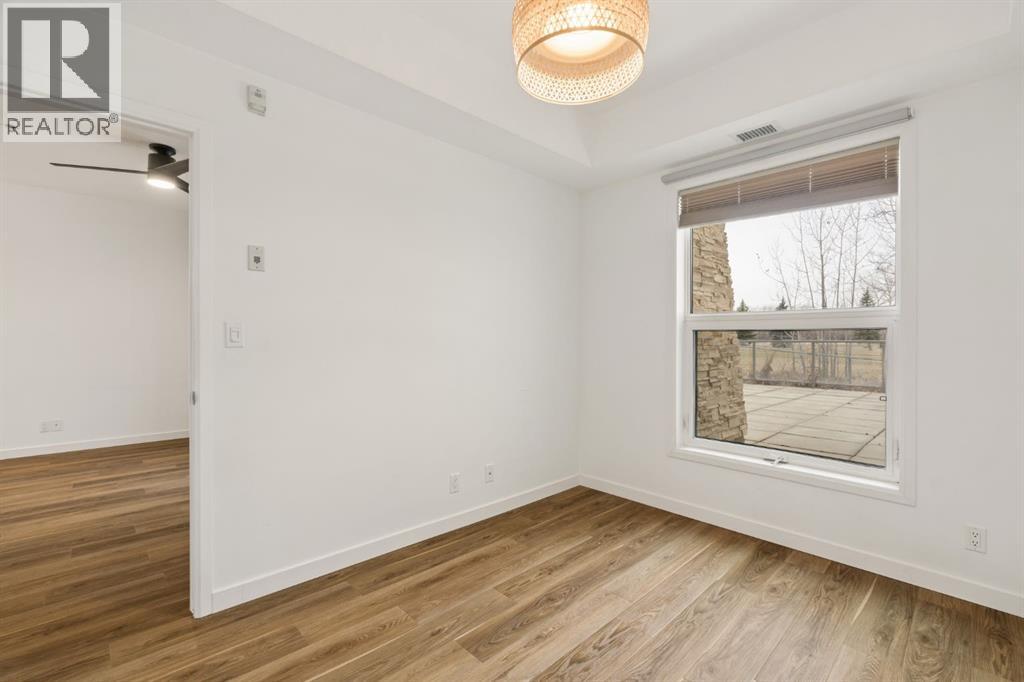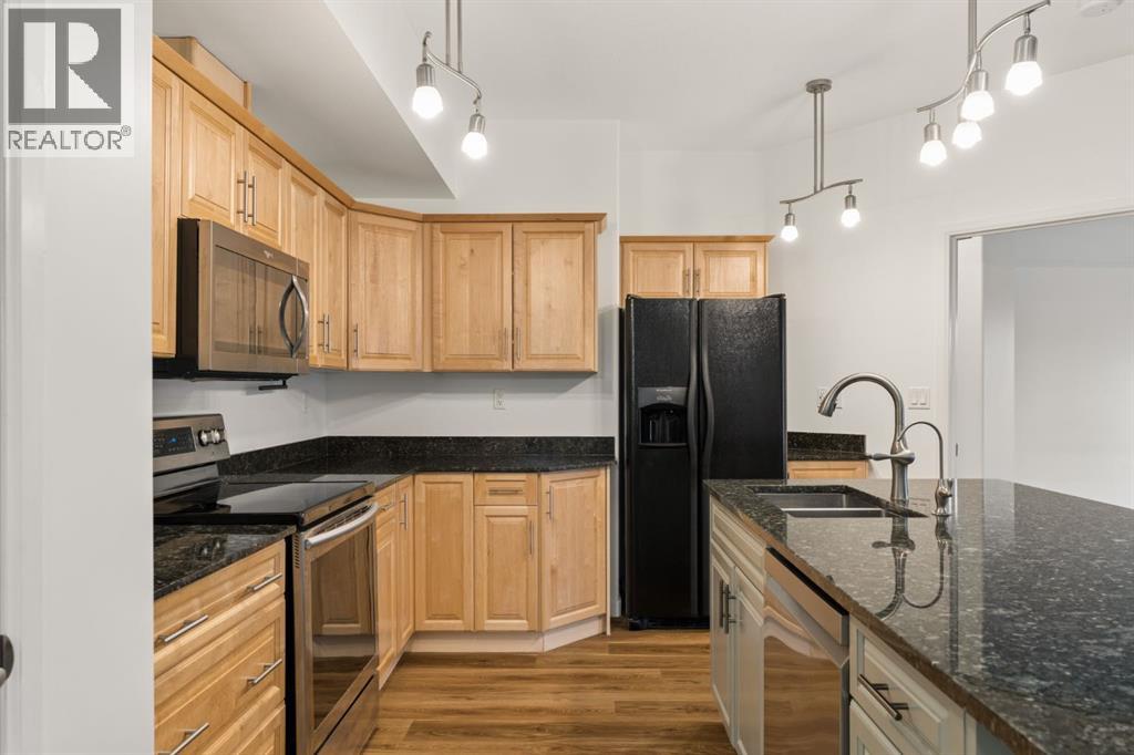 Welcome to this beautifully maintained ground-level unit backing directly onto the golf course, offering an unbeatable combination of privacy, views, and outdoor living. Featuring 2 bedrooms and 2 full bathrooms, this home is thoughtfully laid out with an open-concept design that creates a bright and inviting living space. The kitchen has been upgraded with a larger island and flows seamlessly into the dining and living areas, making it perfect for both everyday living and entertaining. Luxury vinyl plank flooring runs throughout, adding a modern touch while being both durable and easy to maintain. The unit is in immaculate condition, showing true pride of ownership. One of the standout features is the massive ground-level patio, where you can step outside and enjoy direct access to green space with peaceful golf course views—perfect for morning coffee or evening relaxation. The primary bedroom includes a full ensuite, while the second bedroom and bathroom are well-positioned for guests or additional living space. Additional conveniences include in-suite laundry and designated parking. The building features luxury amenities such as a theatre room, gym, sauna and hot tub, library and games room, party room, and car wash and ocated in a highly desirable community close to walking paths, the lake, golf course, and local amenities. This unit offers a rare opportunity to enjoy low-maintenance living with exceptional outdoor space and views. (id:63190)