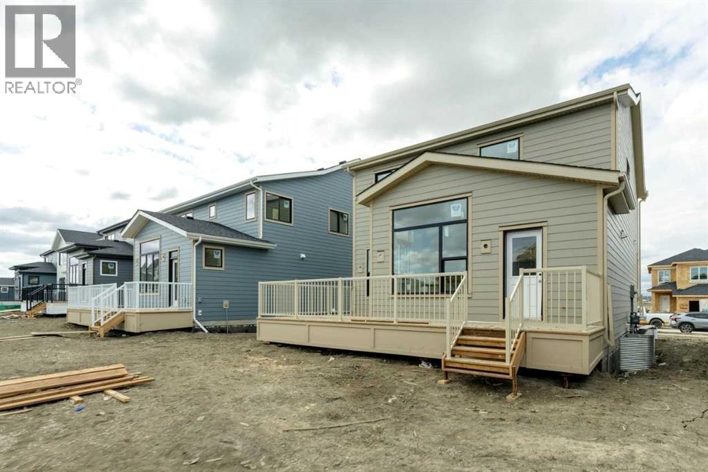 Welcome to the “Silverstone II” in the g lake community of Harmony, perfectly situated on a 40 meter long lot with a large backyard and a triple car detached garage. Enjoy outdoor living with a spacious rear deck, just steps from future beach access and nearby greenspace. Inside, the open-concept layout features a large great room with gas fireplace, a well-appointed kitchen with ample pantry space, and a main floor den—ideal for a home office. Upstairs offers a lake facing bonus room, a convenient closet with laundry chute, and three spacious bedrooms including a primary retreat with walk-in closet, soaker tub, and tile shower. Finished with stylish railing throughout, this home offers exceptional space, comfort, and lifestyle. (id:63190)