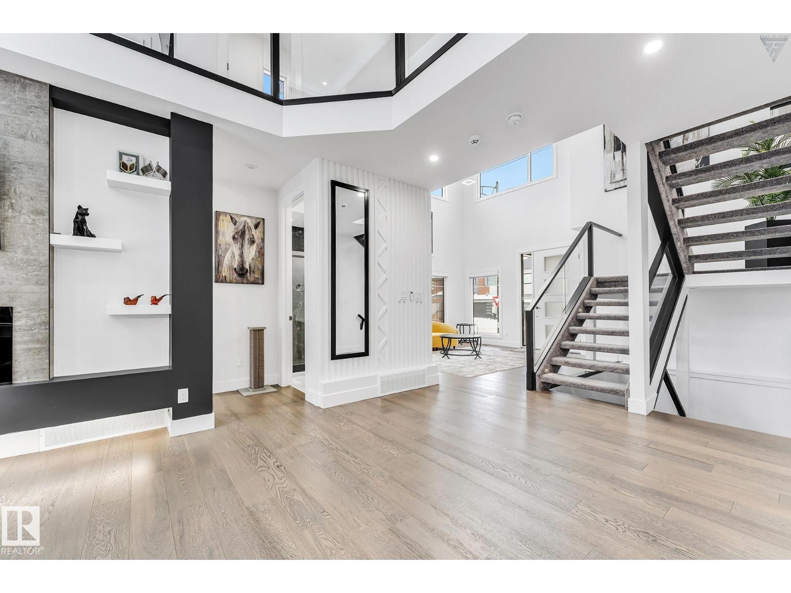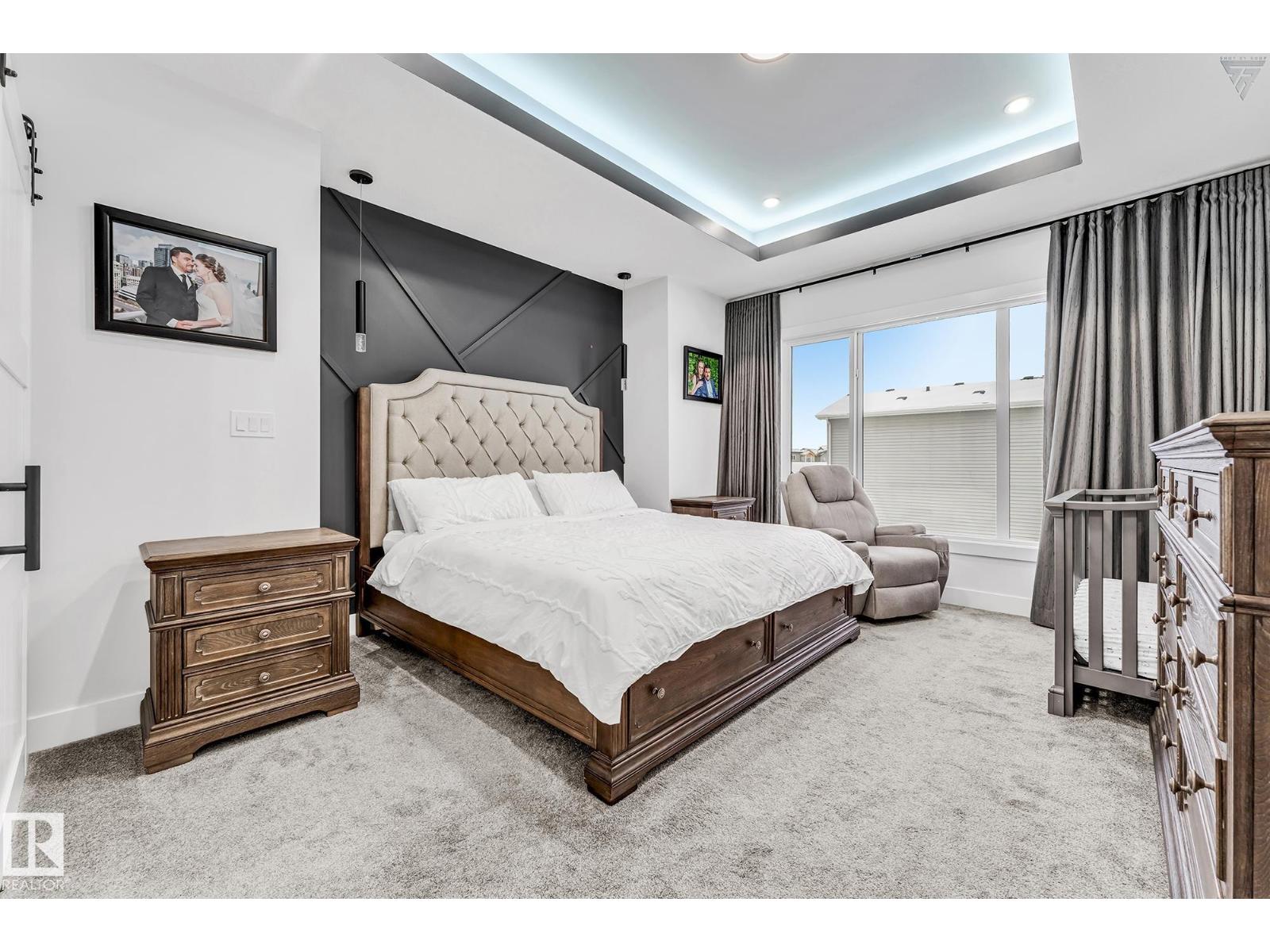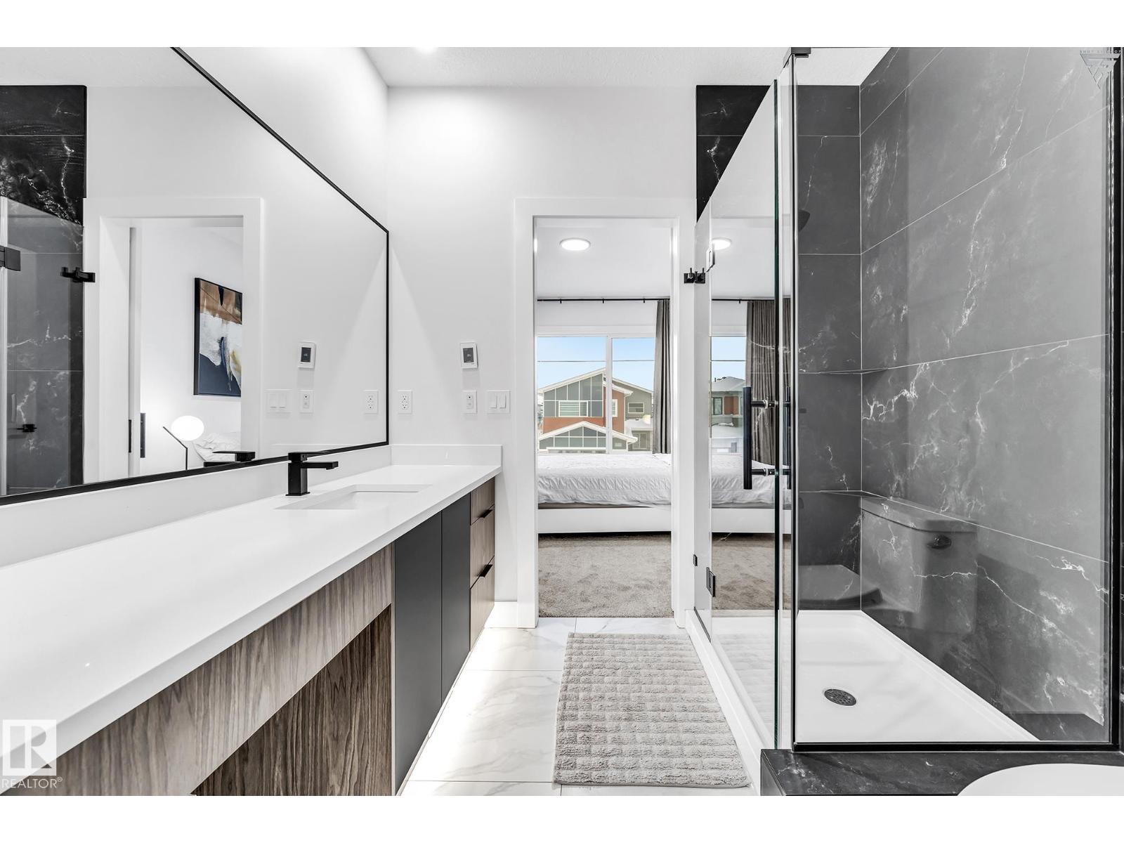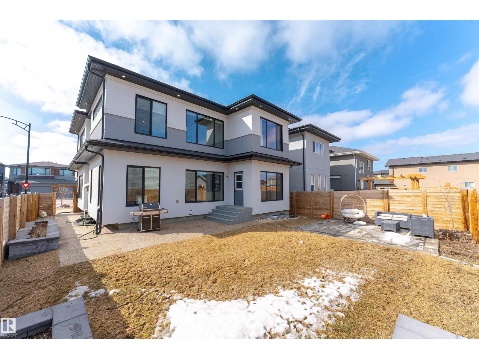 Introducing a breathtaking modern masterpiece nestled in the heart of Keswick. This beautiful ultra-modern 2900 sf house sits on a 40 ft wide corner lot with upgraded exterior stucco finishes & double car attached oversized garage. The elegant features of this house are two grand open to above ceilings in the living room and entrance with modern upgraded windows to bring sunlight throughout the day, 4 beds, 2 are primary bedrooms, & one is on main floor; 4 full baths, modern kitchen with up of line built-in SS appliance of Kitchen Aid, Spice kitchen with rough in for gas stove, Heated tiles throughout the kitchen and baths, luxurious custom showers & spa like amenities, 8’ doors, remote operated blinds, open risers on the stairs with stair lights, glass railings throughout, indent ceilings with rope lights, bonus room with feature wall and electric fire place, modern Wi-Fi connected washer and dryer upstairs, aggregate concrete pad and sidewalk with beautiful landscaping and fence. Make this house yours! (id:63190)