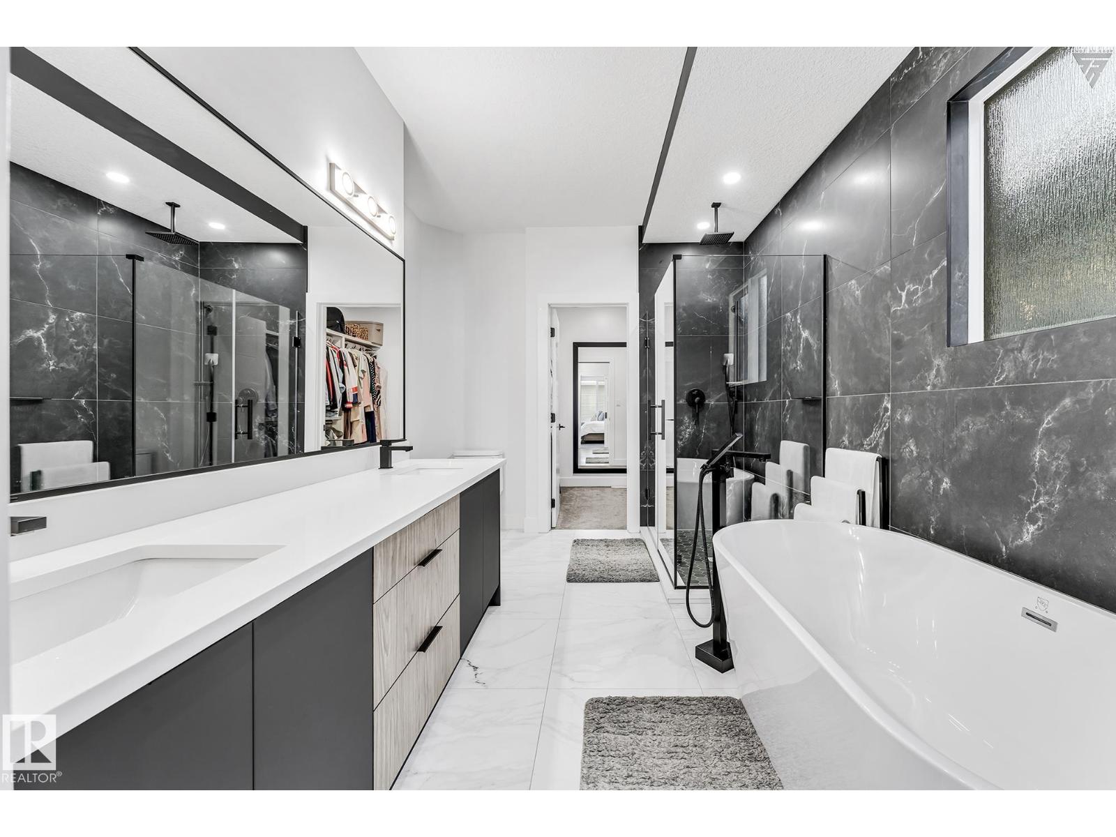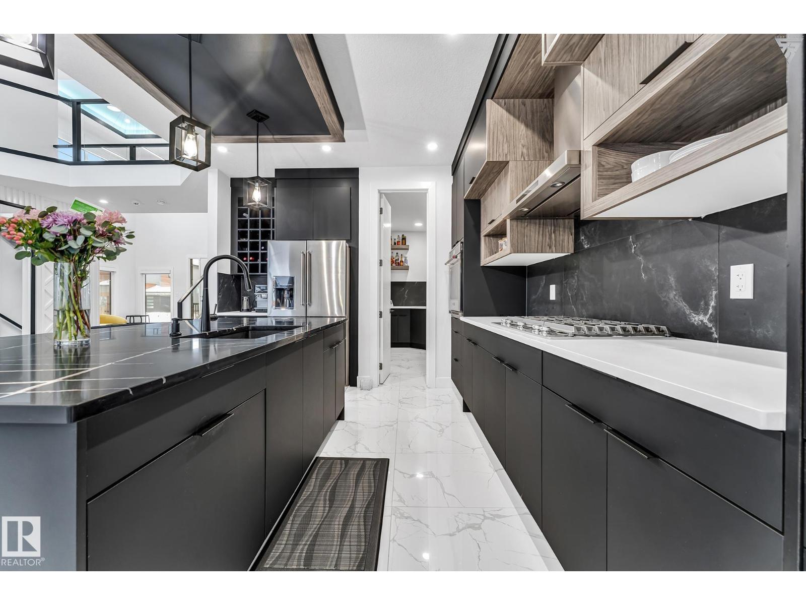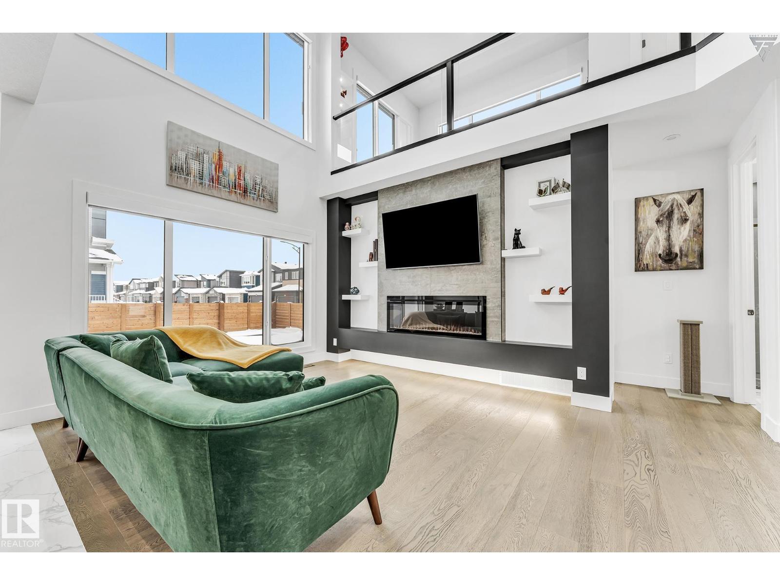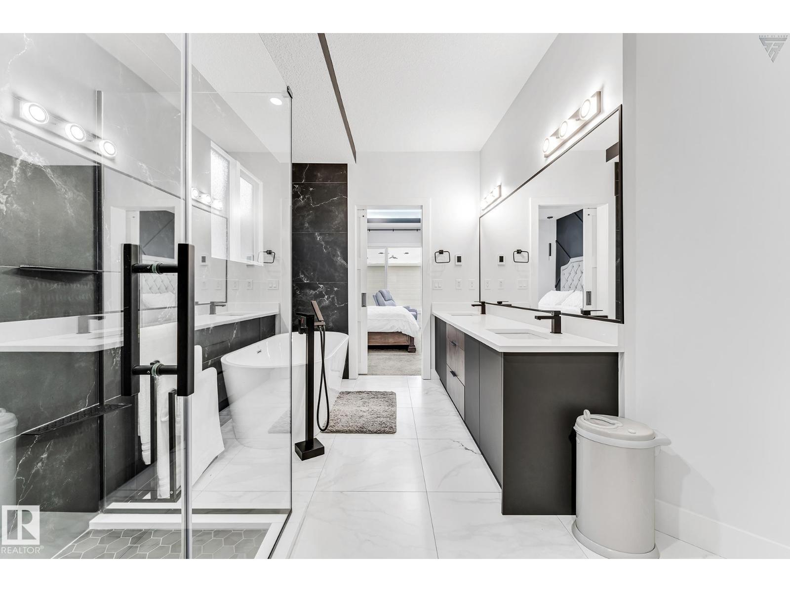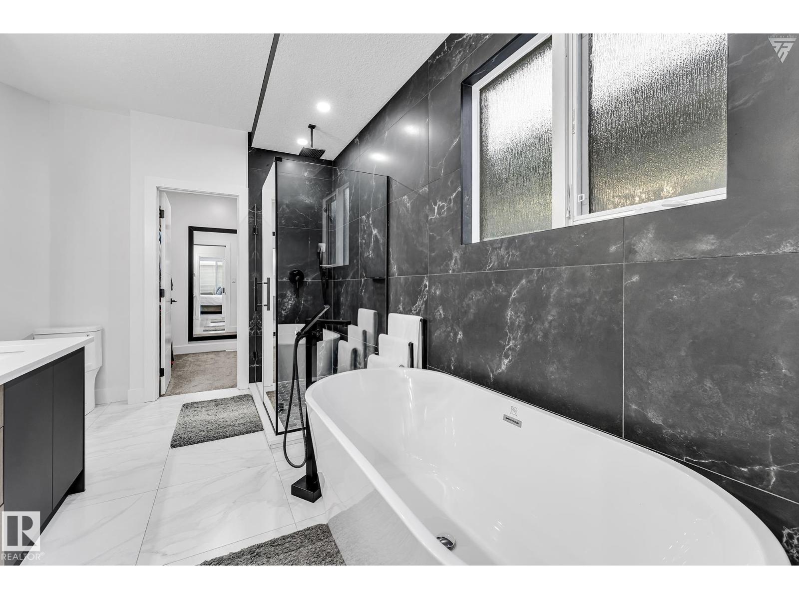 Introducing a breathtaking modern masterpiece nestled in the heart of Keswick. This beautiful ultra-modern 2900 sf house sits on a 40 ft wide corner lot with upgraded exterior stucco finishes & double car attached oversized garage. The elegant features of this house are two grand open to above ceilings in the living room and entrance with modern upgraded windows to bring sunlight throughout the day, 4 beds, 2 are primary bedrooms, & one is on main floor; 4 full baths, modern kitchen with up of line built-in SS appliance of Kitchen Aid, Spice kitchen with rough in for gas stove, Heated tiles throughout the kitchen and baths, luxurious custom showers & spa like amenities, 8’ doors, remote operated blinds, open risers on the stairs with stair lights, glass railings throughout, indent ceilings with rope lights, bonus room with feature wall and electric fire place, modern Wi-Fi connected washer and dryer upstairs, aggregate concrete pad and sidewalk with beautiful landscaping and fence. Make this house yours! (id:63190)