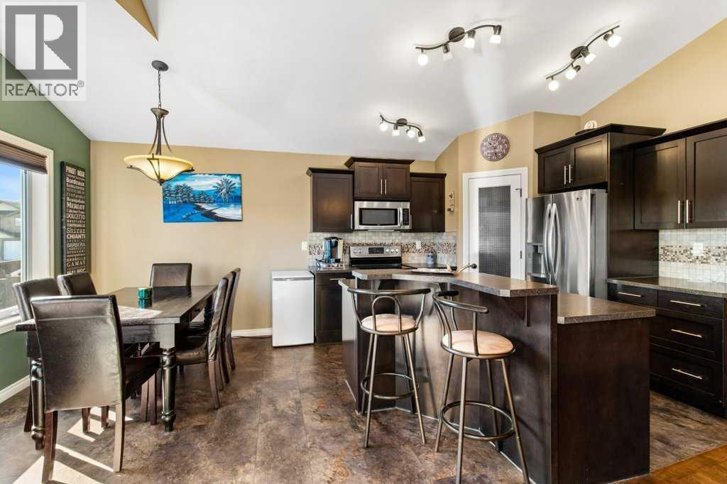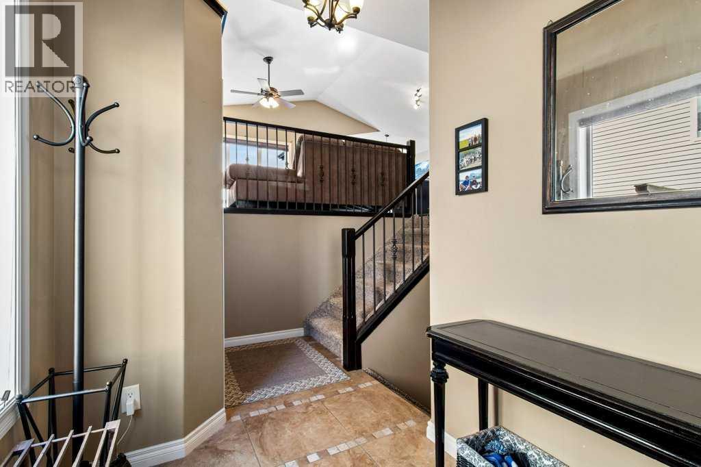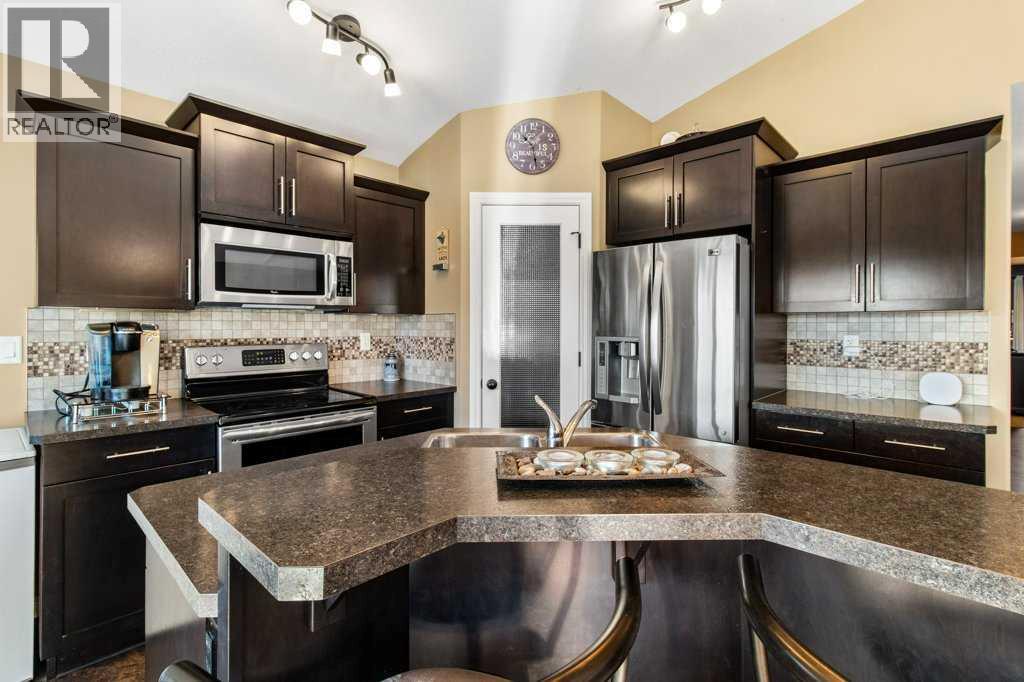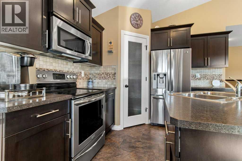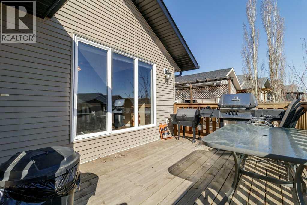 Welcome to this well maintained and original owner home in a fantastic Blackfalds location! Situated on a quiet, family-oriented street, this lovely bi-level offers convenient access to schools, parks, and all town amenities. The home features alley access, a fully fenced yard, and a large deck. Step inside to a spacious entryway with ample storage, leading up to the bright and open main floor. Here you’ll find three well appointed bedrooms, two bathrooms, and a generous living space that flows effortlessly into the kitchen and out onto the deck. High vaulted ceilings and large windows enhance the sense of space and natural light throughout. This is a wonderful opportunity to own a comfortable, functional home in a great community! (id:63190)