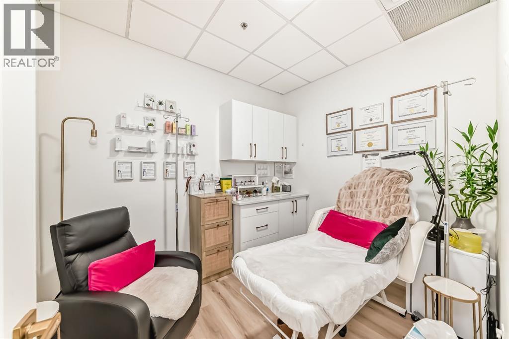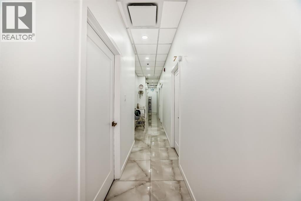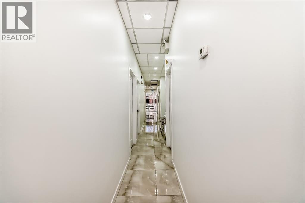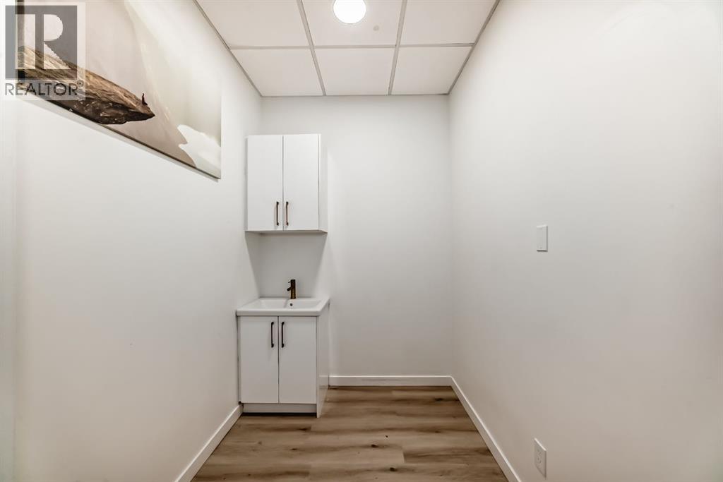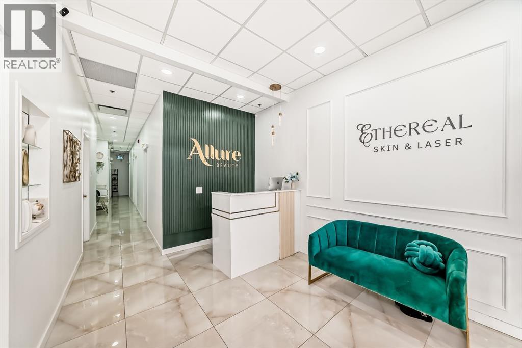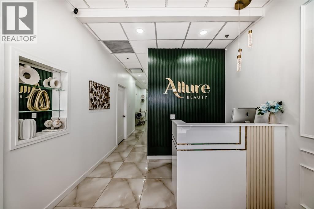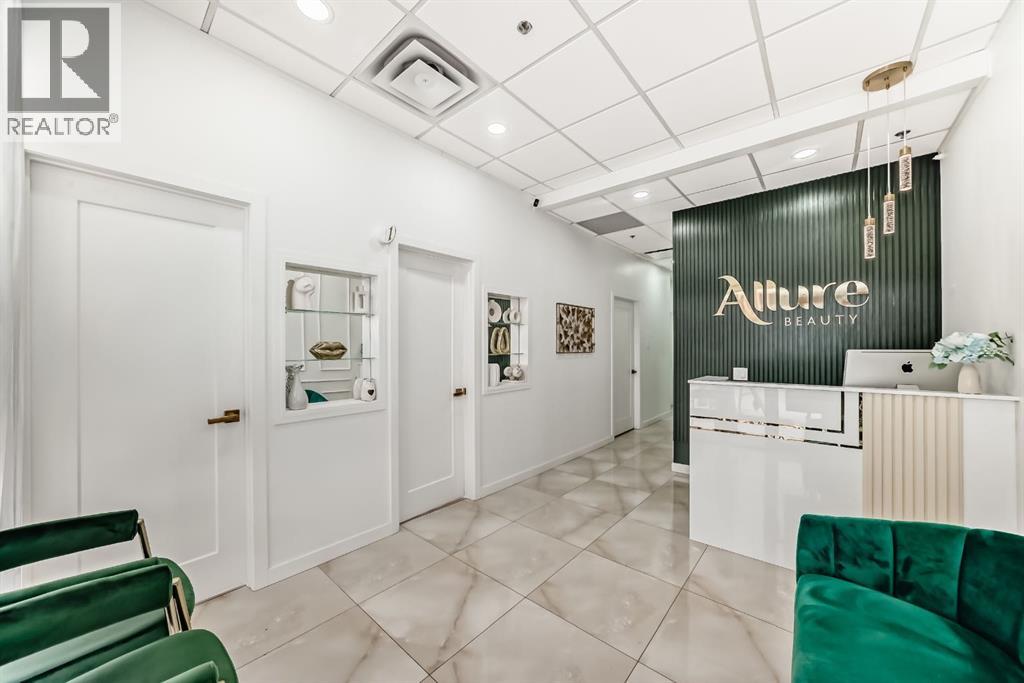 Turn-key professional commercial condominium unit with full clinical infrastructure. Currently operating as an established aesthetics clinic, this impeccably maintained 1,060 square foot suite presents a rare opportunity for medical, wellness, or high-end aesthetics users seeking a fully built-out space. Positioned along the high-exposure Centre Street NW corridor, the unit has been thoughtfully designed to support multiple practitioners while maintaining a refined, boutique atmosphere. The layout features eight private treatment rooms, each equipped with its own sink; an extensive and costly infrastructure upgrade. The space is anchored by a polished front reception and client waiting area that delivers a strong first impression. A central hallway provides efficient circulation, complemented by a private two-piece bathroom and a dedicated laundry and utility room to support daily operations. Dual access points enhance functionality, with a welcoming front entrance for clients and a separate rear exit ideal for staff and deliveries. Two assigned underground parking stalls are included, offering added convenience in this highly accessible inner-city location. This is a rare opportunity to secure a fully plumbed, high-density professional space in a prime Calgary corridor, with immediate usability and long-term flexibility. (id:63190)