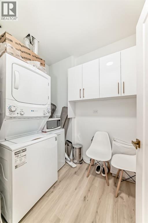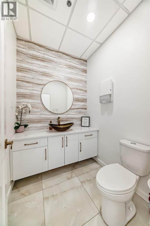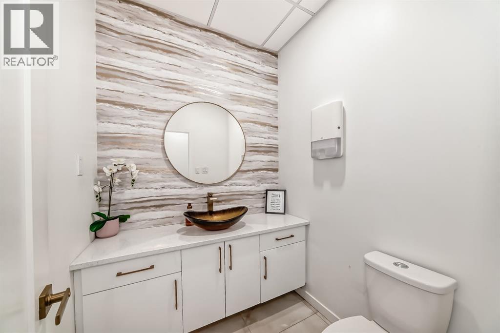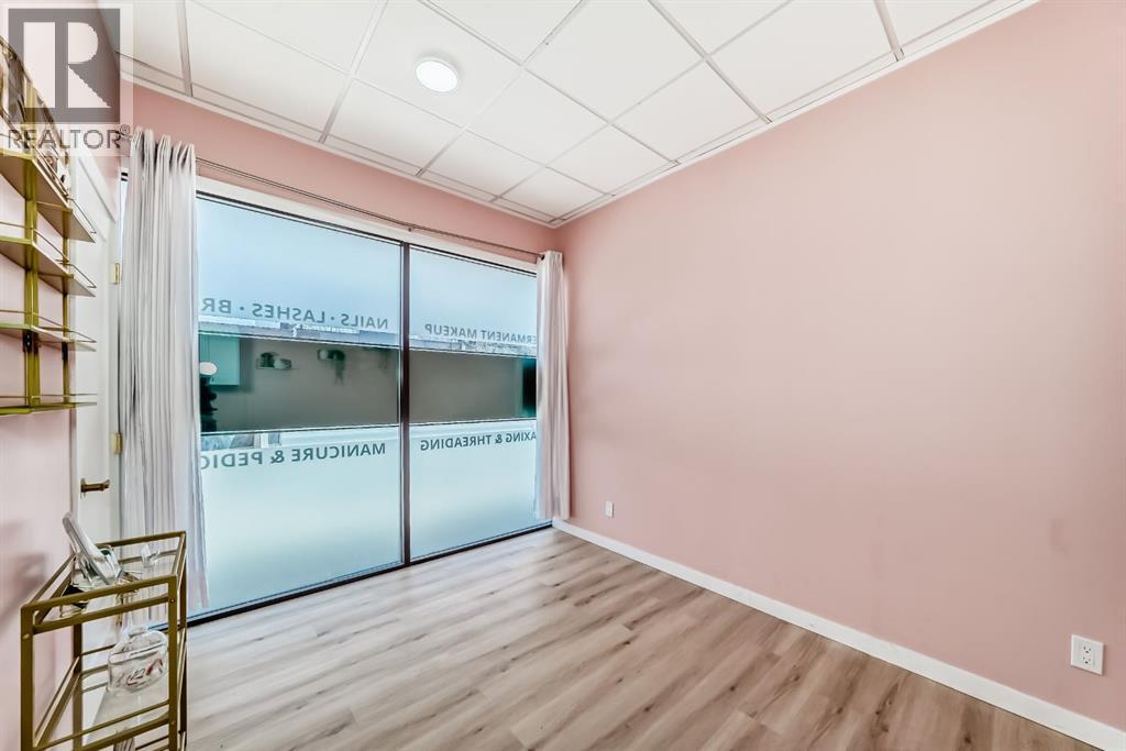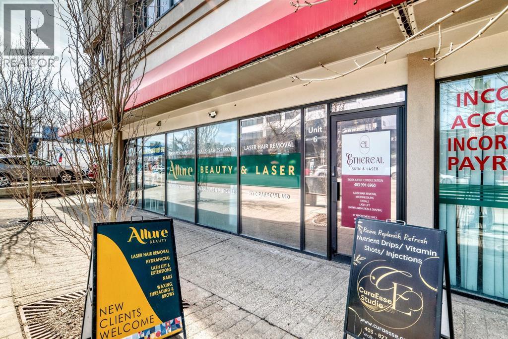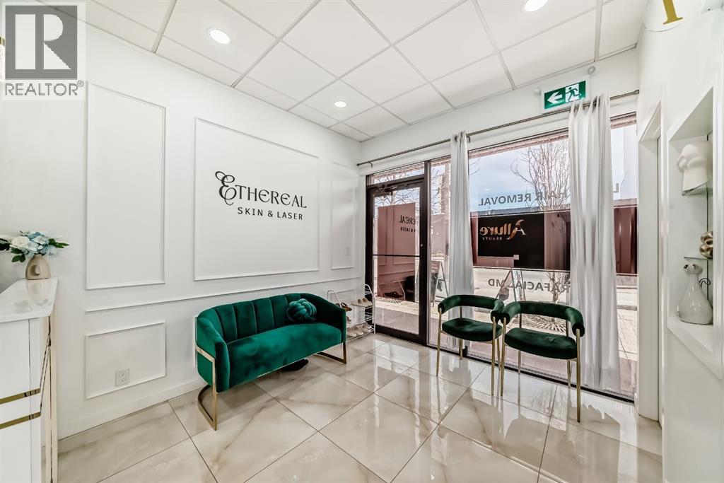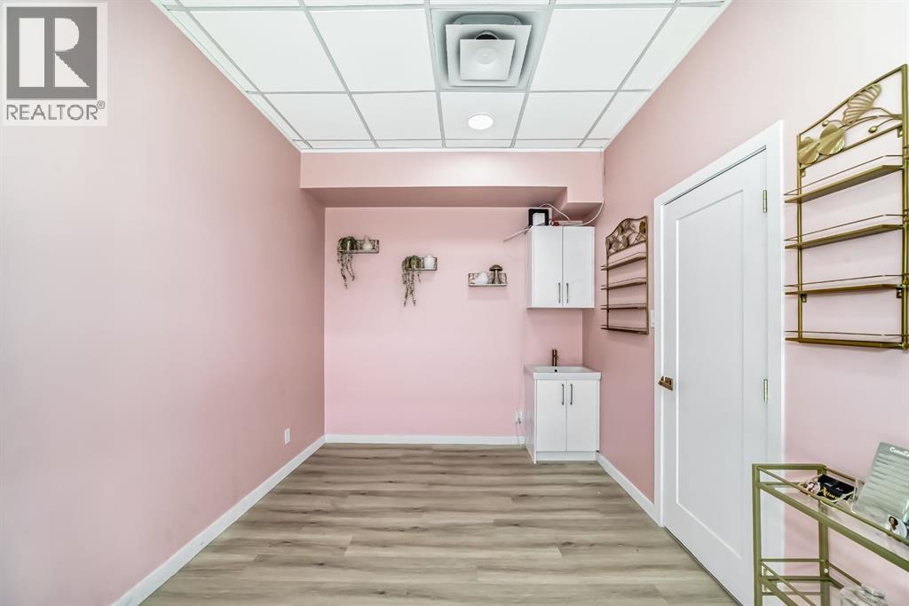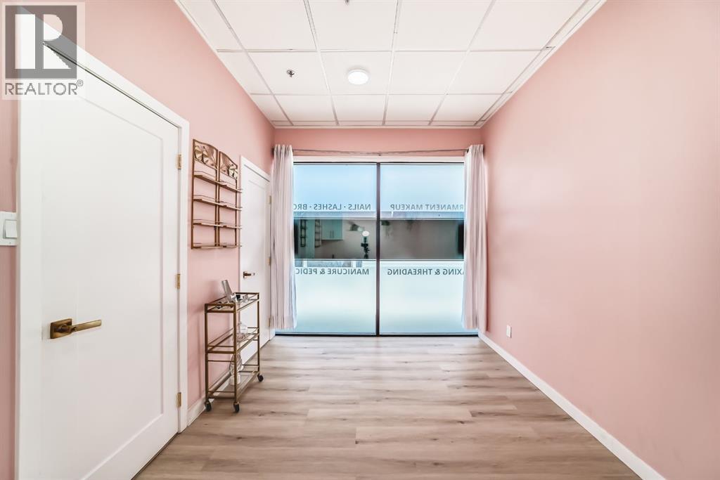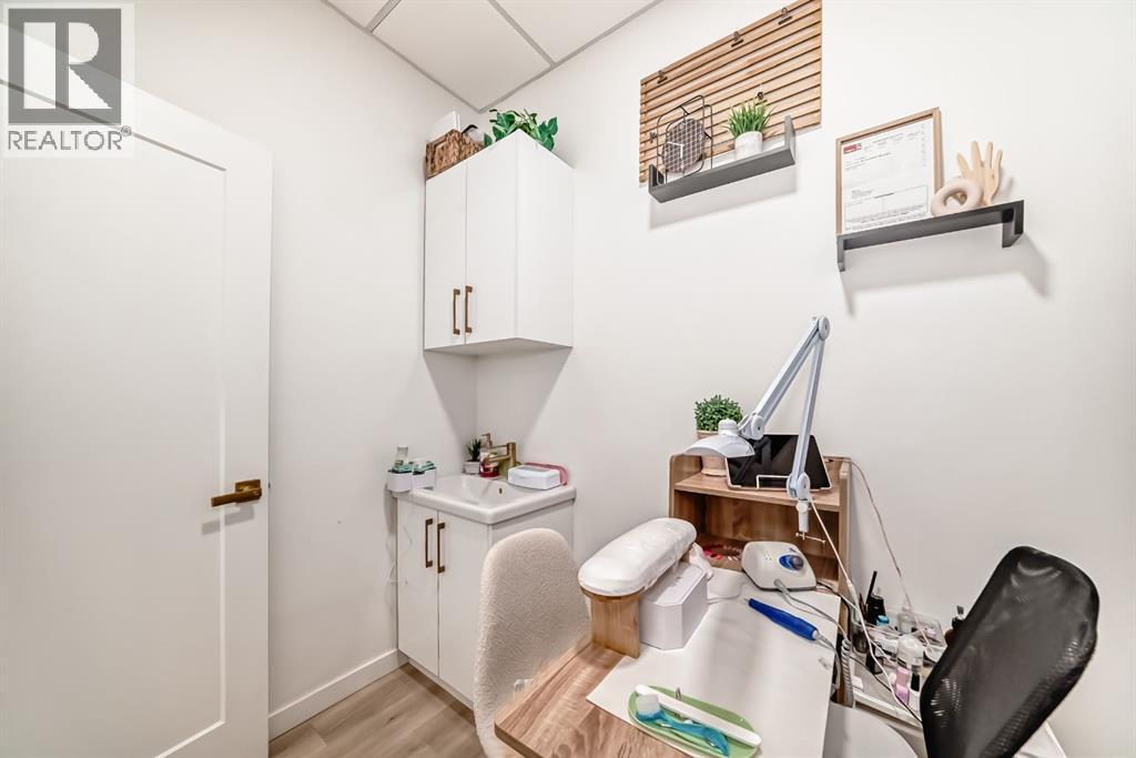 Turn-key professional commercial condominium unit with full clinical infrastructure. Currently operating as an established aesthetics clinic, this impeccably maintained 1,060 square foot suite presents a rare opportunity for medical, wellness, or high-end aesthetics users seeking a fully built-out space. Positioned along the high-exposure Centre Street NW corridor, the unit has been thoughtfully designed to support multiple practitioners while maintaining a refined, boutique atmosphere. The layout features eight private treatment rooms, each equipped with its own sink; an extensive and costly infrastructure upgrade. The space is anchored by a polished front reception and client waiting area that delivers a strong first impression. A central hallway provides efficient circulation, complemented by a private two-piece bathroom and a dedicated laundry and utility room to support daily operations. Dual access points enhance functionality, with a welcoming front entrance for clients and a separate rear exit ideal for staff and deliveries. Two assigned underground parking stalls are included, offering added convenience in this highly accessible inner-city location. This is a rare opportunity to secure a fully plumbed, high-density professional space in a prime Calgary corridor, with immediate usability and long-term flexibility. (id:63190)