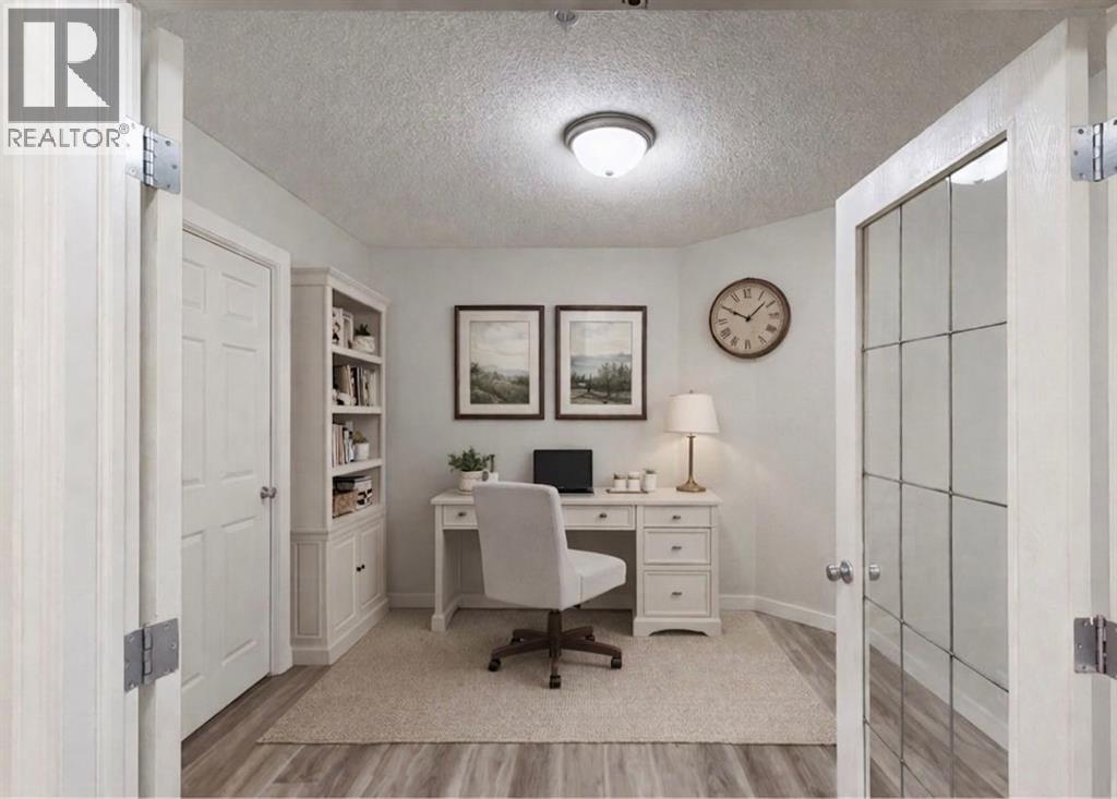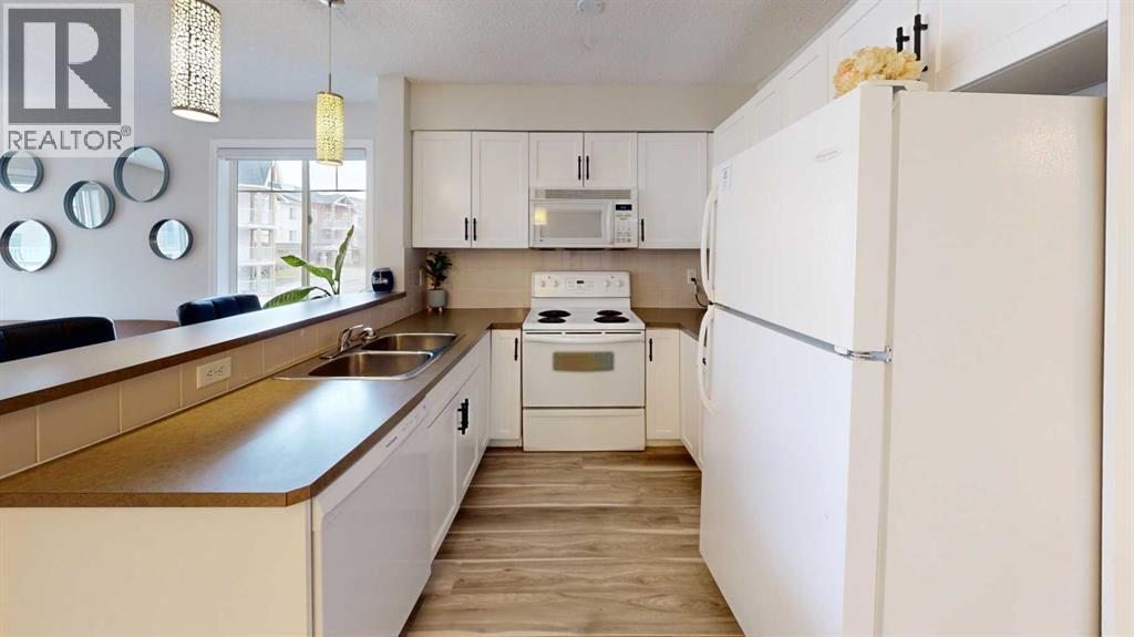 Welcome to this beautifully maintained main floor corner unit in the desirable community of Panorama! Offering 2 bedrooms plus a versatile den, this spacious open-concept layout is perfect for comfortable everyday living and entertaining alike. The modern interior features durable luxury vinyl plank flooring throughout, creating a seamless and stylish flow. The bright kitchen and living area open onto a rare wrap-around balcony, ideal for enjoying your morning coffee or unwinding in the evening. The well-appointed den provides flexible space for a home office, play room, or hobby area. Enjoy the convenience of in-unit laundry, titled underground parking, and an additional storage unit. Condo fees include all utilities, offering exceptional value and peace of mind. Located in a quiet, well-managed building just minutes from shopping, dining, parks, and transit, this home combines comfort, convenience, and lifestyle. A fantastic opportunity for first-time buyers, downsizers, or investors! (id:63190)