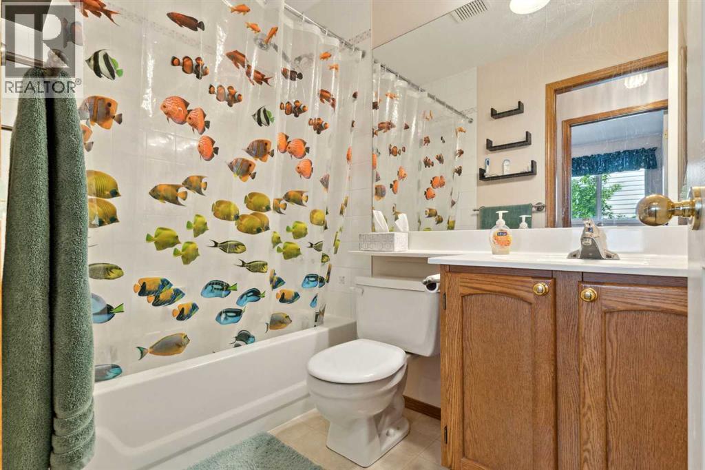 Great 3 bedroom Bilevel located on quiet street in desirable Citadel! This home is located on a well treed, fenced and landscaped lot. Nice sized living-dining room combination and has a gas fireplace and vaulted ceilings. Nice sized kitchen has a large eating area and a glass door leading to the deck that has a natural gas line for the BBQ. 3 good sized bedrooms with the master having an ensuite bath with jetted tub and separate shower. Fully developed lower level is bright and has 9 foot ceilings, a games/family area with gas fireplace, a den, 4 piece bathroom and a large laundry/storage room. Double attached garage with a workbench. Nice sized and private backyard has lots of room for the kids to play. Close to schools, parks and shopping. (id:63190)