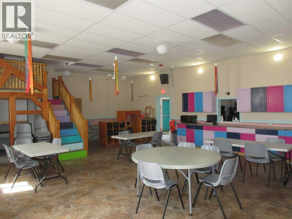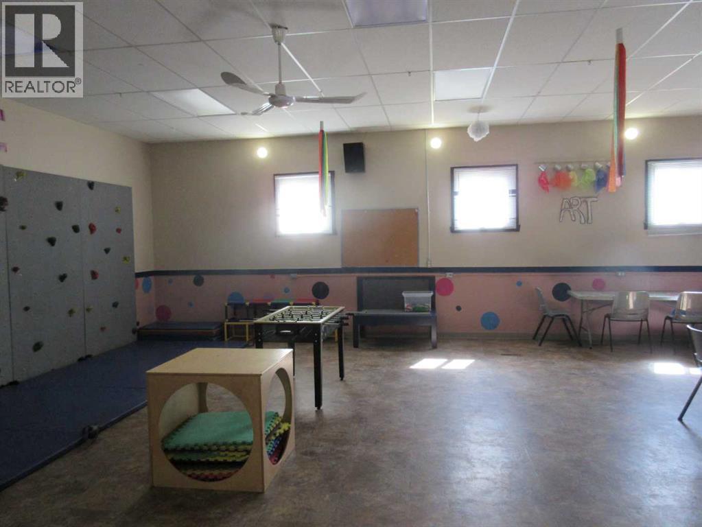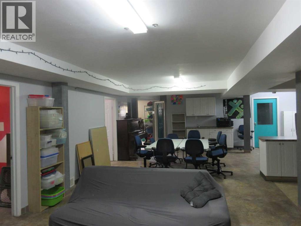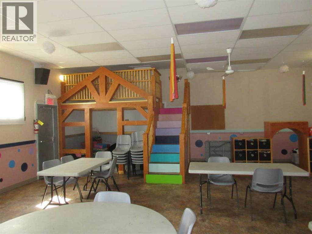 Over 1990 sq.ft. building located in the heart of downtown Rocky Mountain House. Zoned core commercial allows endless opportunities from retail, business, government services to childcare as previously used. Large open main floor lets you build your dream area. Large recreation area on main floor with two washroom facilities and small administration area. Lower level has kitchen, rec room, 2 washrooms, storage and offices. Back of the lot is fenced and includes parking pad for employees. Upgrades include newer furnace and shingles. (id:63190)