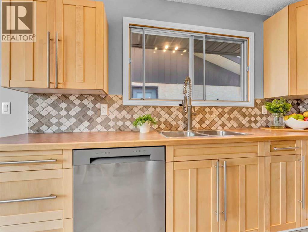 Welcome to 17 Ross Haven Court SE — a charming bungalow situated on a large corner lot in a quiet Ross Glen neighbourhood, just minutes from schools, parks, and all amenities. The main floor welcomes you with a spacious sunken living room featuring hardwood floors, a large picture window, and plenty of room for all your furniture. The updated eat-in kitchen offers maple cabinetry, tile flooring, and stainless steel appliances, including a newer fridge and dishwasher. Down the hall, you’ll find an updated 4-piece bathroom, a generous primary bedroom complete with its own 2-piece ensuite, and a second bedroom. At the back of the home, a bright and versatile sunroom provides the perfect space for a family room, guest area, or even an oversized primary retreat. The unfinished basement houses the laundry area and offers a blank canvas for future development to suit your needs. Outside, the fully fenced and landscaped yard features new sod, a recently built deck (constructed without permit), and a storage shed—ideal for enjoying the outdoors or entertaining. Additional updates include a new dryer in 2024, along with updated bathroom vanity and flooring. A great opportunity for first-time buyers, downsizers, or investors—this home combines comfort, potential, and a fantastic location. (id:63190)