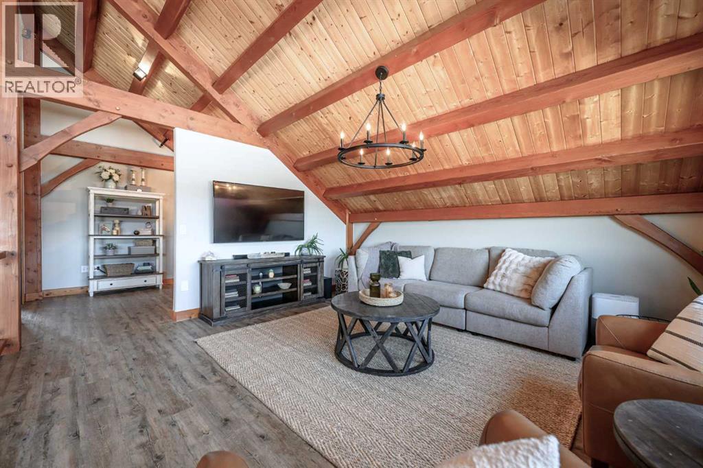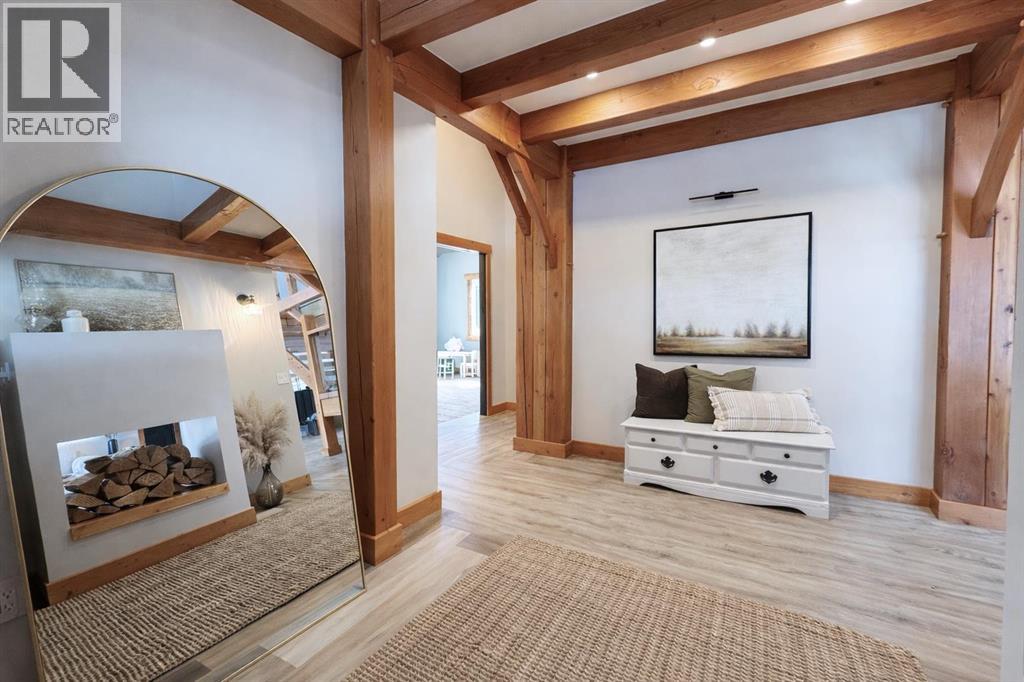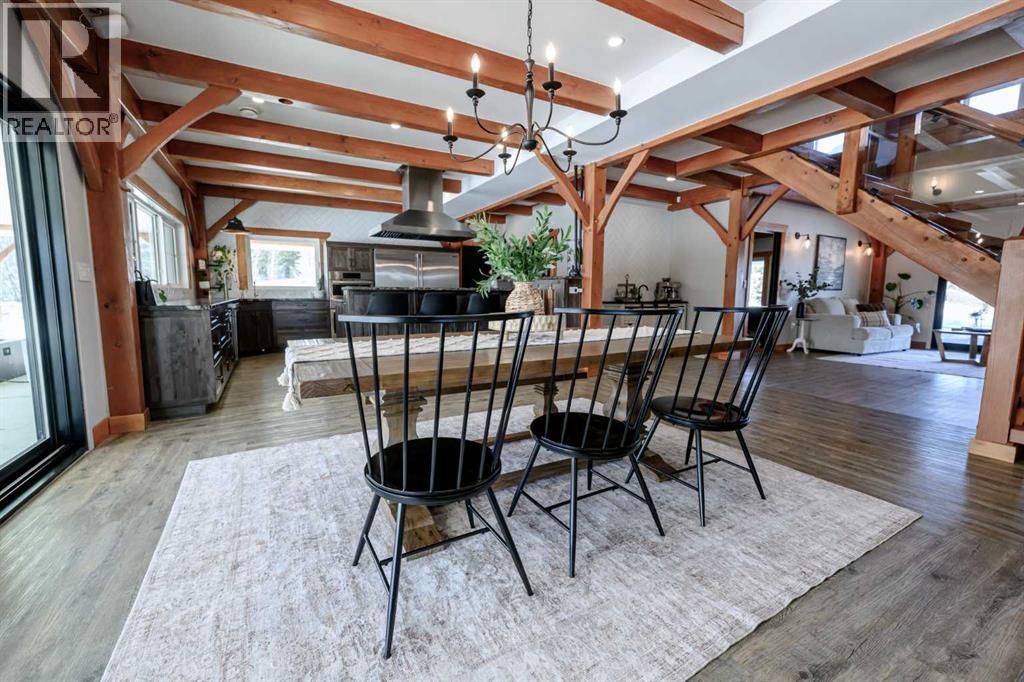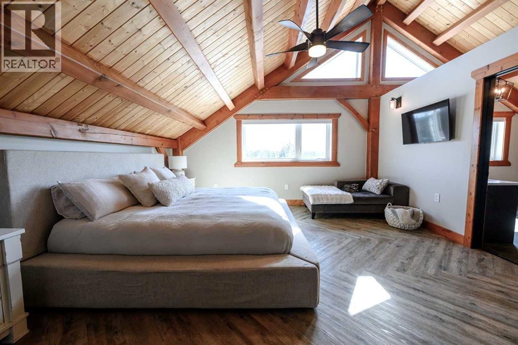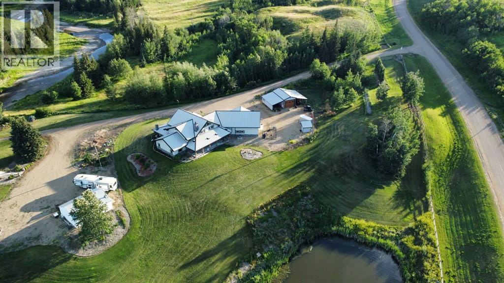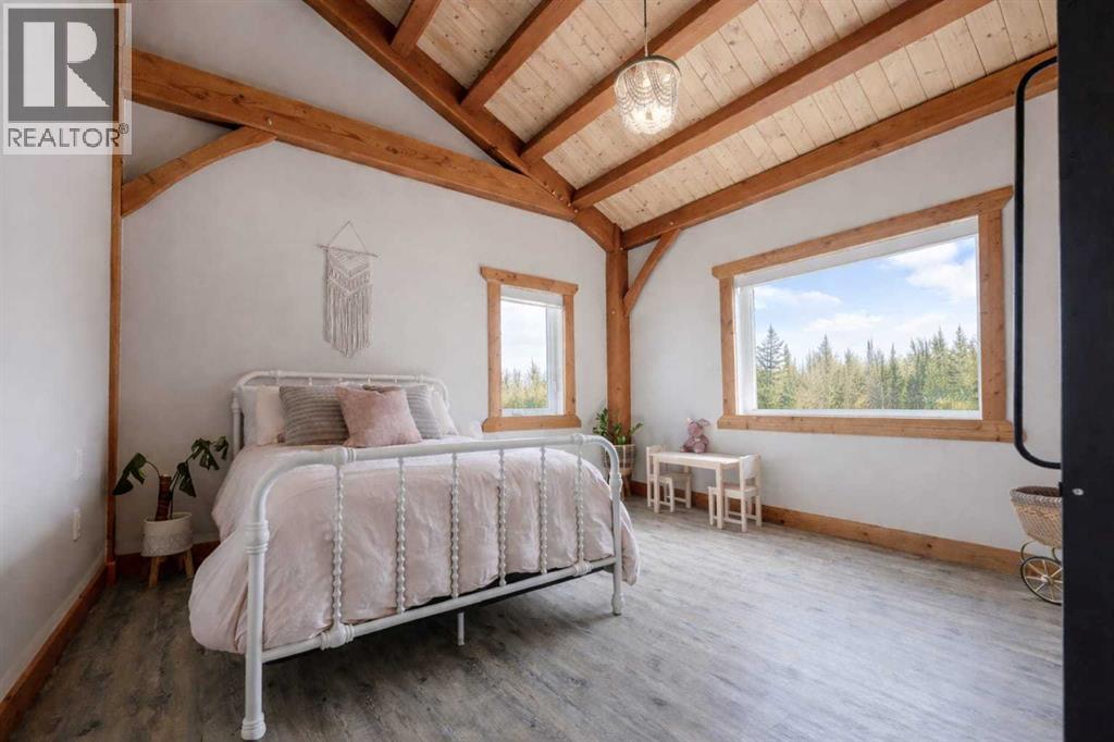 Set on 7.93 acres in a private river valley, this custom Mira Timber Frame home offers over 3,500 sq ft of thoughtfully designed living space, where craftsmanship, scale, and natural surroundings come together effortlessly.Surrounded by mature trees, open landscape, and a nearby seasonal creek, the setting feels quiet, private, and entirely your own. Expansive outdoor spaces… wraparound patios, landscaped areas, and multiple places to gather or unwind…create an immediate sense of arrival.When you step inside the home, you are met with soaring ceilings, exposed timber beams, and expansive windows that flood the home with natural light. A floor-to-ceiling stone wood-burning fireplace anchors the main living area, while the newly installed over-sized patio doors create a seamless connection to the outdoors.The kitchen is designed for both everyday living and entertaining, featuring double wall ovens, an over-sized gas cooktop, built-in double fridge, and generous prep space. Just off the kitchen, a mudroom-adjacent utility space offers additional pantry storage, a sophisticated water system, and a secondary washer and dryer.The main level includes three bedrooms… each with its own sense of character. Two include loft spaces that add flexibility and architectural interest, while the third bedroom offers convenient direct access to one of the main floor bathrooms. A second main bathroom, located across from the lofted bedrooms, has been newly renovated and features a soaker tub. Showers throughout are temperature controlled.Upstairs, a loft style family room overlooks the main living area, alongside a dedicated home office. The primary suite is a private retreat, complete with a spacious ensuite and its own laundry in a huge walk in closet.Built for long-term performance, the home features SIP panel construction, triple pane windows, and a suspended heated slab. A Viessmann boiler provides in-floor heat, complemented by a Lennox forced air system, A/C, and du al HRV units.The attached triple garage includes in-floor heat, oversized overhead doors, epoxy floors, hot and cold taps, and a rough-in for a dog wash.Outside, fenced areas, paddocks, firepit spaces, and open land offer flexibility for a variety of uses. Zoned CR-5 and set up for horses and llamas, with hot and cold water at exterior hose bibs.Then there’s the shop... a 60x80 heated Goodon shop that stands in a league of its own. Featuring radiant heat, power, its own 3,500-gallon cistern, separate sewer system, and a bathroom with laundry. The mezzanine is roughed in for a future suite or apartment. Additional structures include a detached heated garage/gym, greenhouse, and chicken coop.A property that offers both presence and possibility… you will want to experience this in person. (id:63190)