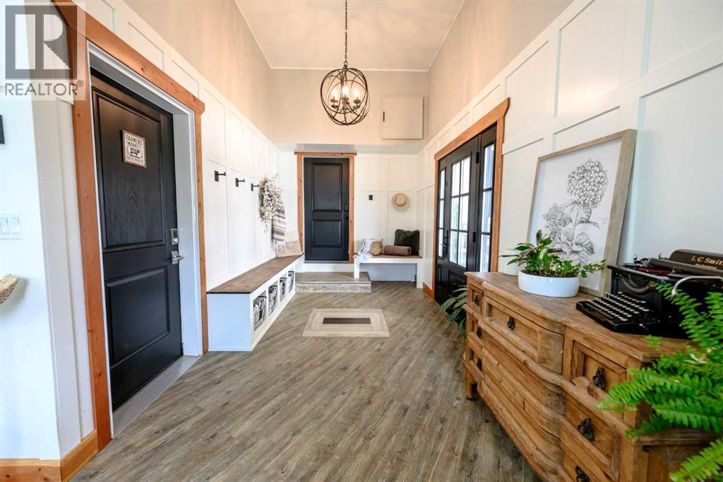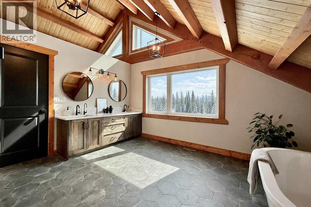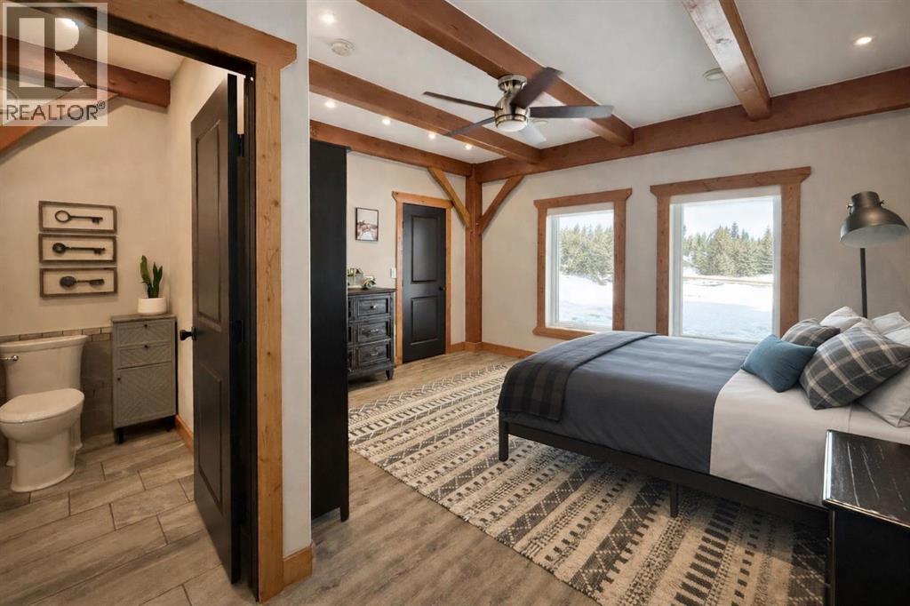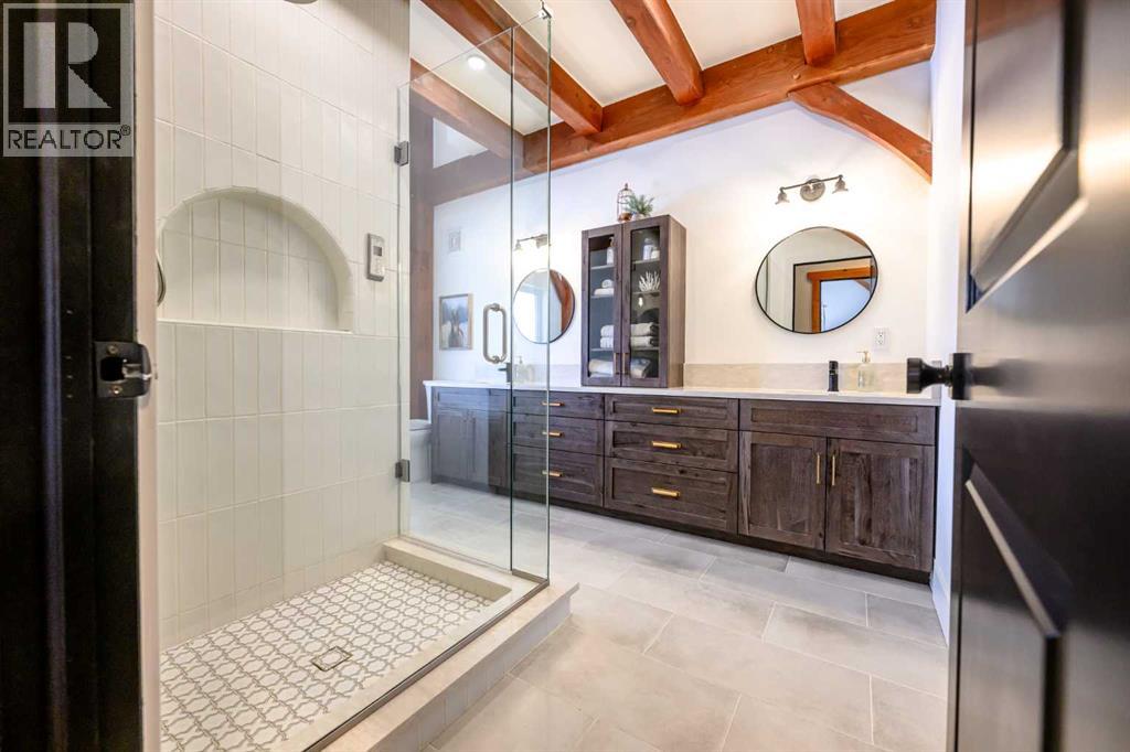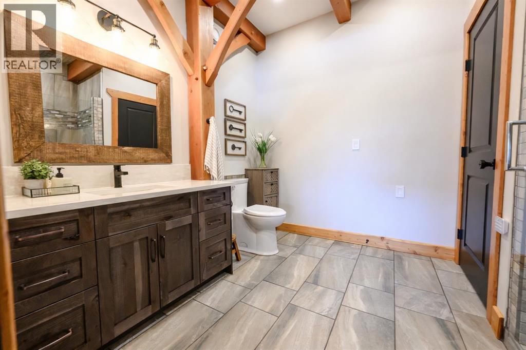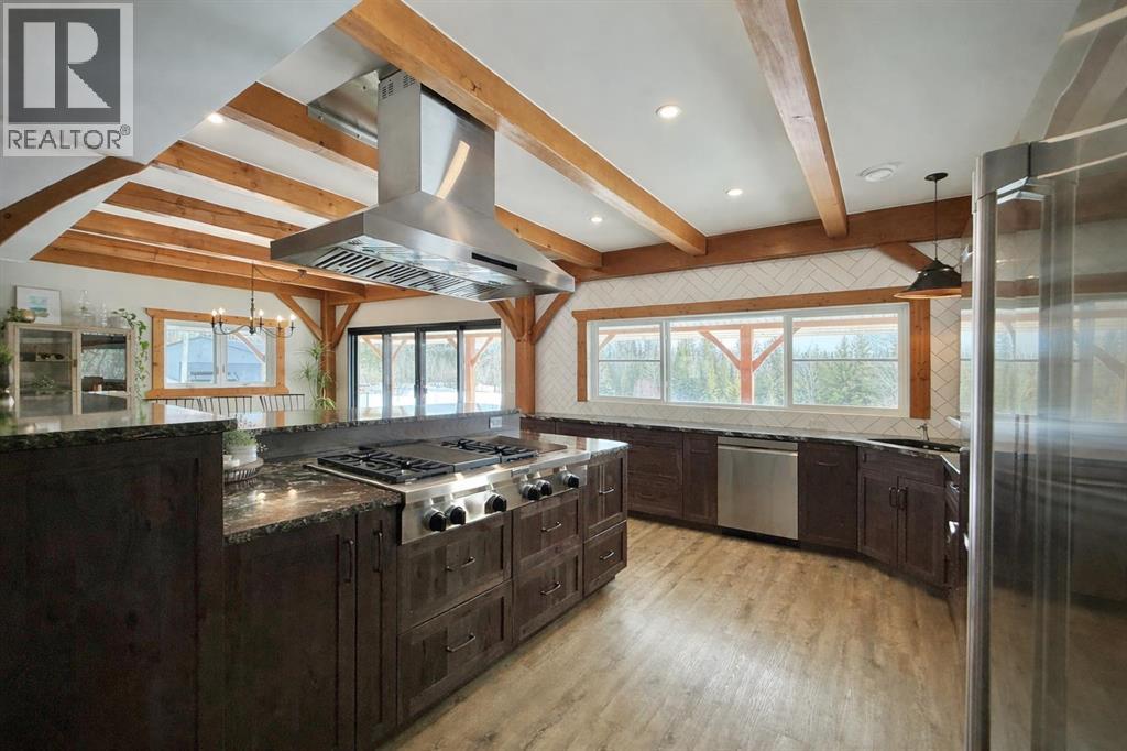 Set on 7.93 acres in a private river valley, this custom Mira Timber Frame home offers over 3,500 sq ft of thoughtfully designed living space, where craftsmanship, scale, and natural surroundings come together effortlessly.Surrounded by mature trees, open landscape, and a nearby seasonal creek, the setting feels quiet, private, and entirely your own. Expansive outdoor spaces… wraparound patios, landscaped areas, and multiple places to gather or unwind…create an immediate sense of arrival.When you step inside the home, you are met with soaring ceilings, exposed timber beams, and expansive windows that flood the home with natural light. A floor-to-ceiling stone wood-burning fireplace anchors the main living area, while the newly installed over-sized patio doors create a seamless connection to the outdoors.The kitchen is designed for both everyday living and entertaining, featuring double wall ovens, an over-sized gas cooktop, built-in double fridge, and generous prep space. Just off the kitchen, a mudroom-adjacent utility space offers additional pantry storage, a sophisticated water system, and a secondary washer and dryer.The main level includes three bedrooms… each with its own sense of character. Two include loft spaces that add flexibility and architectural interest, while the third bedroom offers convenient direct access to one of the main floor bathrooms. A second main bathroom, located across from the lofted bedrooms, has been newly renovated and features a soaker tub. Showers throughout are temperature controlled.Upstairs, a loft style family room overlooks the main living area, alongside a dedicated home office. The primary suite is a private retreat, complete with a spacious ensuite and its own laundry in a huge walk in closet.Built for long-term performance, the home features SIP panel construction, triple pane windows, and a suspended heated slab. A Viessmann boiler provides in-floor heat, complemented by a Lennox forced air system, A/C, and du al HRV units.The attached triple garage includes in-floor heat, oversized overhead doors, epoxy floors, hot and cold taps, and a rough-in for a dog wash.Outside, fenced areas, paddocks, firepit spaces, and open land offer flexibility for a variety of uses. Zoned CR-5 and set up for horses and llamas, with hot and cold water at exterior hose bibs.Then there’s the shop... a 60x80 heated Goodon shop that stands in a league of its own. Featuring radiant heat, power, its own 3,500-gallon cistern, separate sewer system, and a bathroom with laundry. The mezzanine is roughed in for a future suite or apartment. Additional structures include a detached heated garage/gym, greenhouse, and chicken coop.A property that offers both presence and possibility… you will want to experience this in person. (id:63190)