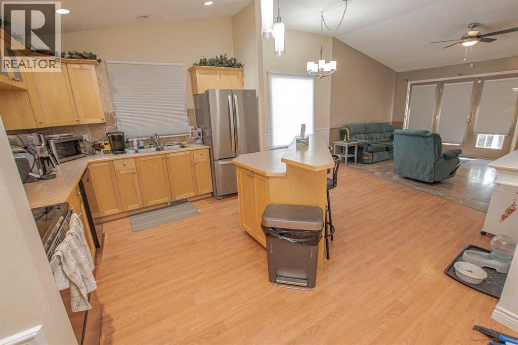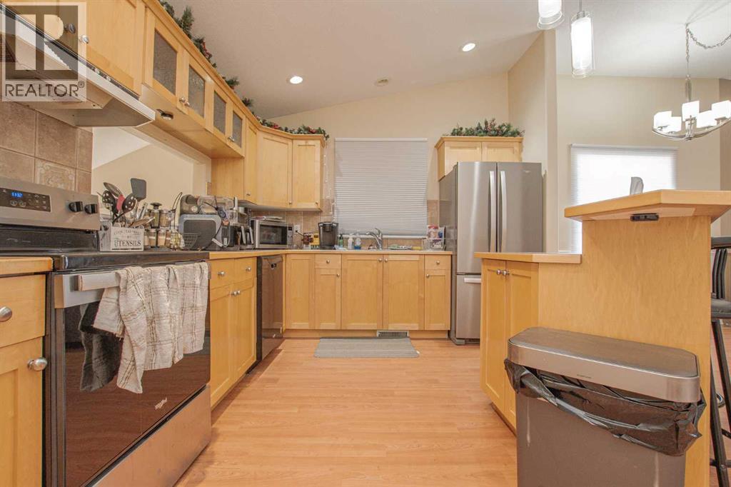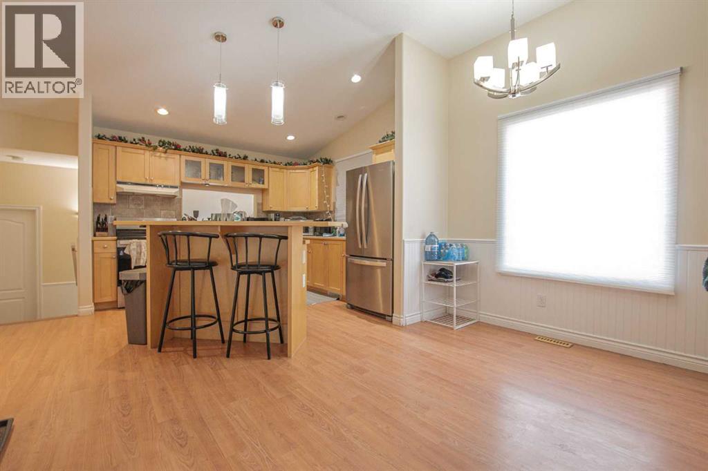 Very unique & spacious 1,202 sq ft bi-level is ideally situated with easements behind and on one side, plus a playground right outside your front door. The open-concept main floor kitchen, dining, living area is very inviting and highlighted by vaulted ceilings and a cozy fireplace. This home includes 2 bedrooms and 2 full bathrooms, with a generous primary suite complete with a large vanity with dual sinks, separate shower, and a relaxing soaker tub.The undeveloped basement with 9 ft ceilings, provides excellent potential for future expansion to suit your needs. Other features include large entrance area, main floor laundry, fenced yard with trees. 2 year old water tank, new stove in Dec/25, dishwasher & fridge 4 years, and light fixtures 4 years old. Priced below the City-assessed value—an exceptional opportunity in today’s market. Contact your REALTOR® to book your private viewing. (id:63190)