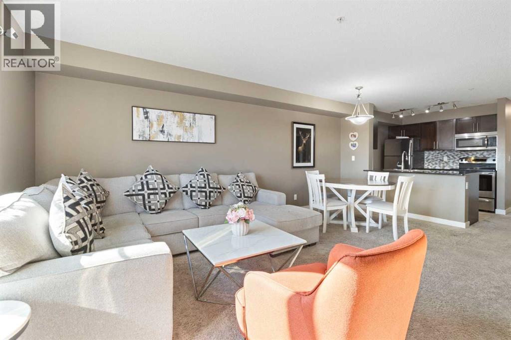 Welcome to this beautifully maintained condo in the vibrant Saddle Ridge community!This thoughtfully designed 1-bedroom + den unit offers a flexible layout with a den spacious enough for a second bedroom, plus in-suite laundry for everyday convenience.The open-concept kitchen features sleek quartz countertops and modern stainless steel appliances, opening seamlessly into a bright living area. Step outside to your sunny balcony and enjoy peaceful views over Taralake Park, the pond, and lush greenery — your private retreat for morning coffee or evening relaxation.Move-in ready with added value: The sale includes a nearly new (1-year-old) sectional couch, dining table, bed with mattress, and TV console — this condo comes fully furnished and renter-ready!Ideally located steps from shopping centres, grocery stores, the Genesis Centre, LRT, and transit, everything you need is right at your doorstep. Low condo fees include heat and water, keeping costs predictable and affordable.Whether you're a first-time buyer, downsizer, or savvy investor, this unit delivers comfort, convenience, and strong income potential at a price cheaper than renting.Don't miss out — contact your favourite REALTOR® today to schedule a viewing! (id:63190)