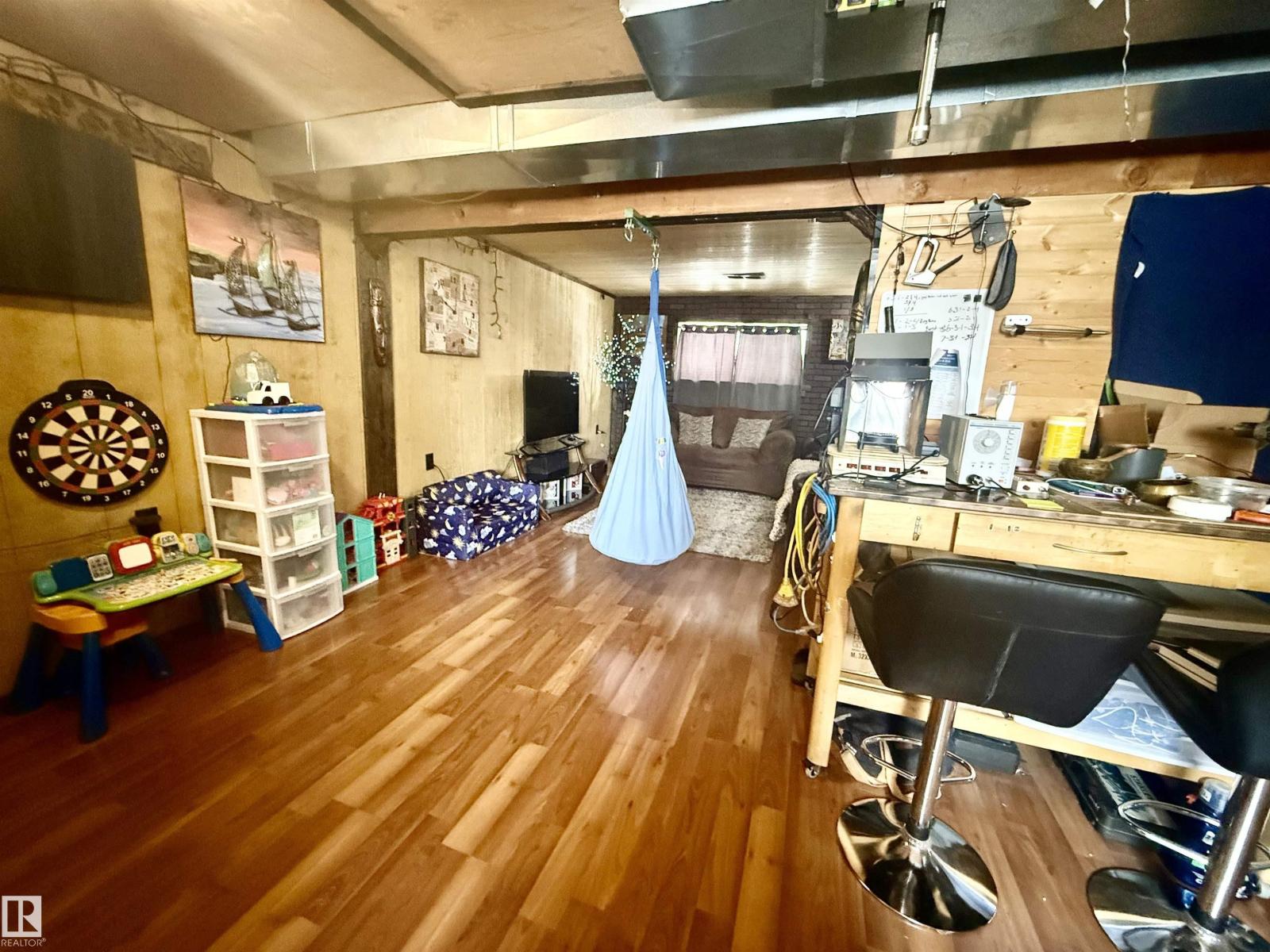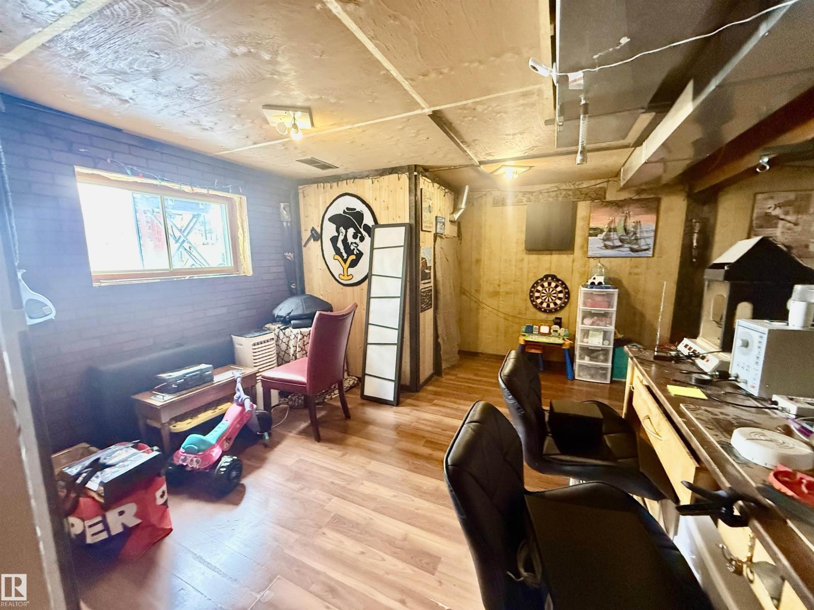 This is a well-groomed bi-level single family house with a large backyard, two bedrooms on the main floor, 2 bathrooms in total, a decent living room with large windows taking in plentiful sunshine, a spacious dining room and kitchen harmoniously blended together. The basement is fully finished with one bedroom, a large living and function room. Plentiful parking space is at the back on a paved concrete pad that can accommodate four cars and a trailer. You can see a large private deck through the patio door into the backyard, enjoying your summer hanging out and BBQ. The neighborhood is quiet and convenient, close to schools, parks, transport and major artery roads. It presents great value for your own living or for income generation. Come take a look and you wont be disappointed. (id:63190)