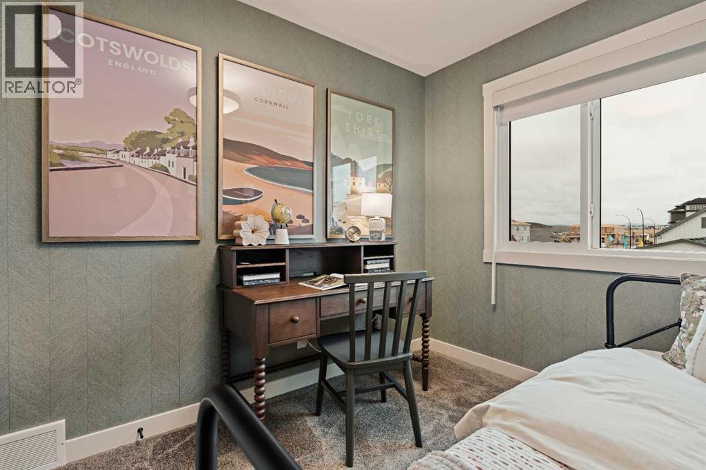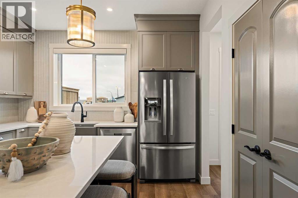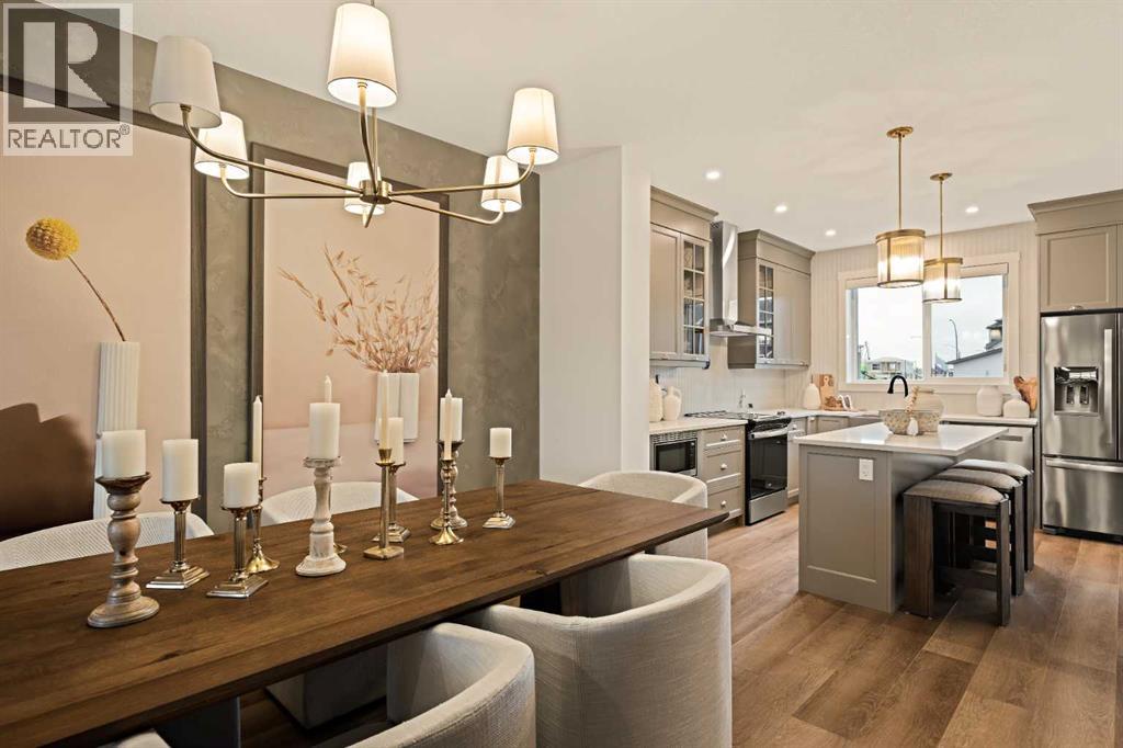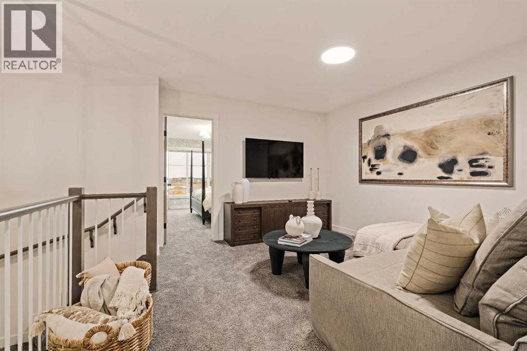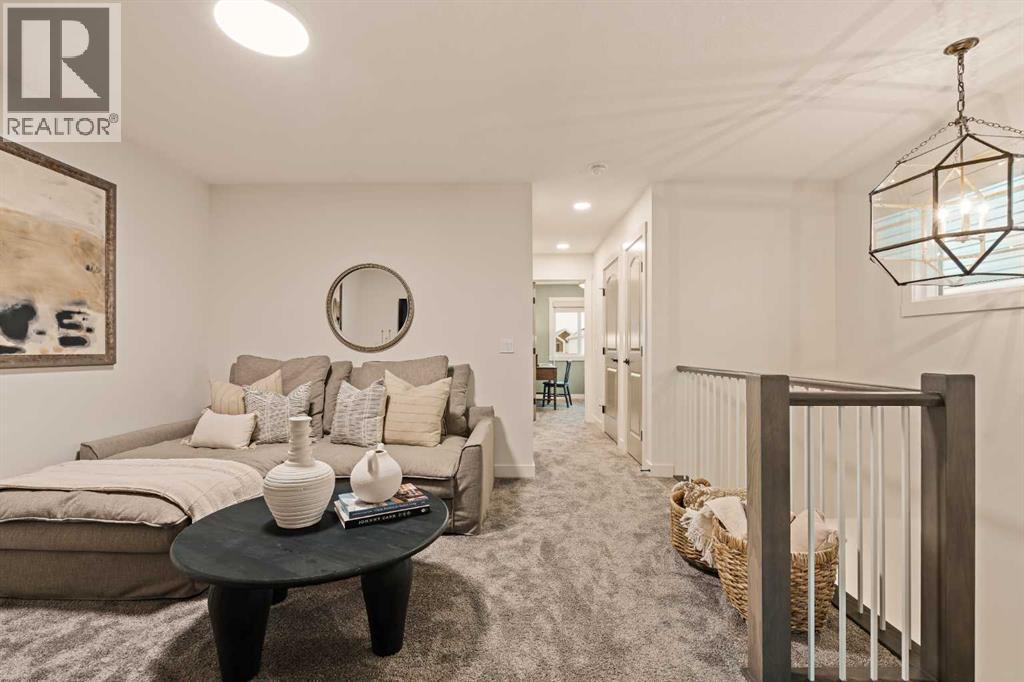Welcome to 193 Silver Spruce Road SW - a beautifully designed Alder Prairie 2 model by Brookfield Residential, located in the desirable community of Silver Spruce in Silverado. Offering over 1,600 sq. ft. of thoughtfully planned living space above grade, this 3-bedroom, 2.5-bathroom duplex combines modern design, everyday comfort, and future flexibility - perfect for families, first-time buyers, or investors alike. Step inside to a bright and inviting main floor, where the open-concept layout seamlessly connects the kitchen, dining, and living spaces. The upgraded kitchen is the heart of the home, featuring full-height cabinetry, a chimney-style hood fan, electric range, upgraded refrigerator, and a stylish undermount Silgranit sink with polished chrome faucet. Designer 3CM quartz countertops and knockdown ceilings throughout add a refined, modern touch, while the layout is ideal for both entertaining and everyday living. A functional flow leads to the rear deck, complete with a gas line for your BBQ - perfect for extending your living space outdoors. On the upper level, a central bonus room with elegant spindle railing creates a versatile living space while thoughtfully separating the primary retreat from the secondary bedrooms. The primary suite offers a walk-in closet and a well-appointed ensuite featuring dual sinks and a tiled shower with an acrylic base. Two additional bedrooms, a full bathroom, and a convenient upper-level laundry area - round out the upper floor. The undeveloped sunshine basement offers exceptional potential, with direct access via side-entrance and suite rough-ins already in place - suite development is subject to local municipality approval. Whether you envision additional living space, multi-generational living, or a future income-generating opportunity (subject to approvals), this lower level provides incredible flexibility. Outside, enjoy a 10x10 rear deck and a double gravel parking pad, with room for future garage development. Nestled in the rolling hills of southwest Calgary, Silver Spruce is a hidden gem that offers the perfect balance of natural beauty and urban convenience. With scenic surroundings, a welcoming community feel, and close proximity to shopping, schools, and major roadways, this is a place you’ll be proud to call home. *Please note: Property is under construction and photos are from a show home and may not reflect the exact finishes of the property for sale. (id:63190)