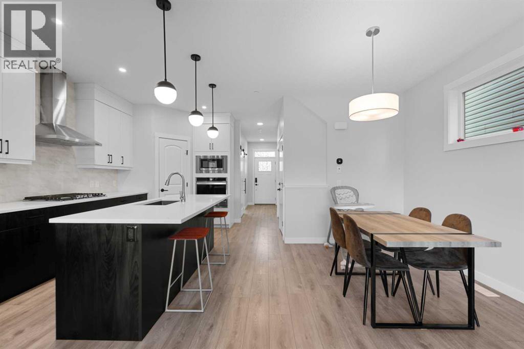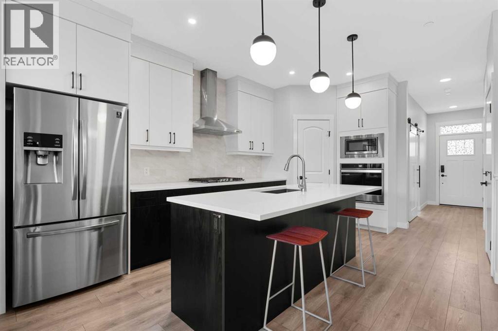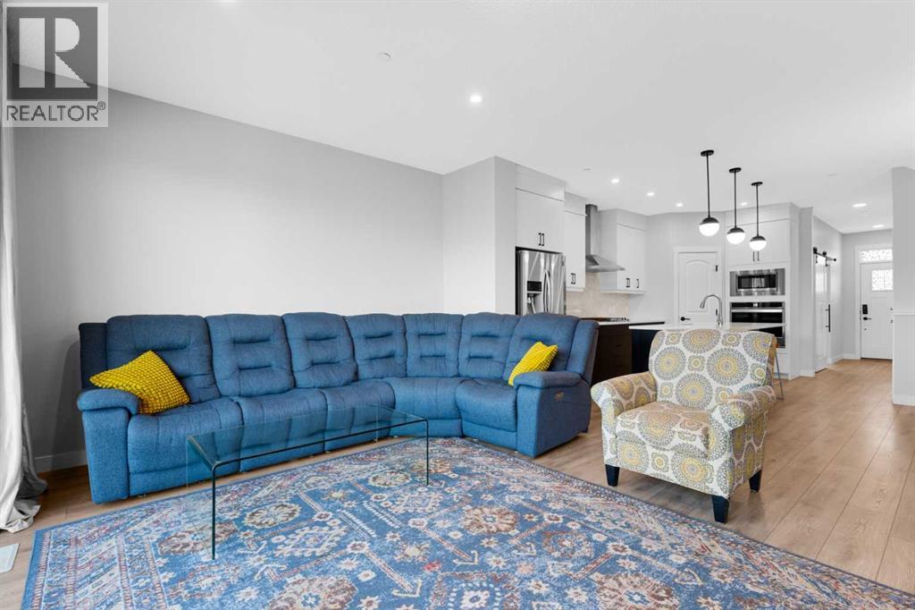 This home is perfect for a large family or for those seeking additional rental income. Located in the desirable community of Livingston, this two-storey home offers over 2,600 square feet of developed space, including a legal basement suite and an oversized double garage. Situated on a street with wider and larger lots than some in the area, this home is a must see. Upon entry, you're greeted by a spacious den or office, providing the flexibility for a quiet workspace or a guest room. The open-concept main floor is bathed in natural light, featuring oversized sliding doors that lead to the back deck. The generous living room flows seamlessly into the gourmet kitchen, which boasts ceiling-height white cabinetry, stainless steel appliances, and a large island topped with quartz countertops.Upstairs, a bonus room provides a dedicated space for kids or for relaxing at the end of the day. This level also includes two spacious bedrooms, a four-piece bathroom, and a convenient laundry room. The private primary suite features a four-piece ensuite and a walk-in closet.The legal basement suite offers a self-contained living space with a separate entrance. The bright suite includes a modern white kitchen with stainless steel appliances, a four-piece bathroom, and a bedroom. A bonus feature of the suite is its own furnace, allowing for ultimate climate control. Another bonus, a fire suppression system throughout the home, which will help with insurance costs!The backyard is designed for low-maintenance living and features a very large deck. The oversized double garage (22'x22') has an oversized door, providing ample space for large vehicles. As part of your HOA, you'll get access to the Livingston Hub, a community year round facility which includes a gymnasium, multi-use rooms, splash park, skating rinks, and much more. This home has been meticulously cared for and shows impeccably—book your showing today! (id:63190)