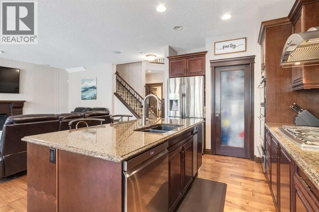 AIR CONDITIONING | Offering over 2300sqft above grade, this Jayman Masterbuilt "Windhaven" former showhome offers an open and unique floor plan. Enter into an open foyer that leads into a massive vaulted 18 foot ceiling with large windows providing an elegant and warm welcome into this beautiful home. The main floor is finished with hand scraped maple hardwood floors that flow into the kitchen and Livingroom. Offering granite counter tops and Cappuccino stained maple cabinets, this chef inspired kitchen offers everything you need for entertaining and preparing meals for friends and family. All stainless steel appliance package, built in oven and microwave, build in counter top gas range and even a wine fridge and garbage compactor! upstairs offers 3 spacious rooms including massive primary bedroom with walk-in closet and 5-piece ensuite bathroom. Upper level also has an open railing to below and an office area with built in desk and access to a second level balcony. Basement is unfinished and open for your development plans with an unobstructed layout and 9 foot ceilings. At the rear of the home you will find a deck with stairs leading to the backyard complete with shed and dog run. The 24' x 22' garage has high ceilings and a garage heater, providing additional year round heated storage. Originally built with approximately $90,000 in upgrades, you wont want to miss this one! (id:63190)