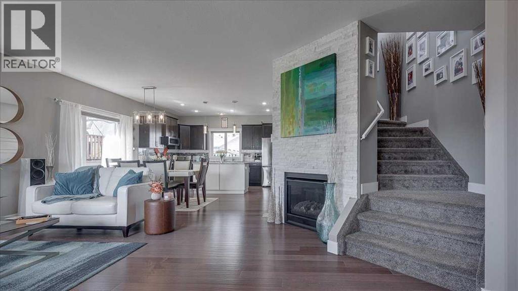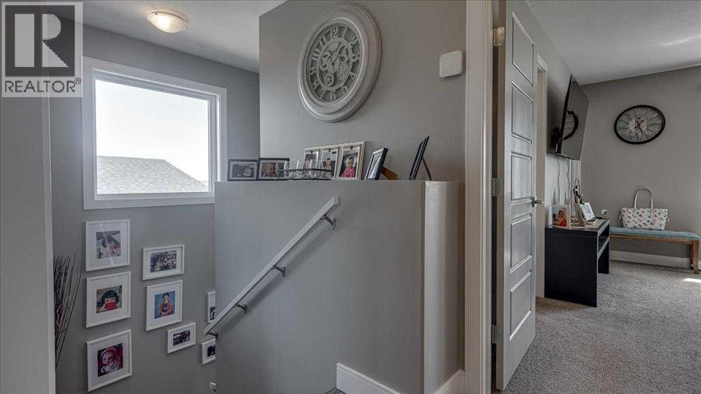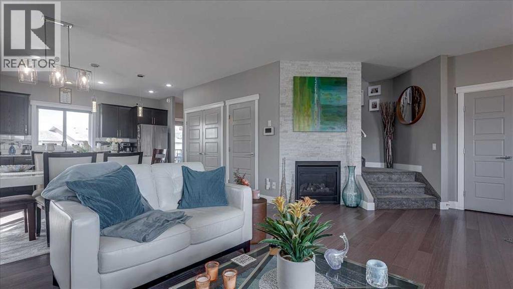 Stylish and well-appointed 2-storey home in desirable Springbrook offering modern finishes, thoughtful upgrades, and excellent functionality throughout. From the moment you arrive, the striking exterior stands out with stone accents, a covered front veranda, and a bold garage door design that adds character and curb appeal.Step inside to a bright, open-concept main floor featuring 9-foot ceilings, rich flooring, and large windows that fill the space with natural light. The inviting living room is anchored by a stonework gas fireplace, creating a warm focal point that flows seamlessly into the dining area and kitchen. The kitchen is both stylish and practical, showcasing oak cabinetry, stainless steel appliances (2024), a large centre island, and a rare double pantry for exceptional storage.Upstairs offers 3 comfortable bedrooms, including a spacious primary retreat complete with a large walk-in closet and a private ensuite. With 2.5 bathrooms—all featuring vanities—plus additional linen closets and extra storage throughout, the layout is designed for everyday convenience.Additional highlights include rough-in for central vacuum on the main and upper floors, upgraded door frames and baseboards, and a TELUS security system with cameras, alarm, and door/window sensors. The home has also had duct and vent cleaning completed in summer 2024.The double attached insulated garage is a standout feature with a 12-foot ceiling, 9-foot overhead door, hot and cold water taps, and convenient code access (plus remotes). The basement offers 9-foot ceilings and is roughed-in for in-floor heat, providing excellent future development potential.Enjoy outdoor living with both a covered front porch and back deck, along with back lane access to the yard.Located in the welcoming community of Springbrook, this home benefits from convenient local amenities including parks, walking paths, a pharmacy, and a walk-in medical clinic, all while being just minutes to Red Deer for additio nal shopping, schools, and services. This home benefits from property taxes of approximately $2,675/year, which are notably lower than many comparable homes in Red Deer, contributing to long-term affordability.A well-maintained home with quality upgrades, functional design, and room to grow. (id:63190)