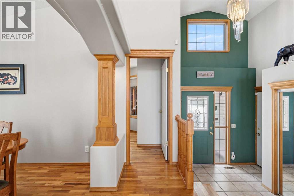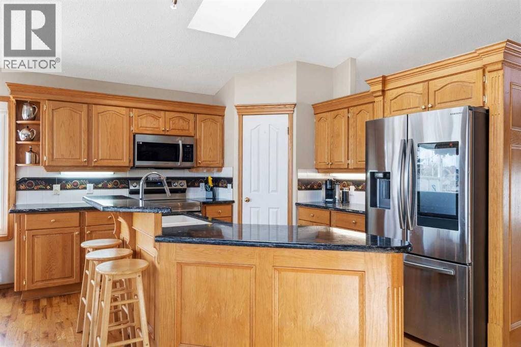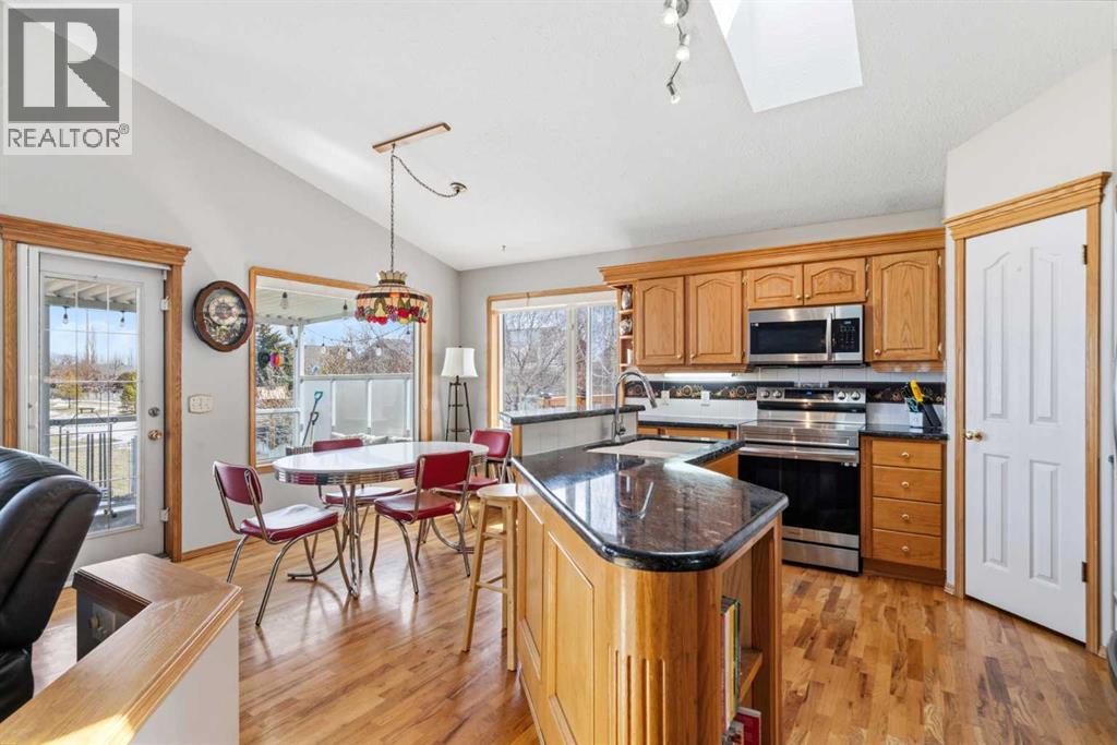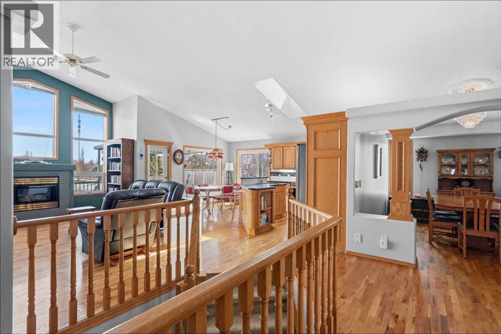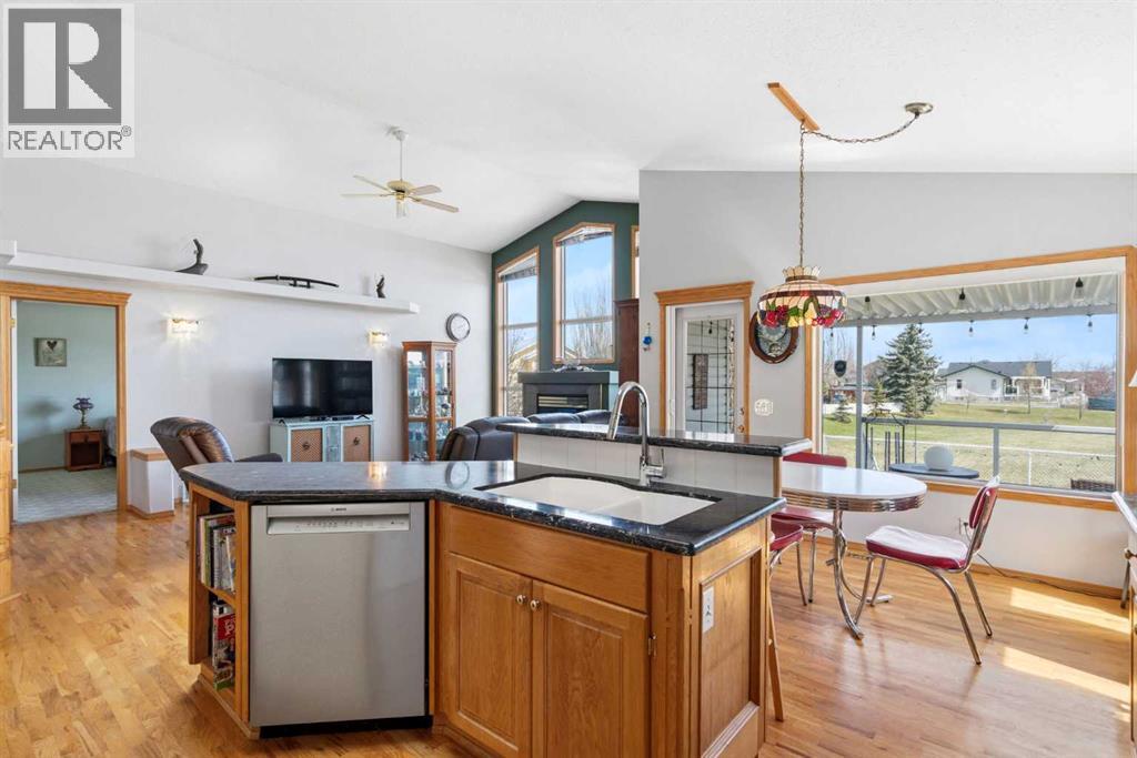 Welcome to this exceptional raised bungalow in the sought after community of Cambridge Glen in Strathmore, an ideal home for the discerning buyer seeking space, quality & a truly special setting. Backing directly onto a massive green space & park, this beautifully maintained & updated residence offers 1,482 sq. ft. above grade & 1,298 sq ft of professional development in the lower level, delivering outstanding functionality for families of all sizes. From the moment you arrive, the home’s curb appeal, featuring stone trim detail & an oversized, double-attached garage with direct interior access & thoughtful built-in storage, sets the tone for what lies within. Inside, the bright, open concept layout greets you, enhanced by soaring vaulted ceilings, new skylights, solid hardwood flooring & expansive windows that flood the home with natural light. The main floor is designed for both everyday comfort & elegant entertaining. A stunning great room features a cozy gas fireplace & a full wall of windows overlooking the park behind, while a formal dining room with artistic pillar detailing adds a touch of sophistication. The spacious kitchen is well appointed with granite countertops, newer stainless steel appliances, including a side-by-side fridge with front display, ample solid oak cabinetry, a central island with a raised eating bar, a corner walk-in pantry & an adjacent spacious nook area surrounded by windows. The primary suite is a true retreat, showcasing vaulted ceilings, a spacious walk-in closet & a luxurious 4 piece ensuite complete with a deep soaker tub, plus a separate shower & water closet area. A second main floor bedroom, also ideal as a home office, along with convenient main floor laundry enhances the home’s versatility. The raised bungalow design & oversized windows make the lower level incredibly bright & inviting, offering incredible additional living space. Here you’ll find three generous bedrooms, a large recreation and games area (perfect for a poo l table or movie nights), a full 3-piece bathroom & abundant additional storage. Step outside to your private backyard oasis. The covered composite deck overlooks a beautifully landscaped, fully fenced yard that seamlessly extends into the expansive park / green space beyond, connecting you to many parks including Dinosaur Hill - an unbeatable setting for families, entertaining, or simply enjoying the outdoors. This home has been meticulously maintained & thoughtfully upgraded. Updates include new shingles (2025), fresh interior paint (2026), newer appliances, furnace serviced & air ducts cleaned(2025), water tank (2023), updated skylights (2023), removal of all Poly-B plumbing, central A/C, central vacuum & underground irrigation. With five bedrooms, 2.5 bathrooms, multiple living & entertaining spaces, plus a premium park location, this home offers an exceptional balance of luxury, practicality & lifestyle. Close to schools, pathways, recreation facilities, shopping, hospital, golf course (id:63190)
