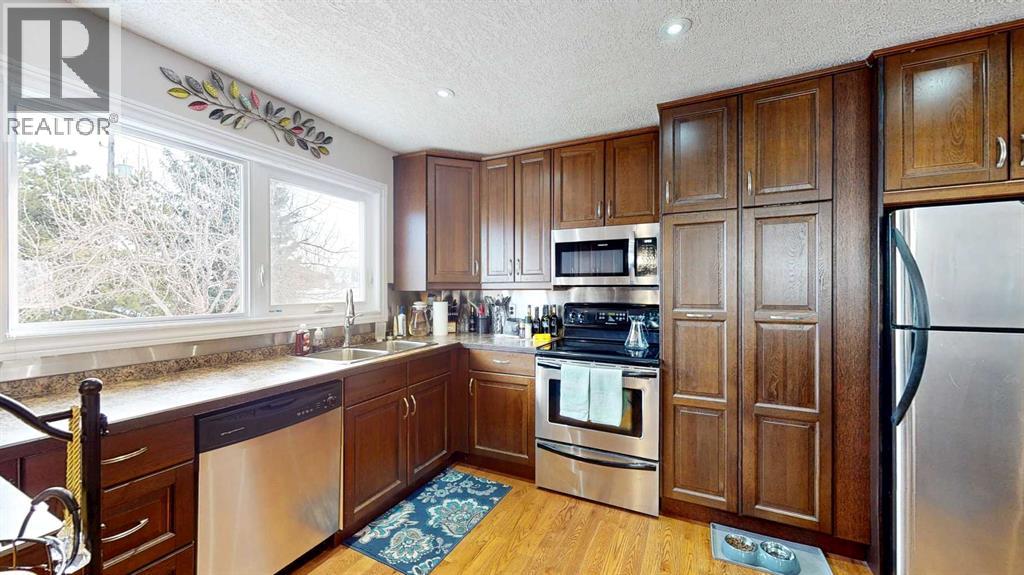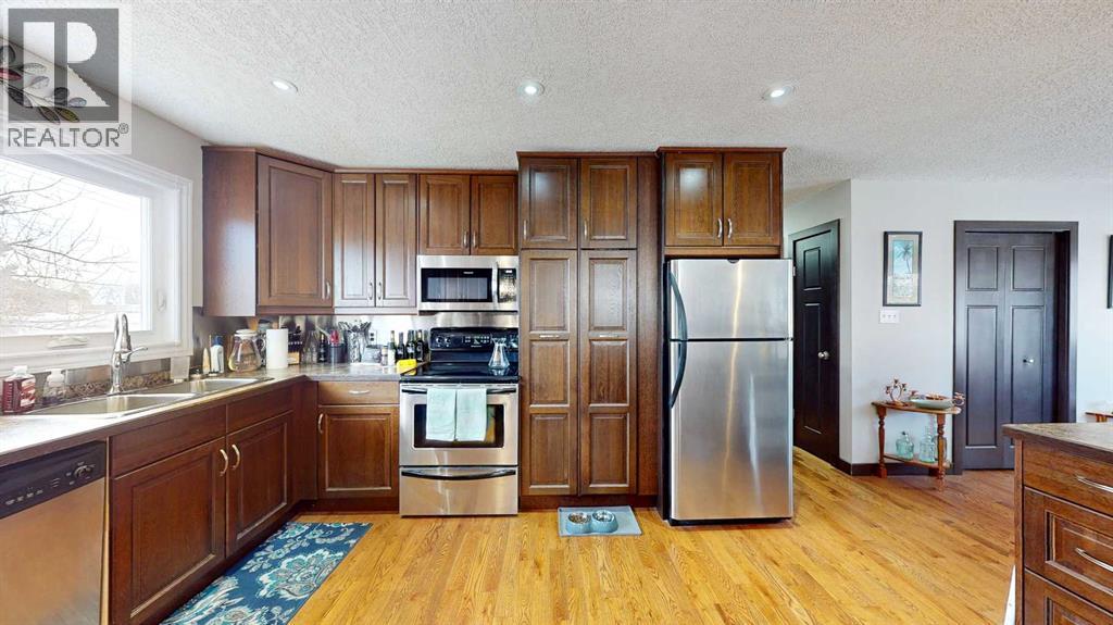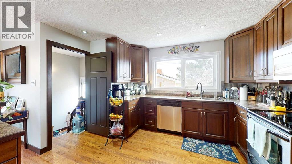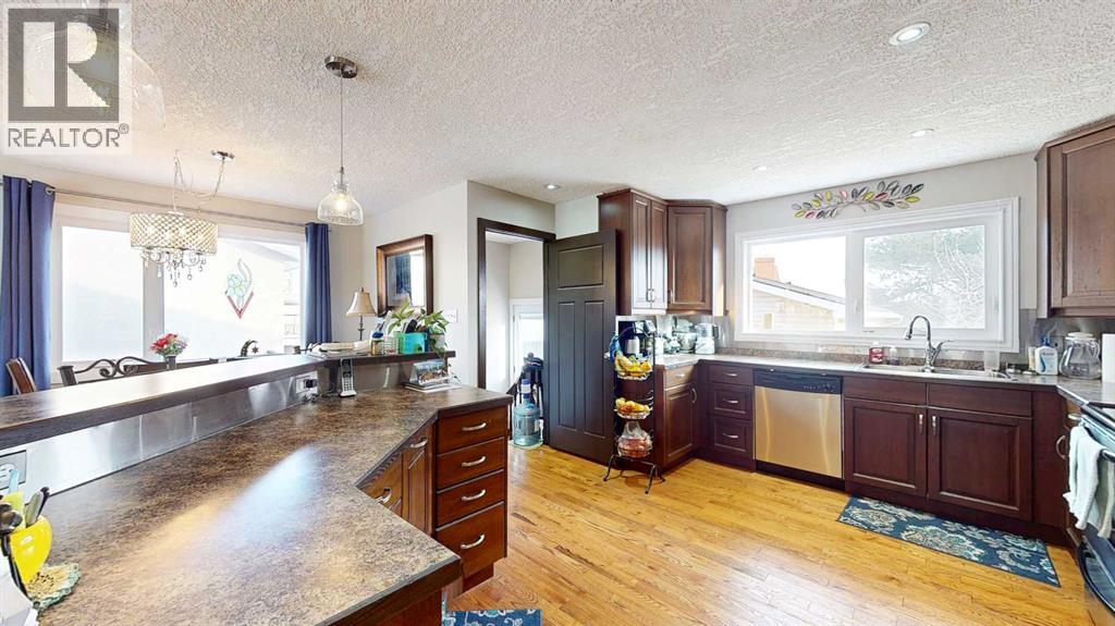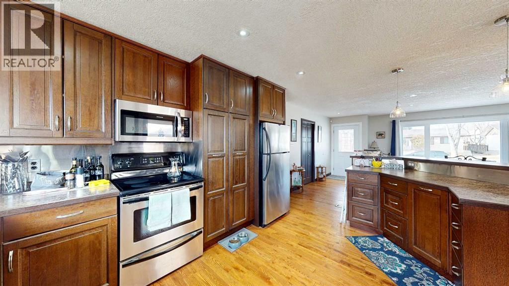 Welcome to this beautifully maintained 4-bedroom, 3-bathroom bungalow nestled in a quiet, peaceful neighbourhood with excellent curb appeal. Step inside to an inviting open-concept layout featuring a spacious living room, kitchen, and dining area—perfect for entertaining family and guests. The main floor showcases stunning oak hardwood flooring throughout the living spaces and bedrooms.The kitchen is designed with functionality in mind, offering ample cupboard space and plenty of room for all your cooking needs. The main level also includes a generous primary bedroom complete with a 3-piece ensuite, two additional well-sized bedrooms, and a 4-piece bathroom.Enjoy your morning coffee or unwind after a long day on the welcoming front deck. Downstairs, you’ll find a large family room with a cozy gas fireplace—ideal for relaxing evenings or hosting gatherings. The lower level also features a spare room, a 3-piece bathroom, a laundry area, and two storage rooms to meet all your organizational needs.The spacious backyard with a mature apple tree provides plenty of room for kids and pets to play, along with space to relax and enjoy the outdoors. A 22’ x 26’ garage offers excellent parking and additional storage. Also underground sprinklers in front and back on the timer. Recent updates include new windows, two new exterior doors, electrical, front deck was replaced with pressure treated wood, a newer garage door opener in and a new microwave—making this home move-in ready and full of value! (id:63190)