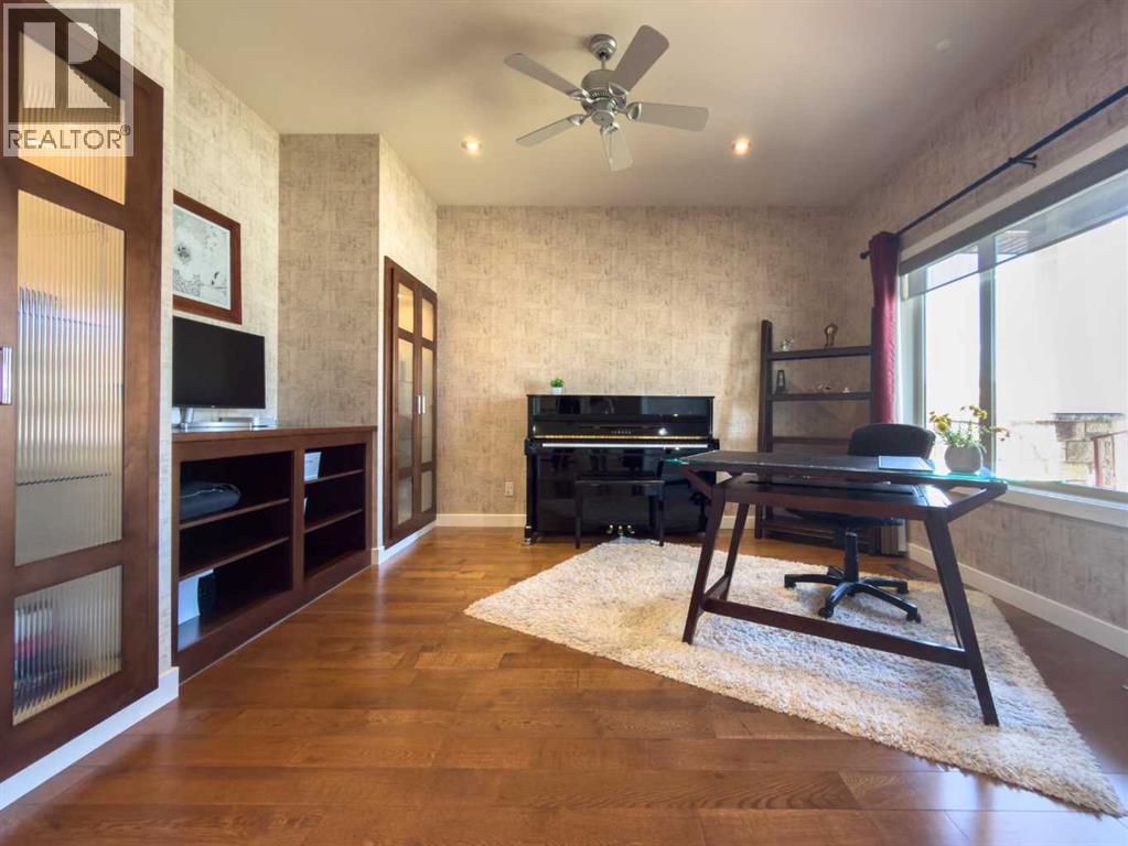 Experience refined luxury in this executive-style former Galko show home — a masterful blend of elegance, comfort, and exceptional design. Boasting over 4,000 sq. ft. of premium living space, including a bright walkout basement, this meticulously crafted residence offers breathtaking views of the lake and waterfall. Inside, you'll find rich hardwood floors, granite countertops, and a chef-inspired kitchen complete with a brand-new gas range, dual dishwashers, and generous prep and entertaining space. The dual-zone HVAC system,along with a furnace and hot water tank both approximately 3 years old, ensures efficient, year-round comfort throughout the home. The spa-inspired primary ensuite invites you to unwind with a marble shower and jacuzzi tub — your personal retreat for relaxation and rejuvenation. The fully finished walkout lower level is designed for entertaining and leisure, featuring a state-of-the-art theatre room, a fully equipped gym, wet bar, and a cozy gas fireplace. Another elegant fireplace graces the main living area, enhancing the home’s warmth and ambiance. Additional upgrades include brand-new carpeting throughout the basement, a new water softener, and numerous thoughtful touches that elevate both function and style. Located in the prestigious Paradise Canyon community, this one-of-a-kind property exemplifies upscale living at its finest — a true sanctuary of sophistication. (id:63190)