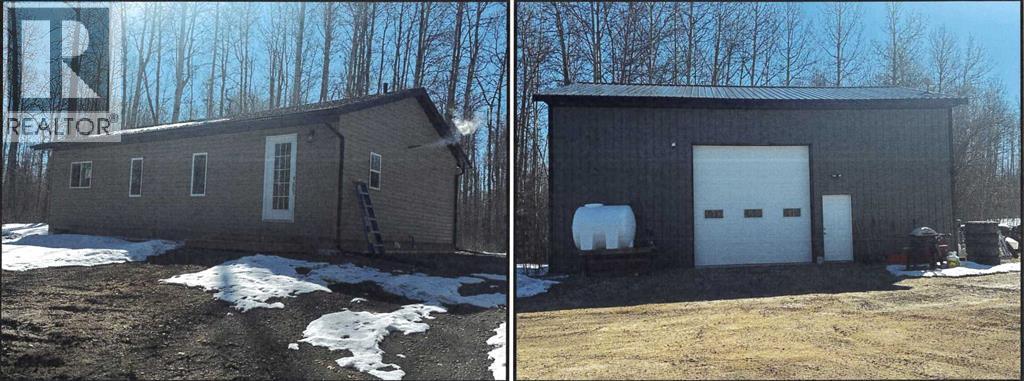 10.21 Acres, backing onto Crown Land & in a peaceful, private setting. Just a half hour from the city. Pavement all the way to the subdivision. This nicely treed acreage is set up with a 988 square foot home and a 30' x 40' shop. The house has 2 bedrooms (the primary bedroom has a walk-through closet and an ensuite), a large, bright kitchen with lots of cabinets and counter space, a spacious living room, and a laundry room / porch. The shop is really nice and is insulated, partially boarded, has in-floor heat, 200 Amp service, a concrete slab floor, 12' overhead door, a ceiling height of 16', and 2 mezzanines. Services include power, septic system, a cistern and propane and in-floor heat. The Seller has Star Link at the shop. There is fresh gravel from the shop to the house. There is an old mobile home on the site, of no value, however there could be potential to put another one on the site as it did have power, access to the cistern and a sewer system at one time. There is space and opportunity for a new owner to further develop this property to accommodate animals, build a garden spot or perhaps build your dream home and use the existing home as a guest cottage or mother inlaw suite. (id:63190)
