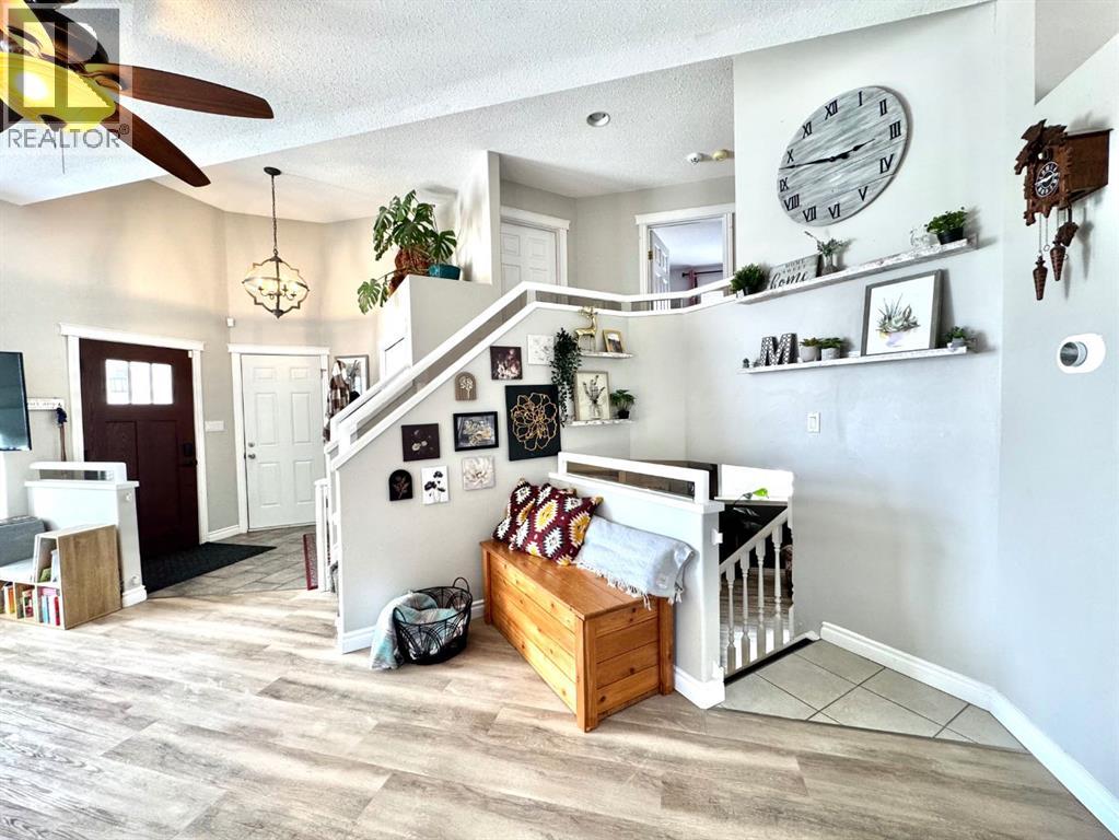 Welcome to this spacious, fully developed 4-level split home nestled in the highly sought-after loops of Country Club Estates. Just steps from parks and within walking distance to Aspen Grove School and Montrose Jr. High School. The bright kitchen features an abundance of cabinetry and opens into a sunny dining area with direct access to the backyard deck and gazebo covered hot tub…perfect for morning coffee and summer entertaining.The living room is warm and inviting, highlighted by a cozy gas fireplace and vaulted ceilings that create an airy, open feel. Upstairs you’ll find three bedrooms, including a primary retreat complete with a jetted tub and separate shower. The lower levels provide even more flexibility with 2 additional bedrooms, a rec room, full bathroom with a walk in shower, finished laundry room, and plenty of storage space. Step outside to a fully fenced backyard backing onto a peaceful grass easement.With solid bones, a functional layout, and an unbeatable location in one of the city’s most desirable neighbourhoods, this home is full of potential and ready for its next chapter! (id:63190)