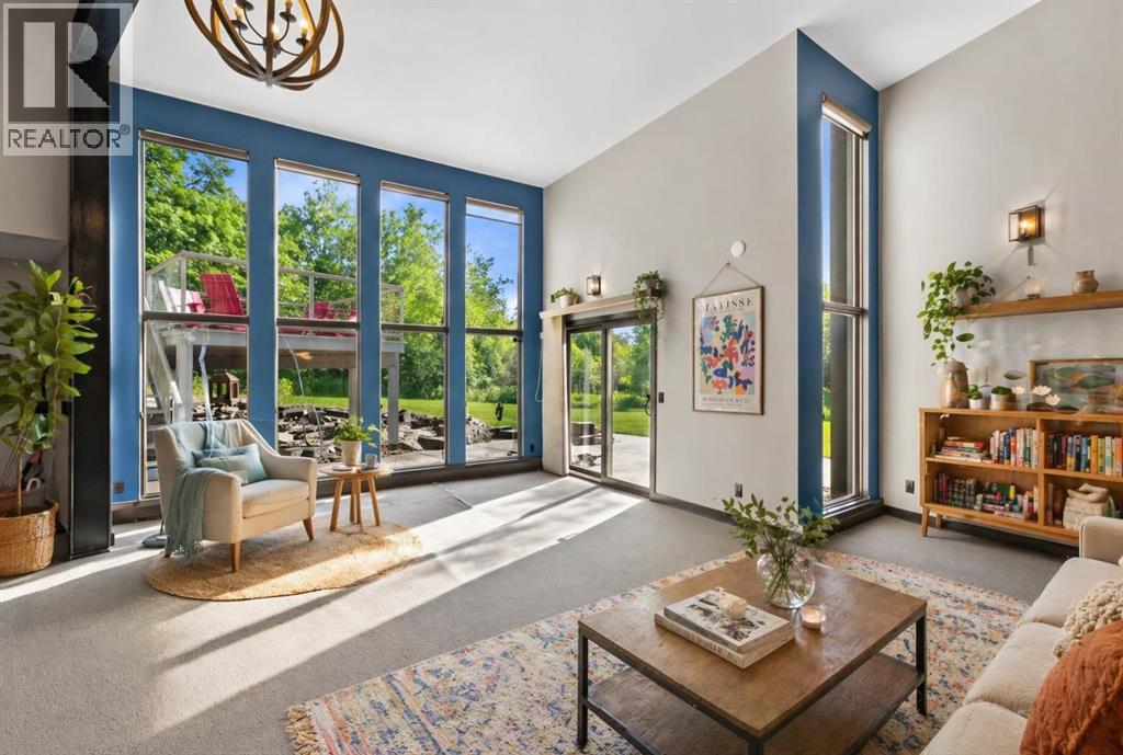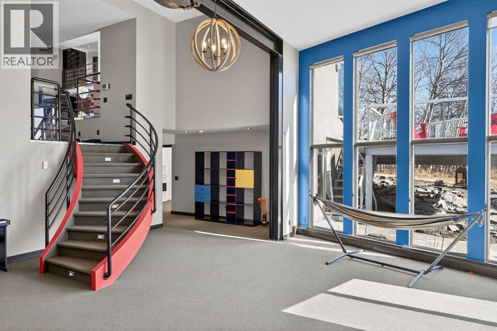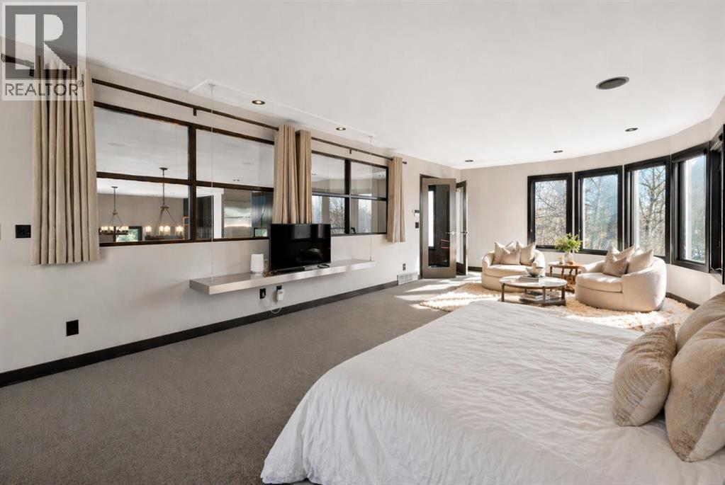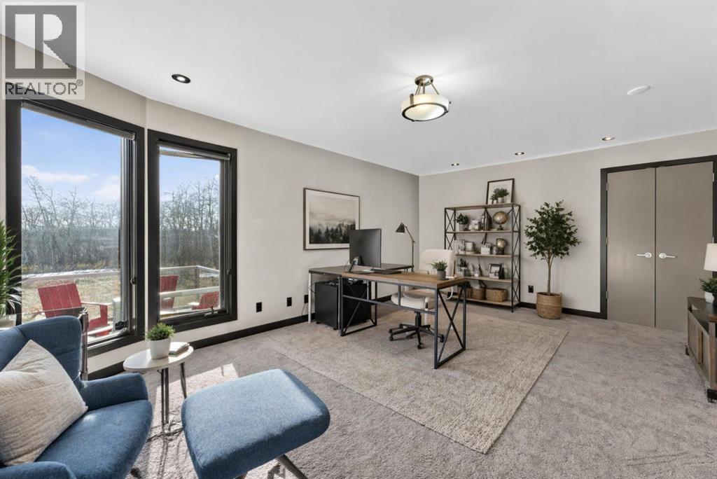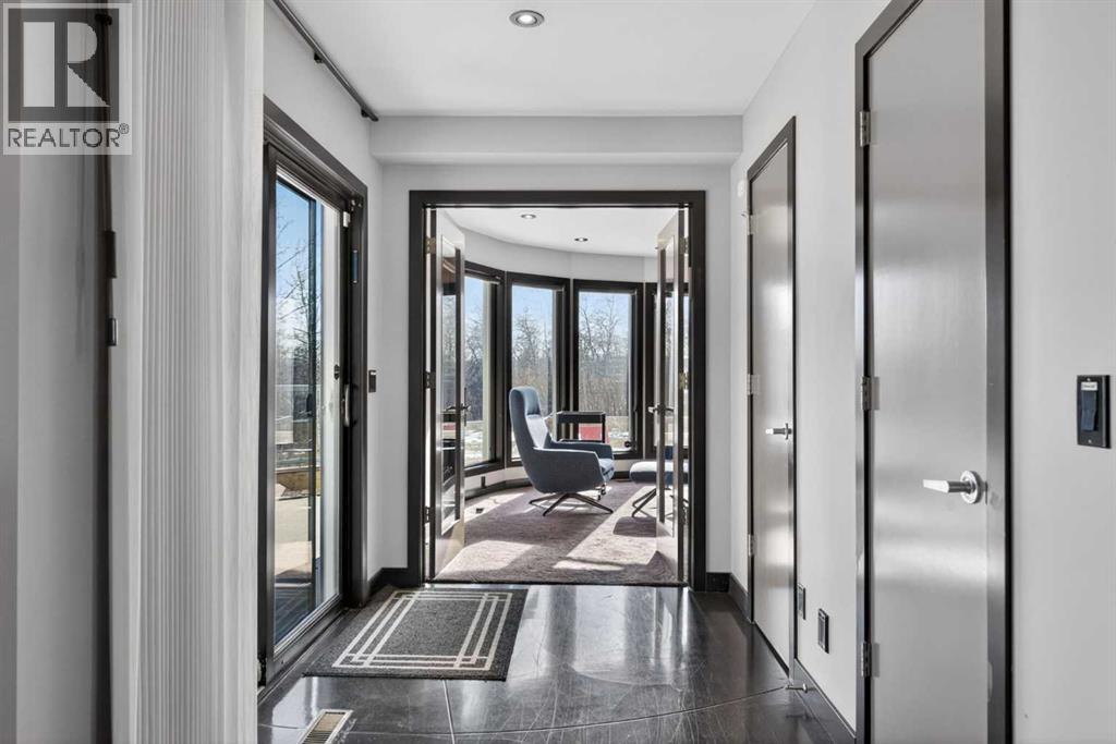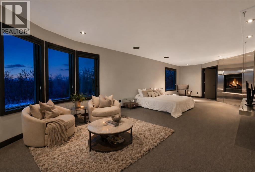 OPEN HOUSE THIS SUNDAY APRIL 26TH FROM 12:00PM TO 2:00PM! A legacy estate on 2 private acres in the exclusive Westbluff enclave — 8,000+ sq ft of architect-driven living just 20 minutes from downtown Calgary. Families are drawn here for the schools. Springbank High sits minutes away, with West Calgary's most sought-after options close at hand — Webber Academy, Rundle College, Calgary Academy — plus international French education. Private school pickup can arrive right at the door. Premium shopping and dining at Aspen Landing and West Springs are a short drive, and the Rockies are a direct route when it's time to escape. Soaring ceilings and walls of glass frame the grounds like living art. The chef's kitchen is equipped for any occasion — Sub-Zero, Gaggenau and Thermador appliances, a walk-in pantry, dramatic island, and exposed steel beams overhead. Open living and dining spaces flow to the patio for effortless indoor-outdoor entertaining. Upstairs is a true family retreat. The primary suite offers a sitting area, glass French doors, a double-sided fireplace, heated floors, his-and-hers vanities, and a 5-piece ensuite with steam shower and air-jet tub, alongside a walk-in built for serious wardrobes. Two additional bedrooms each feature their own 4-piece ensuite and walk-in, plus a library nook for study. The walkout lower level expands the lifestyle — heated floors throughout, a wet bar with tiered glass counter, another bedroom, a home gym that can function as a bedroom if needed, and large windows opening directly to the yard. Ample room to host, create, or carve out gym and studio zones. A main-floor executive office with closet and garden-facing windows offers flexibility — a second home office, guest space, or main-floor bedroom. The tiered seating theatre room is the ideal space to watch movies as a family. A separate multi-level industrial-chic office with exposed I-beams supports remote work or client meetings and the loft space is the perfect creative spa ce for a home podcast or art studio. Outside the expansive decks, manicured grounds, and BBQ gas line create the ideal spot to entertain friends and family while enjoying the private greenery that surrounds you. Minutes to downtown. A direct route to the Rockies. Surrounded by top-tier schools and West Calgary's finest amenities. 43 Westbluff Place is a future-ready Springbank estate for families who think long-term and live intentionally. (id:63190)