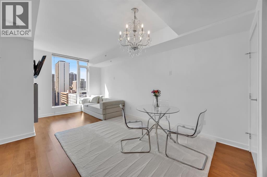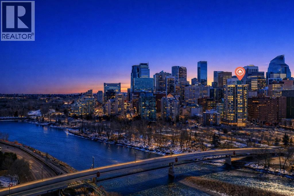 Welcome to Solaire, one of downtown Calgary’s most sought after high rise residences, ideally located in the vibrant Eau Claire and perfectly suited for young professionals, first time buyers, or investors seeking a refined urban lifestyle with long term upside. This freshly painted south facing 1 bedroom, 1 bathroom home on the 17th floor offers a bright, modern living space with sweeping city views through expansive floor to ceiling windows, creating an elevated downtown experience both day and night. The open concept layout is designed for both functionality and comfort, featuring engineered hardwood flooring and a spacious living area anchored by a contemporary gas fireplace, ideal for unwinding after work or hosting guests. The kitchen is thoughtfully designed with full height espresso cabinetry, granite countertops, under cabinet lighting, a built in pantry, a generous island with breakfast bar, and premium stainless steel appliances, offering both style and practicality for everyday living. The bedroom provides a quiet retreat with upgraded carpeting, French doors, and elegant wall mounted lighting, while the well appointed bathroom includes extended tile work and a granite vanity. Additional features such as in suite laundry, built in closet organizers, central air conditioning, and an in ceiling audio system enhance both comfort and convenience. This unit also includes a titled underground parking stall and an assigned storage locker, adding to its overall value and appeal. Solaire offers full service amenities including professional management, concierge service, and a fully equipped fitness centre, perfectly aligned with a lifestyle focused buyer who values convenience, security, and ease of living. From an investment perspective, this location is exceptionally strong, positioned in Calgary’s core with consistent rental demand driven by nearby offices, transit access, and lifestyle amenities. Just steps to the Bow River pathways, Eau Claire, the LRT stati on, and within walking distance to Kensington’s shops, restaurants, and cafes, this property offers unmatched walkability and connectivity, making it highly attractive to both tenants and future buyers. Whether you are looking to secure your first home, reduce commute times, or add a well located asset to your portfolio, this is a smart opportunity to invest in one of Calgary’s most established and desirable downtown communities. (id:63190)